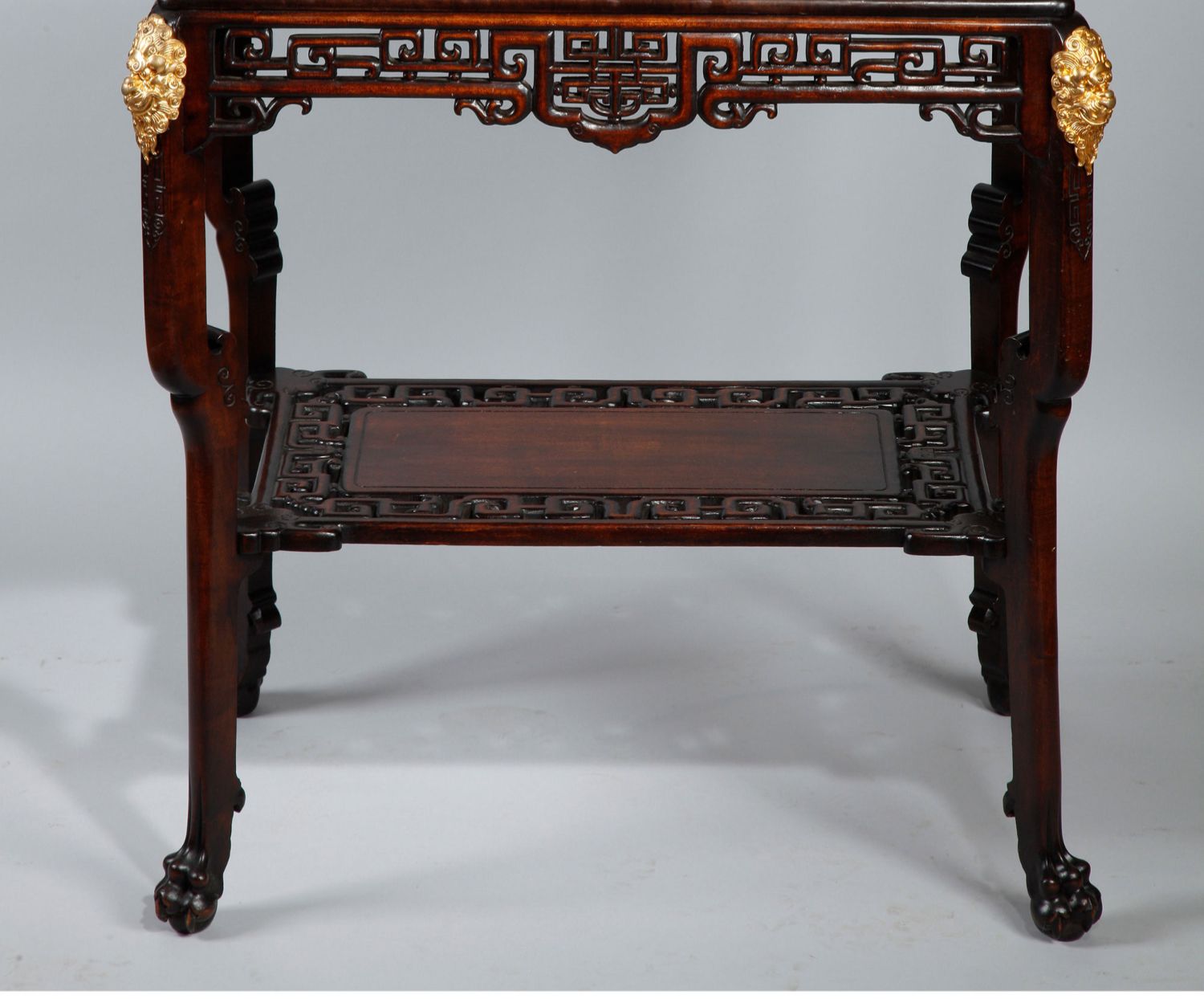 独角鹿西洋古董20世纪初法国出品古典卷叶主题核桃木精雕多层边几