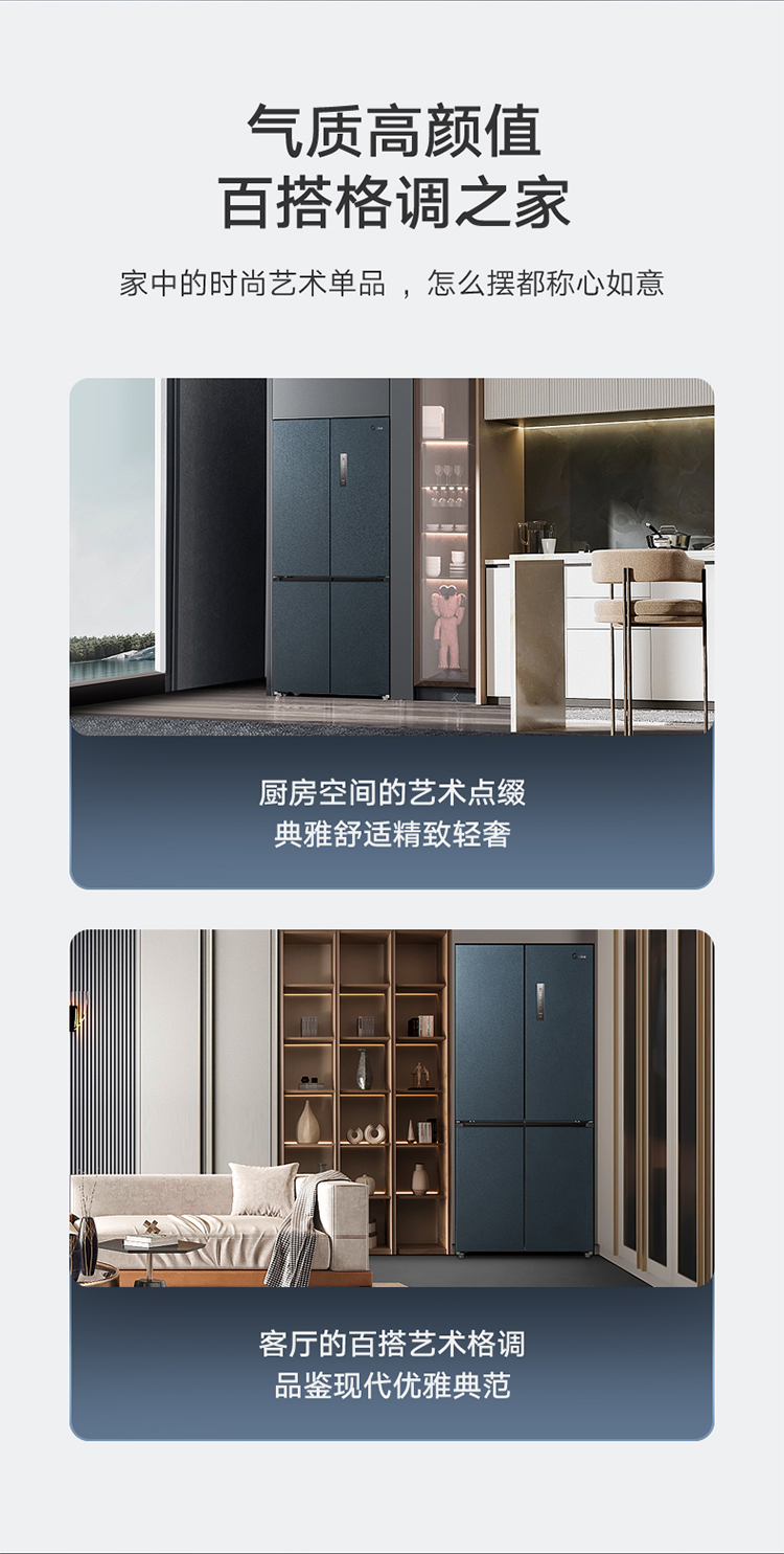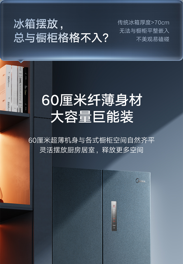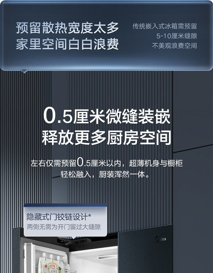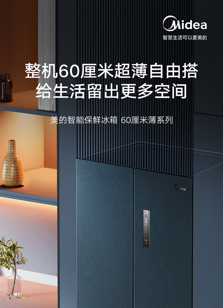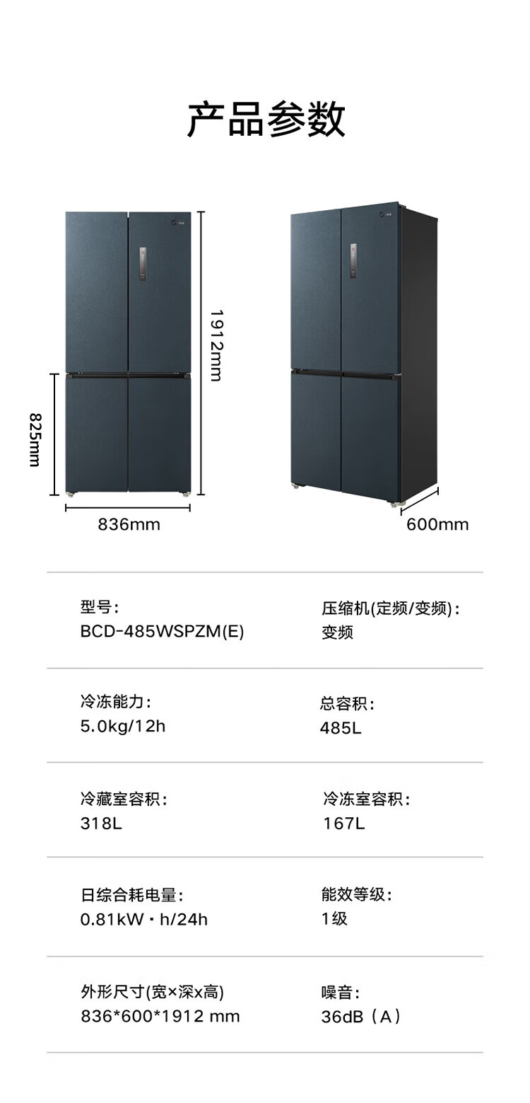 【下单前请与客服联系】美的(Midea)60厘米薄系列485升十字双开门四门超薄嵌入大容量家用智能冰箱一级变频BCD-485WSPZM(E)厨装一体
