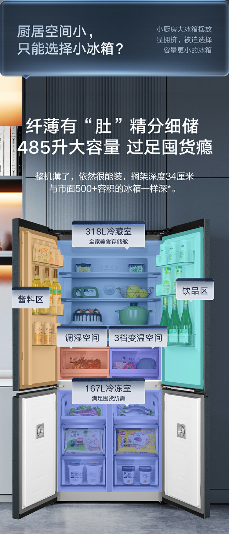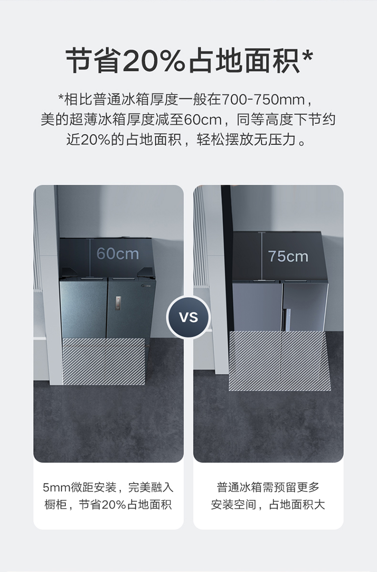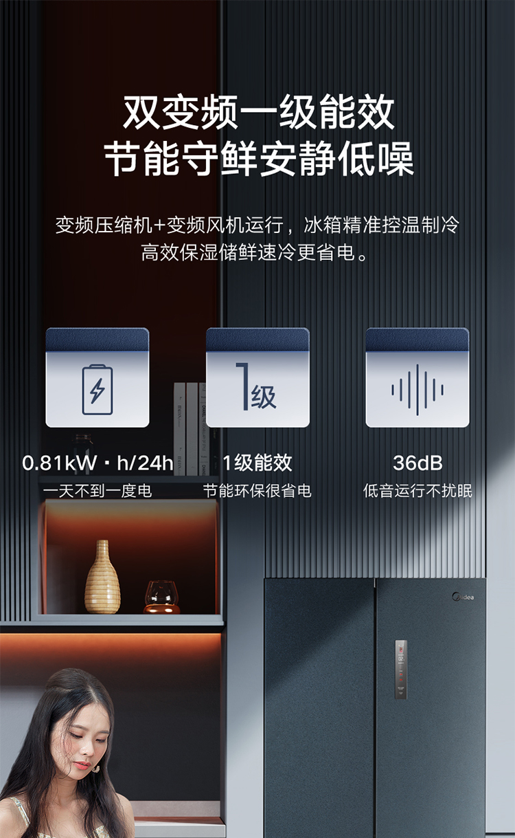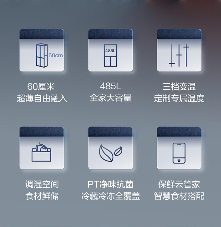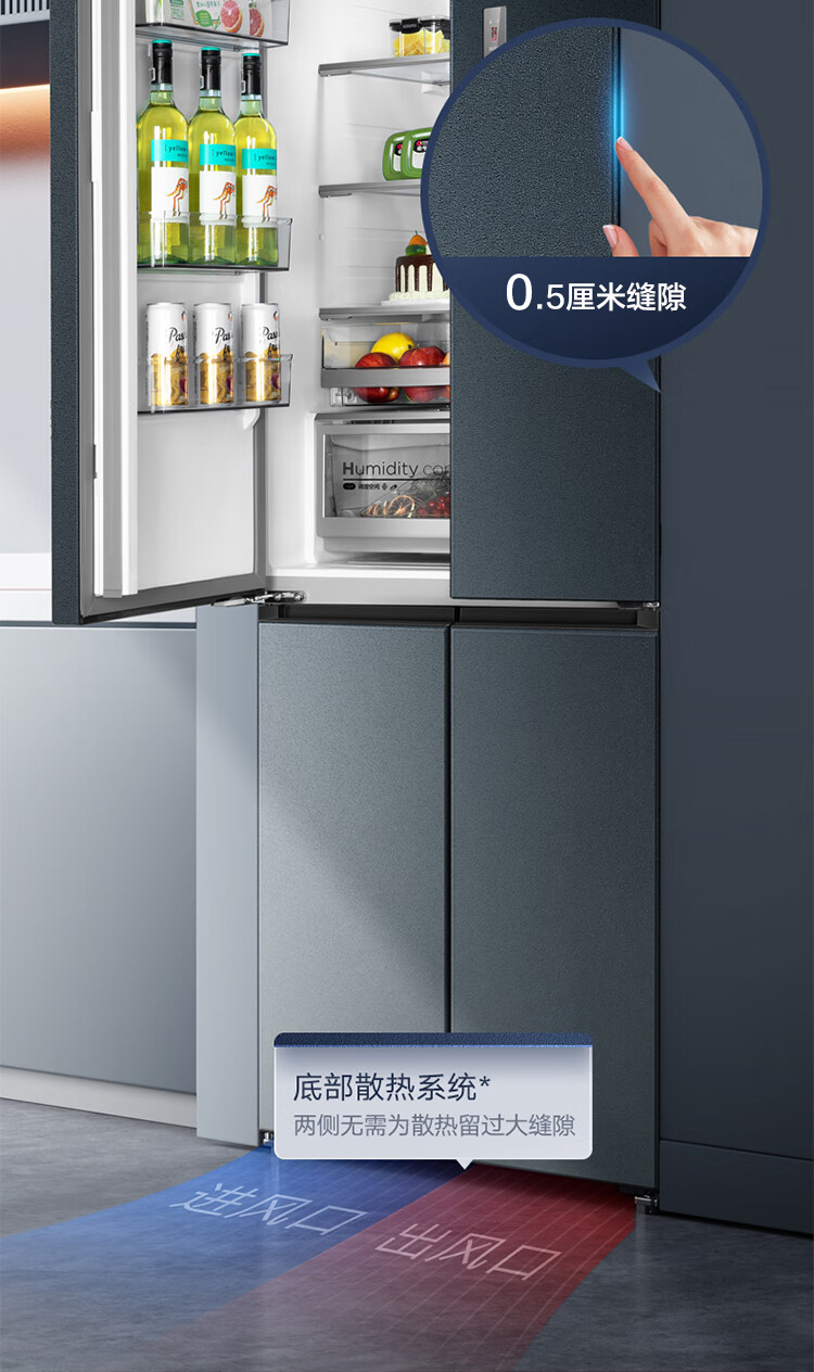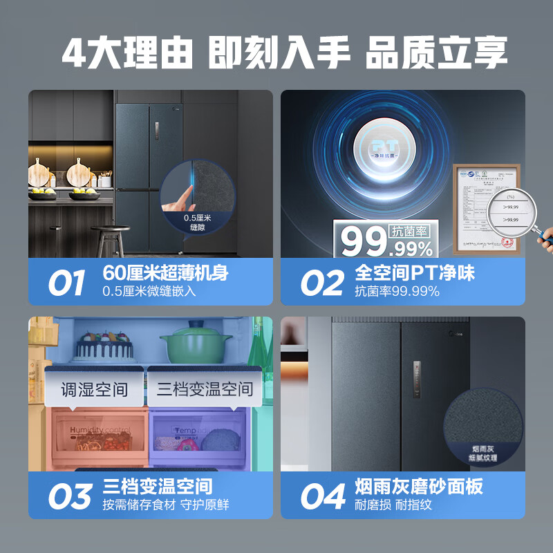 【下单前请与客服联系】美的(Midea)60厘米薄系列485升十字双开门四门超薄嵌入大容量家用智能冰箱一级变频BCD-485WSPZM(E)厨装一体