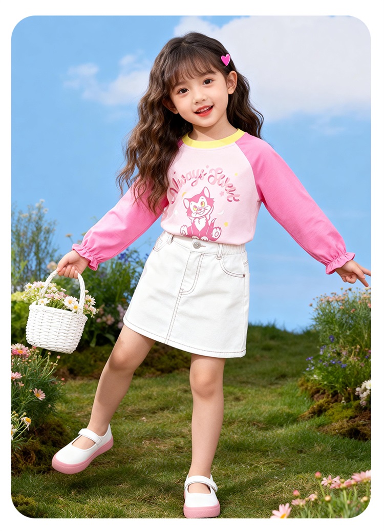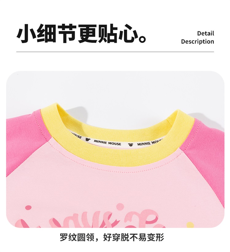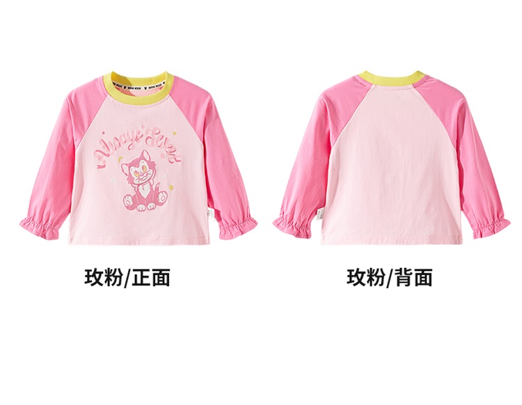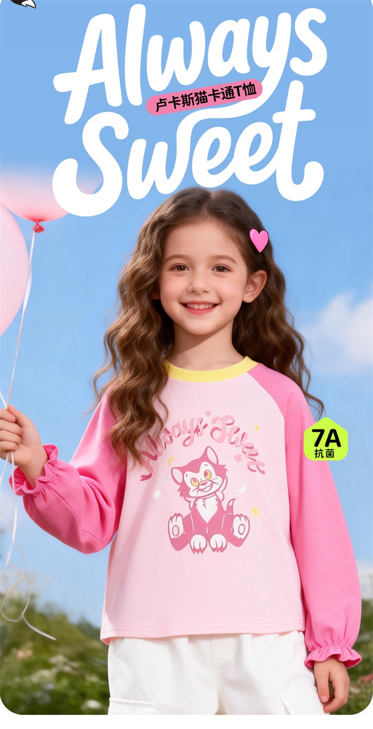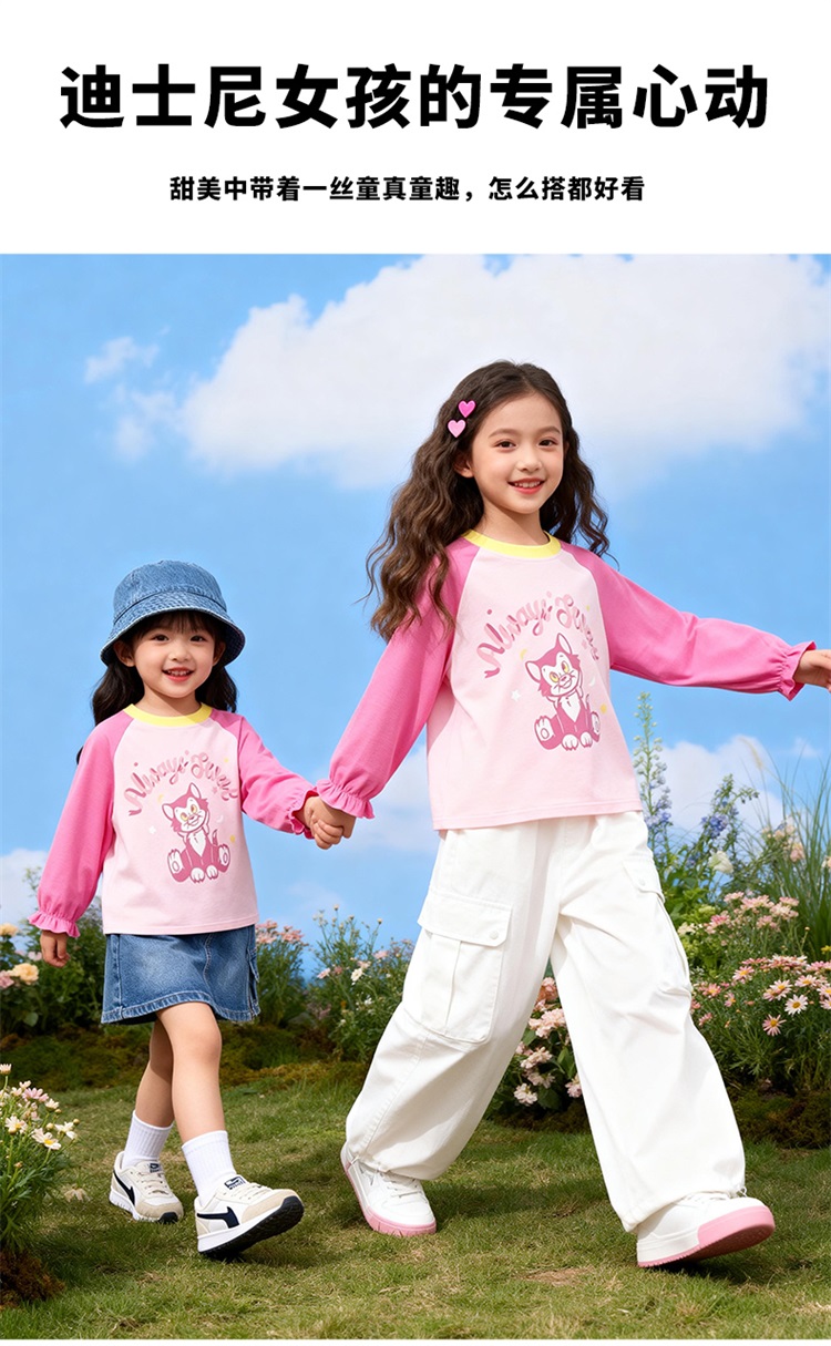 迪士尼(Disney)女童长袖T恤甜美休闲撞色可爱7A级抗菌插肩袖2026春季新款上衣ZD1FS018