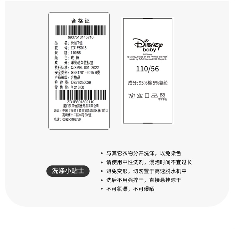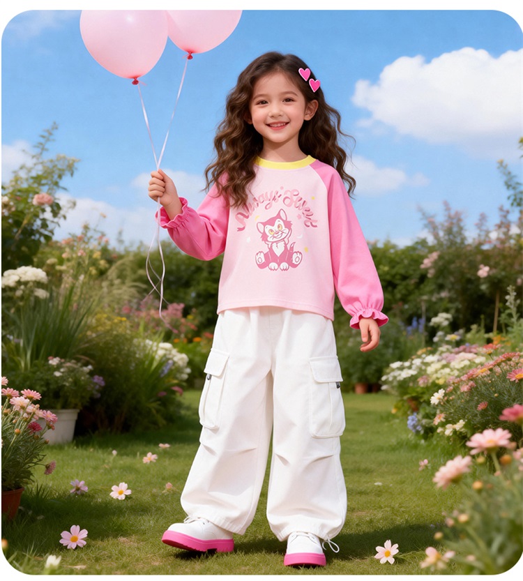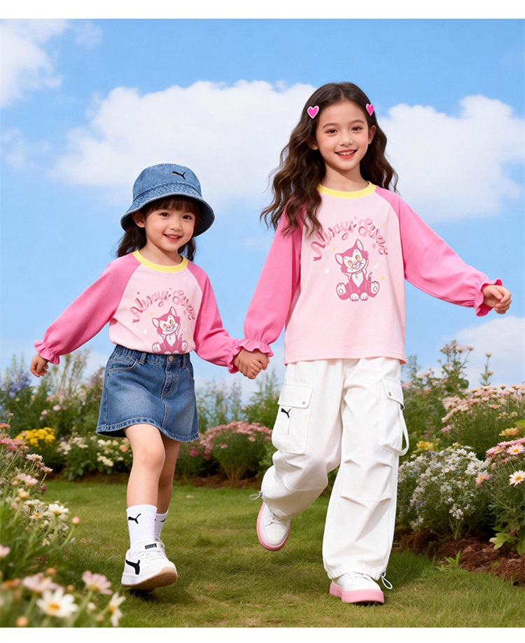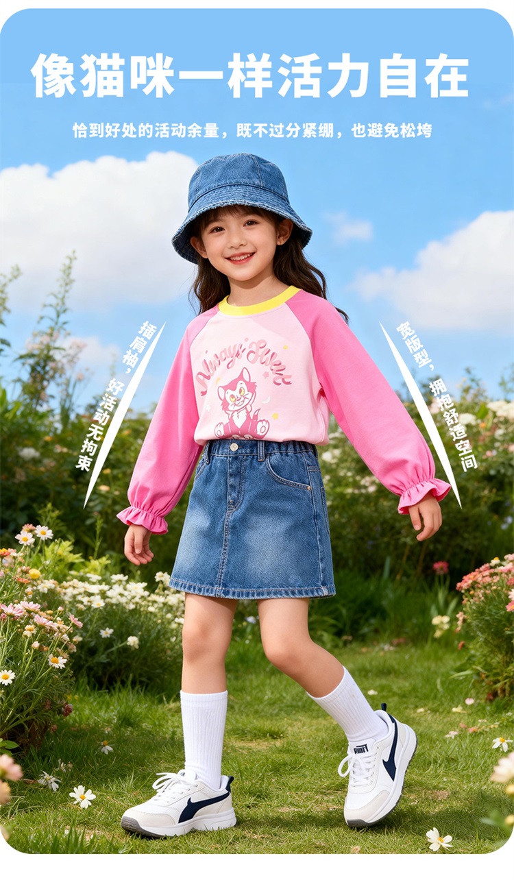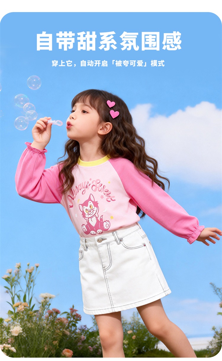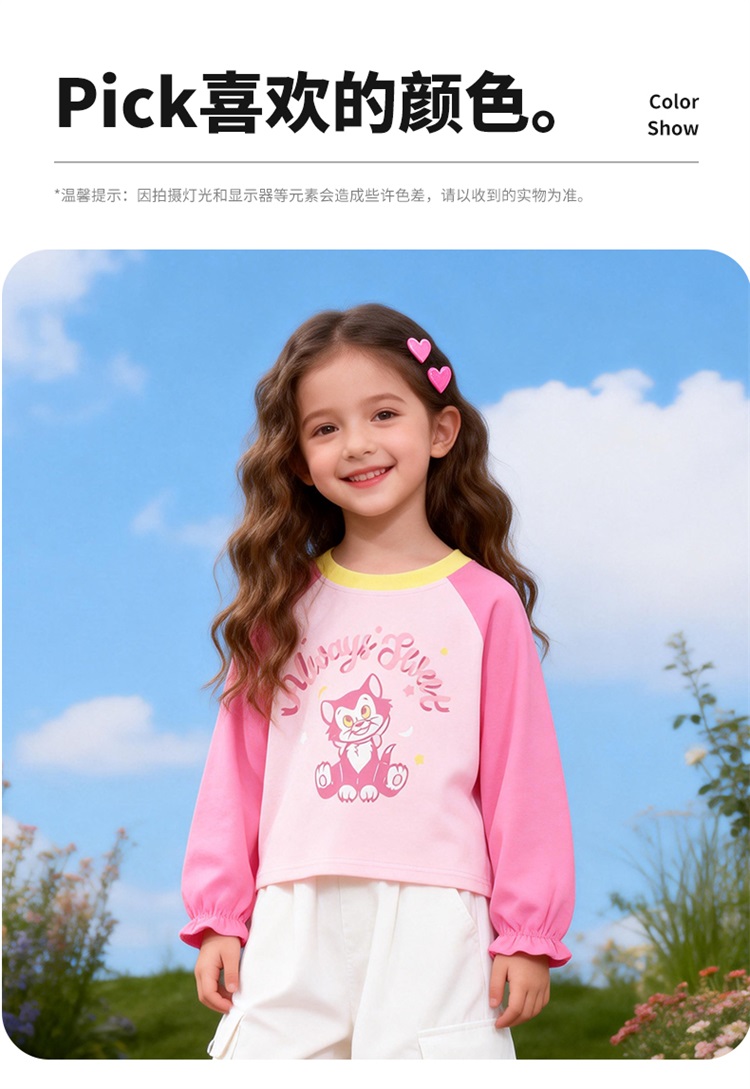 迪士尼(Disney)女童长袖T恤甜美休闲撞色可爱7A级抗菌插肩袖2026春季新款上衣ZD1FS018