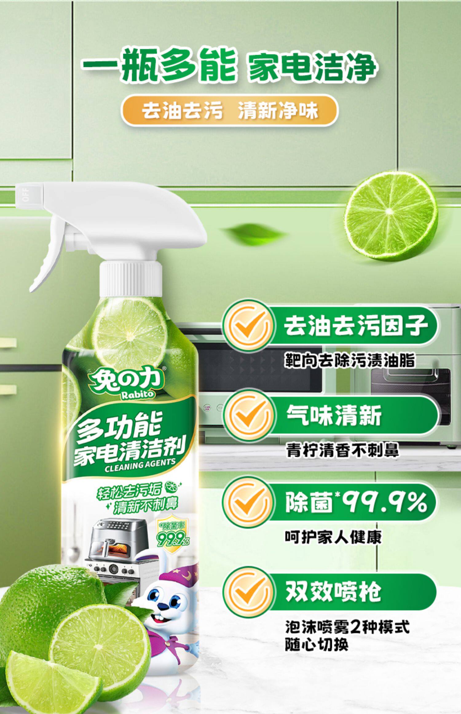 兔力多功能清洁 喷雾冰箱烤箱微波炉锅底家用去污渍除垢家电清洁剂1.45