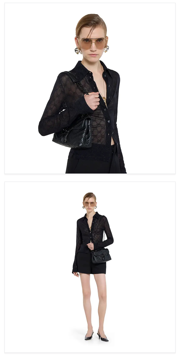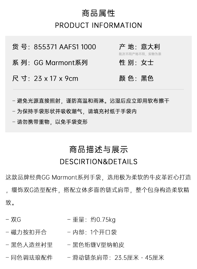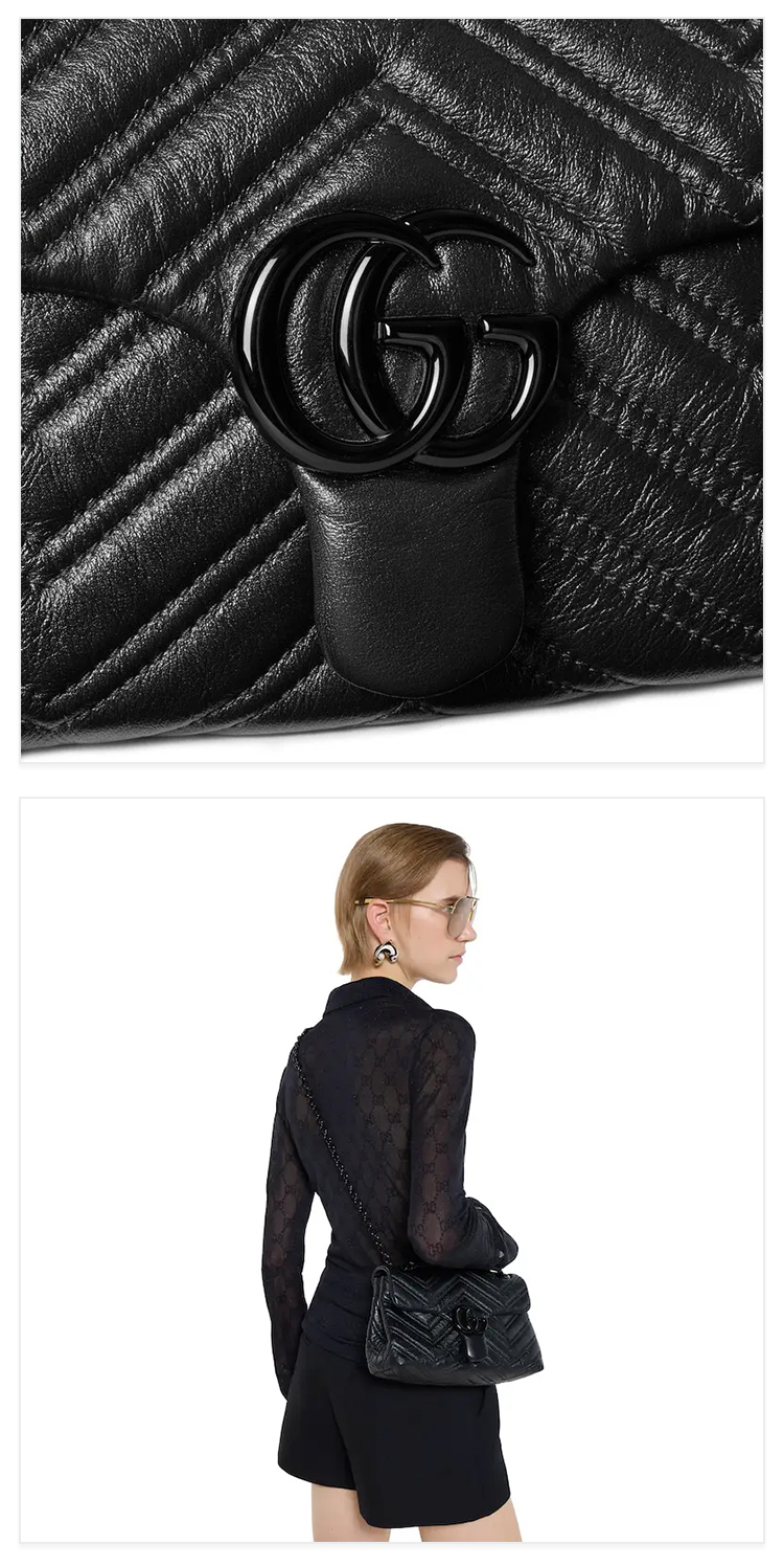 GUCCI 古驰 女士GG Marmont系列小号单肩背包 黑色 855371 AAFS1 1000
