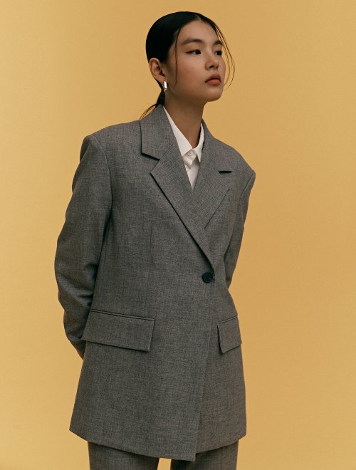 8 seconds 女款灰色羊毛混合单扣单套夹克JPY带授权招加盟代理