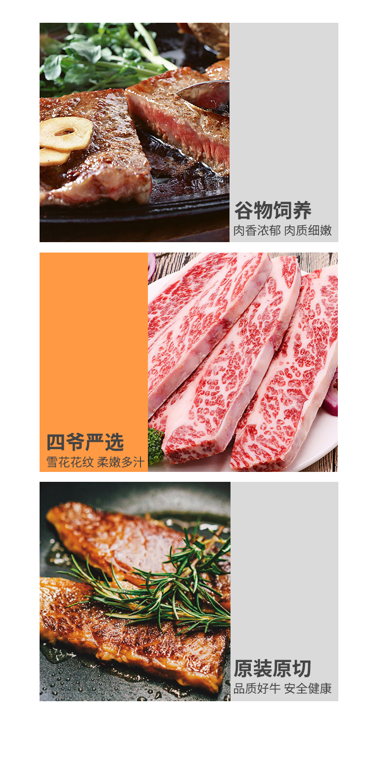 【新年礼盒套餐三: 新春尊享丰年礼盒】 2.5斤装——谷饲安格斯板腱牛排 3片+阿根廷谷饲西冷牛排 2片+澳洲谷饲眼肉牛排 2片+美国牛小排1片 送海盐黑胡椒1瓶+新年贺卡