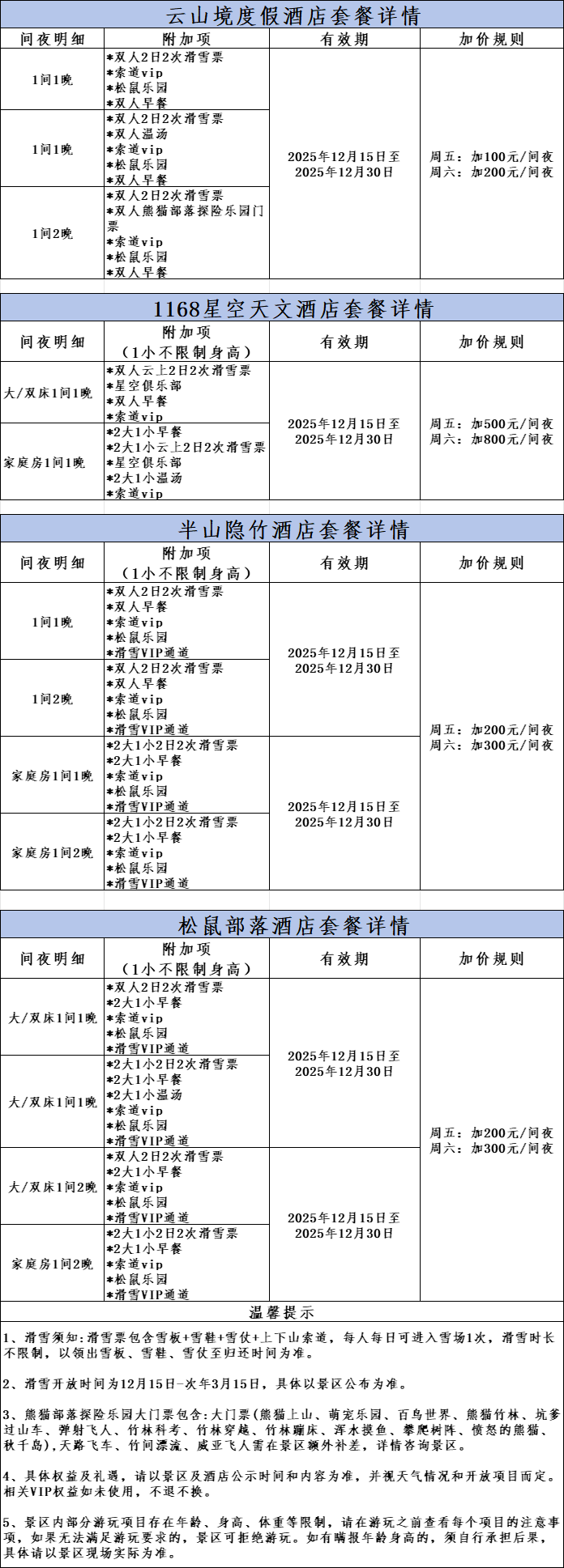 7、本套餐不可拆分使用,若未在入住期间使用完毕,视为自动放弃,不设退改。