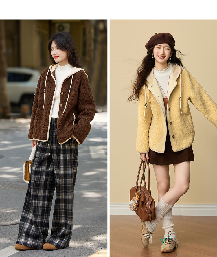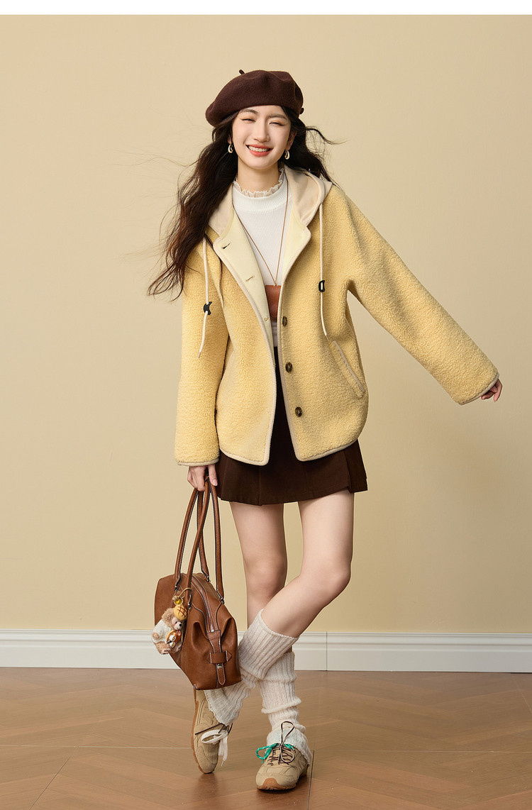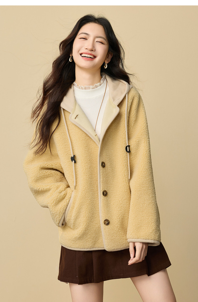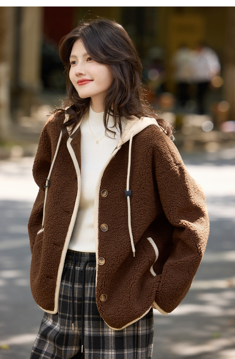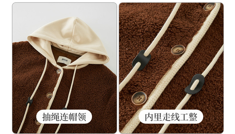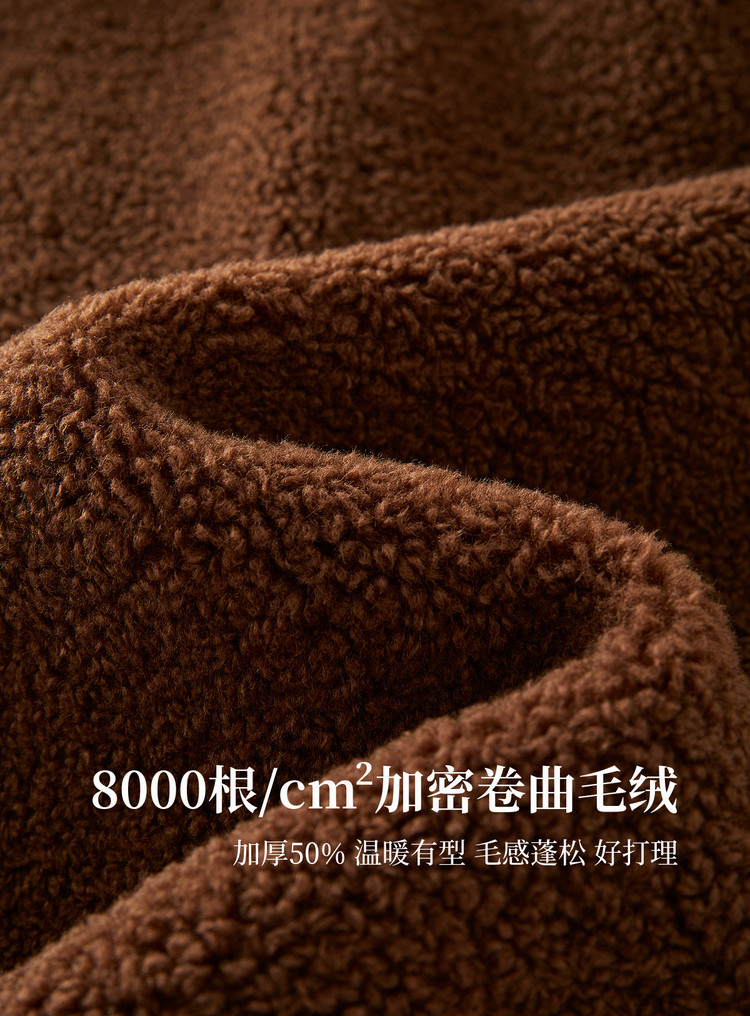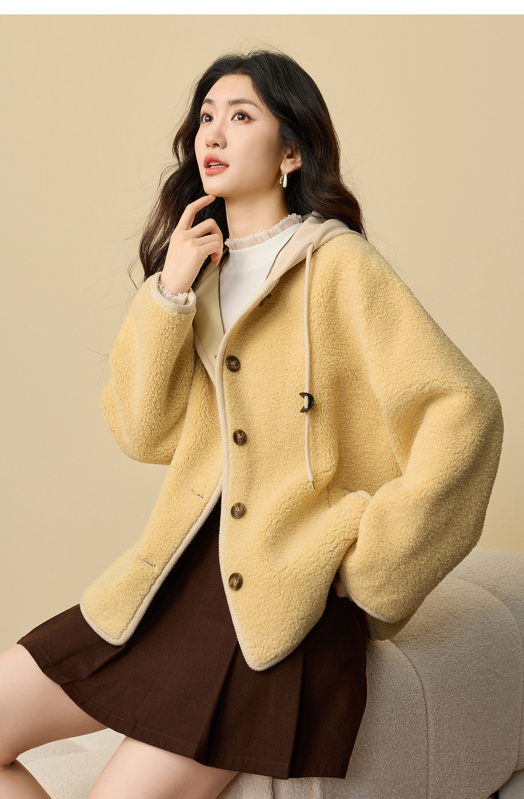 【年货节】熙世界环保仿泰迪毛短外套女秋冬休闲宽松连帽仿皮毛一体毛绒大衣