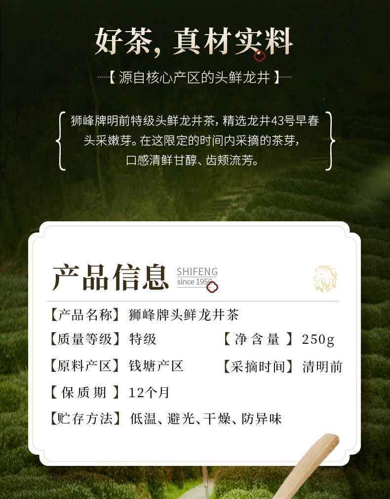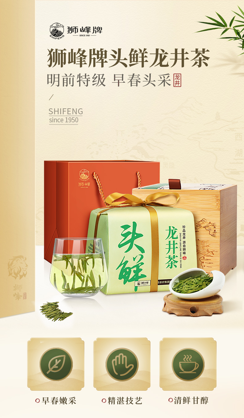 狮峰牌龙井茶江南赋高山头鲜竹盒250g