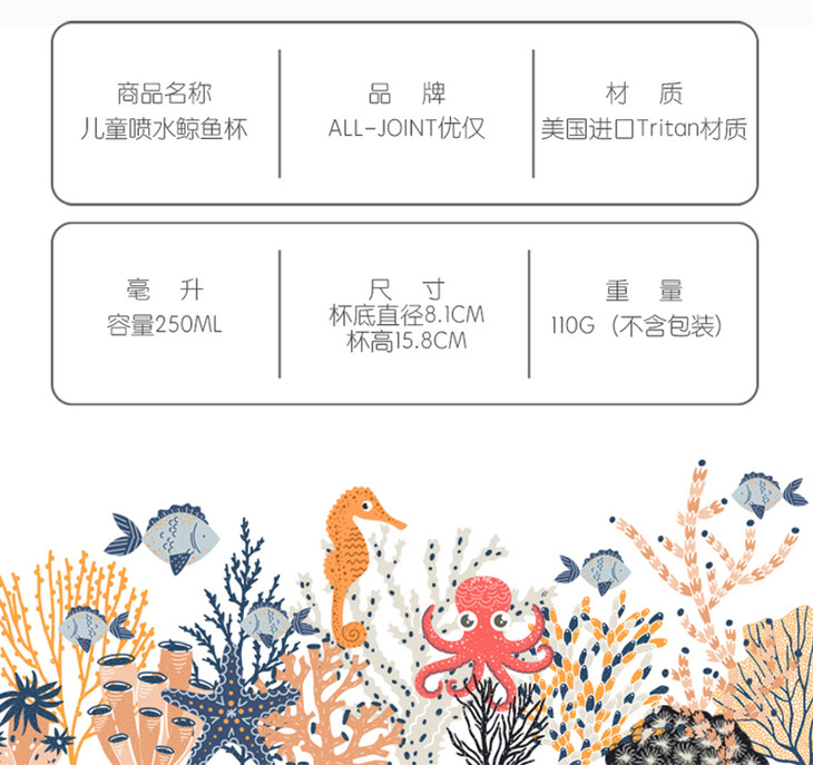 (超值)All-Joint优仅 升级版鲸鱼带吸管网红喷水杯
