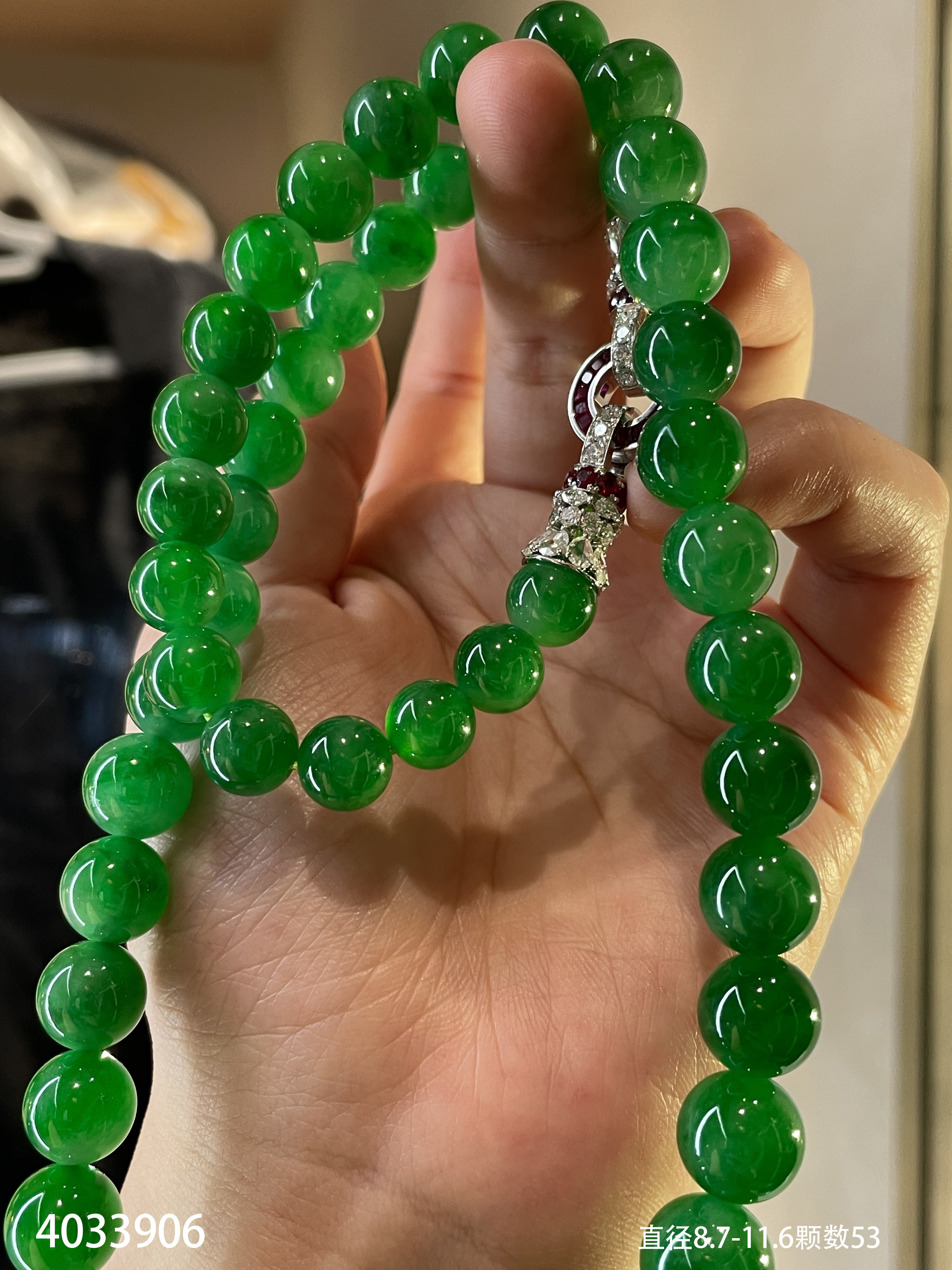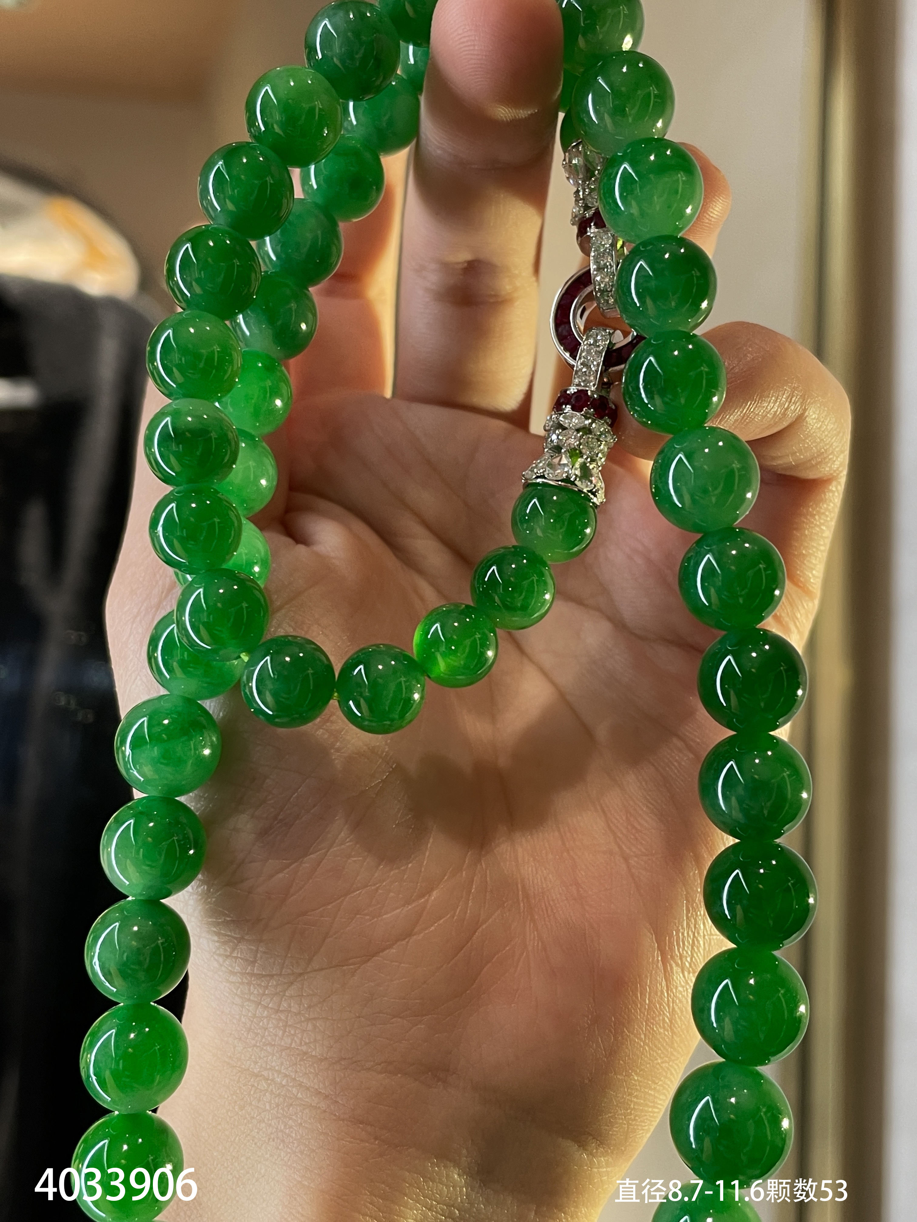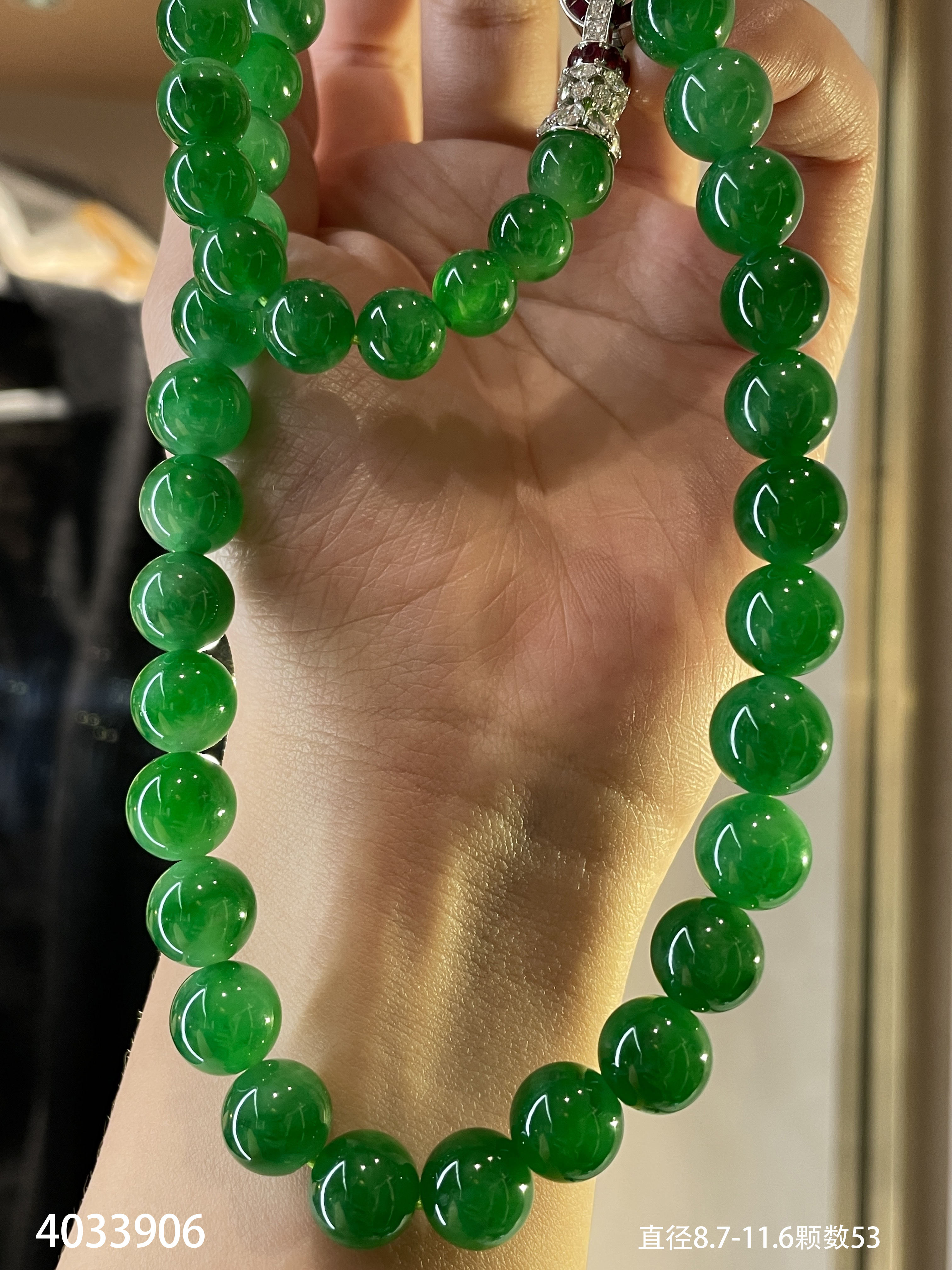 满色艳绿珠链【4033906】具体价格微信咨询