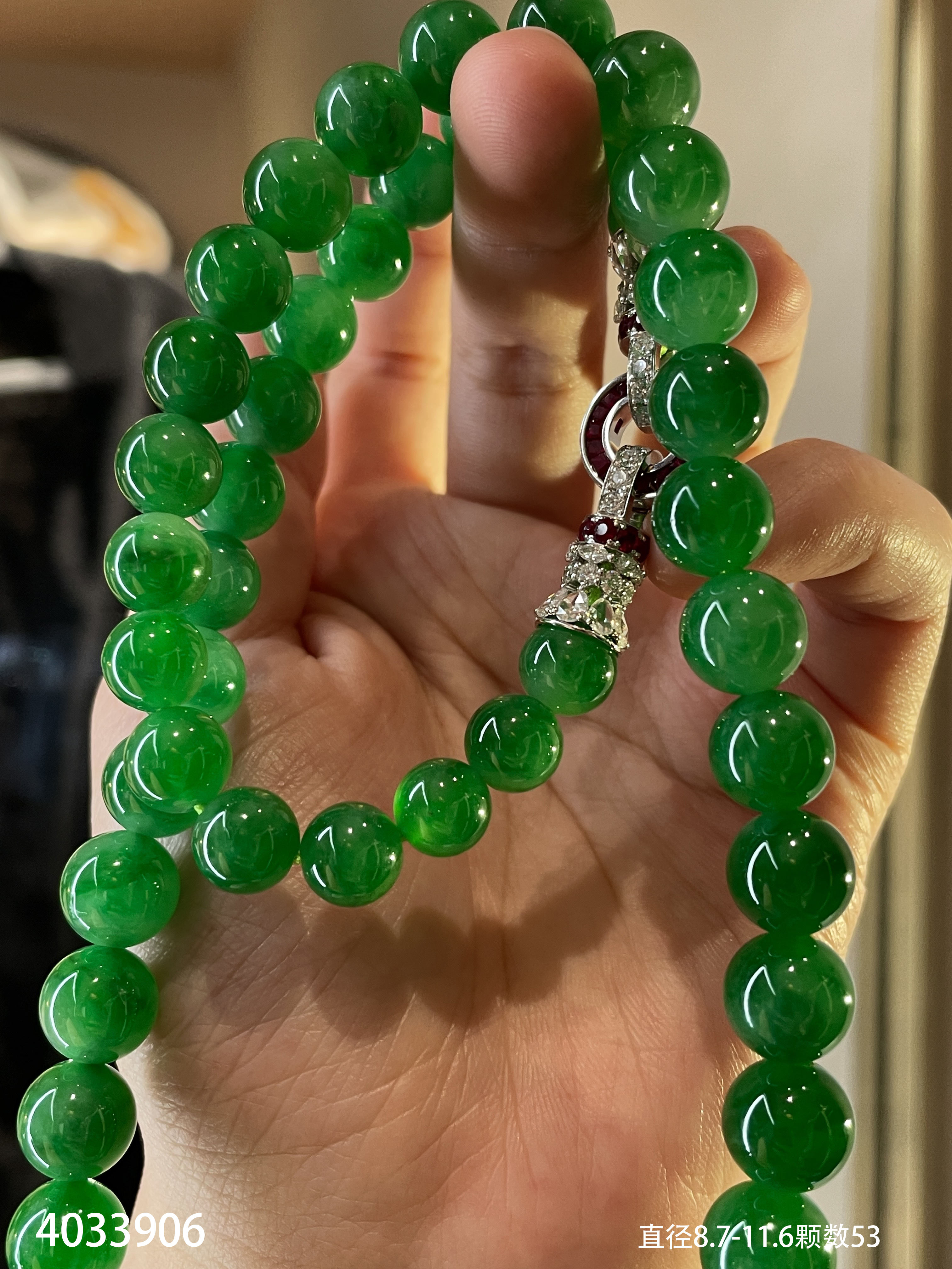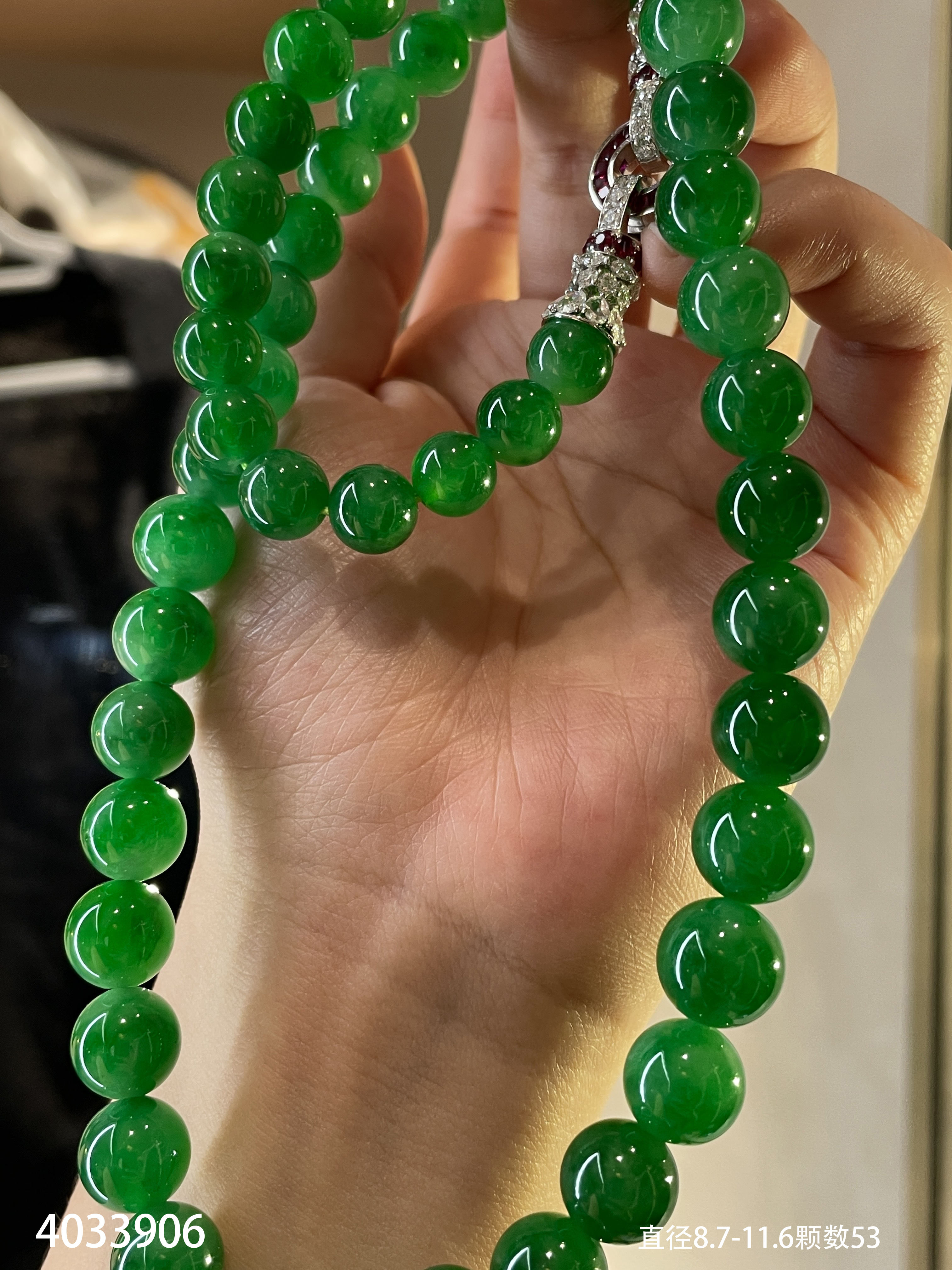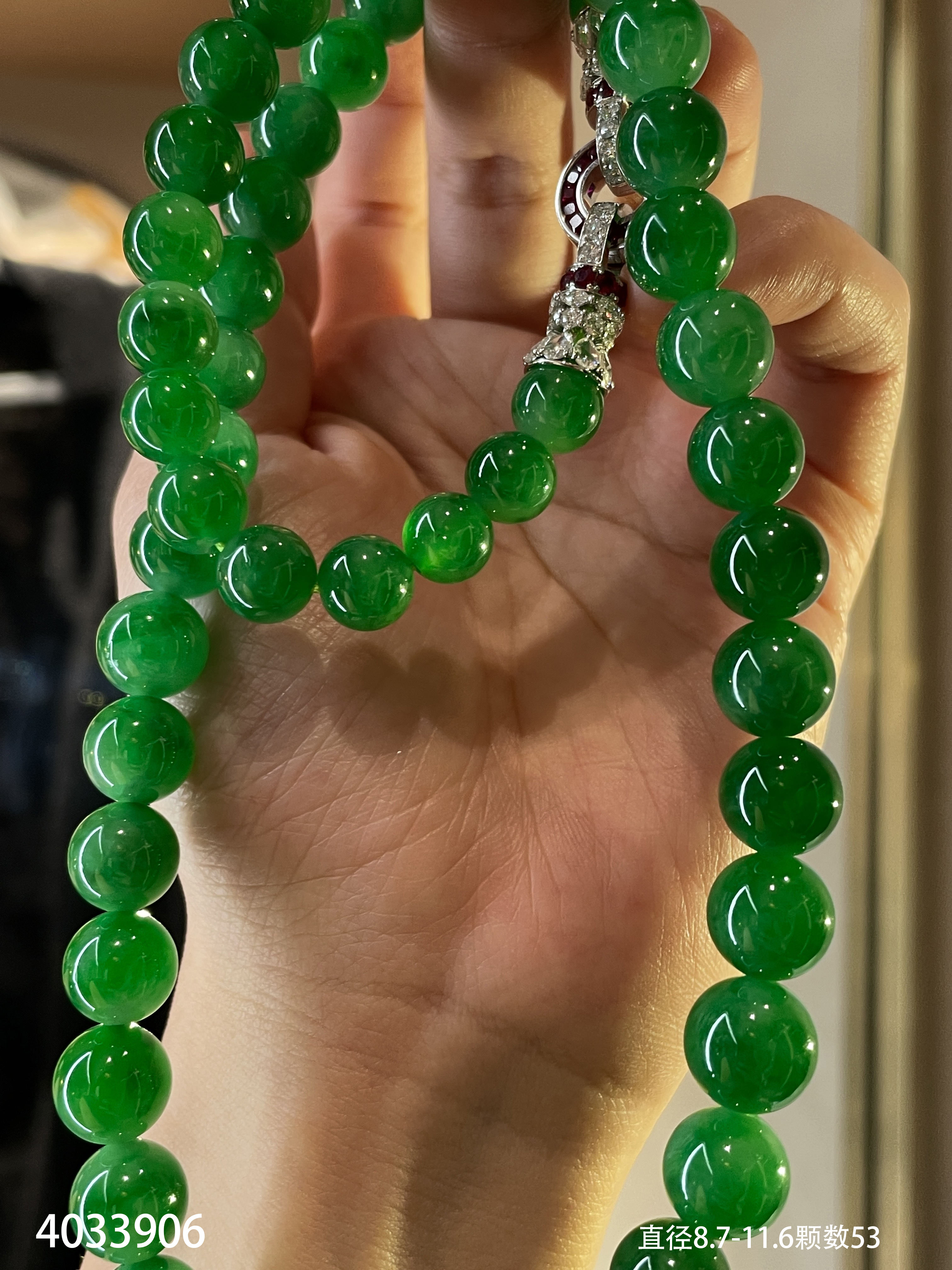 满色艳绿珠链【4033906】具体价格微信咨询