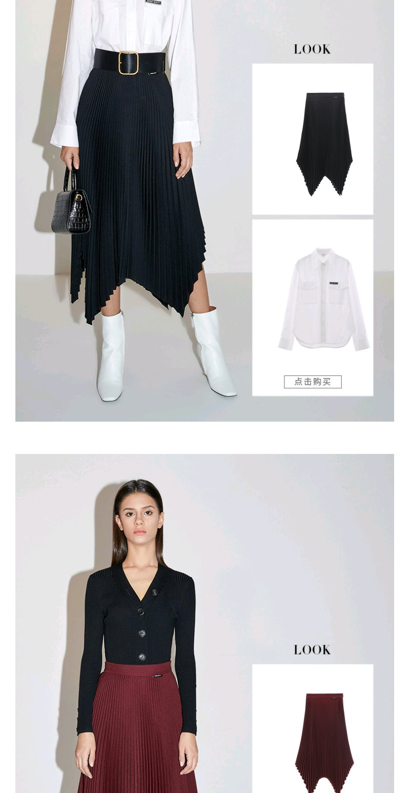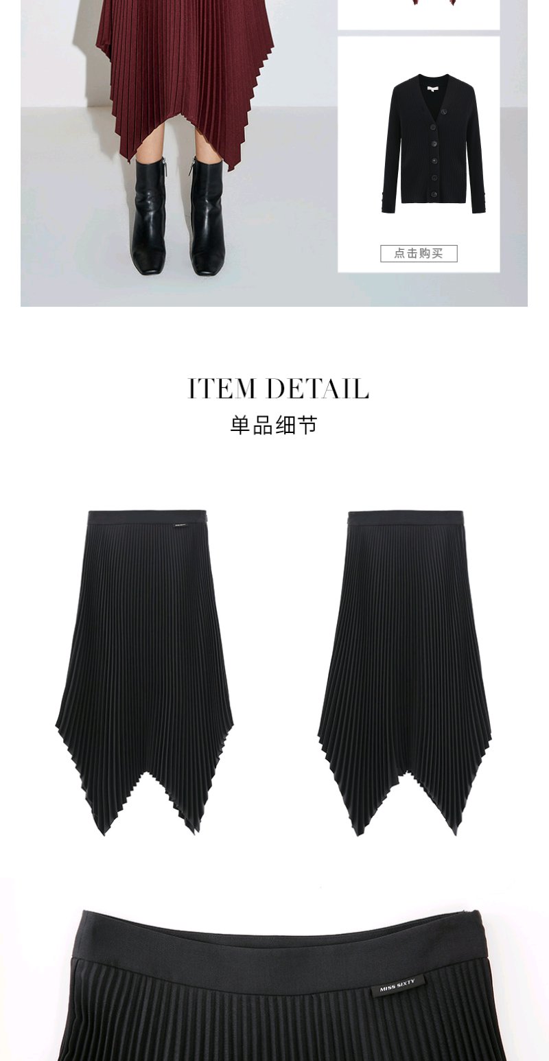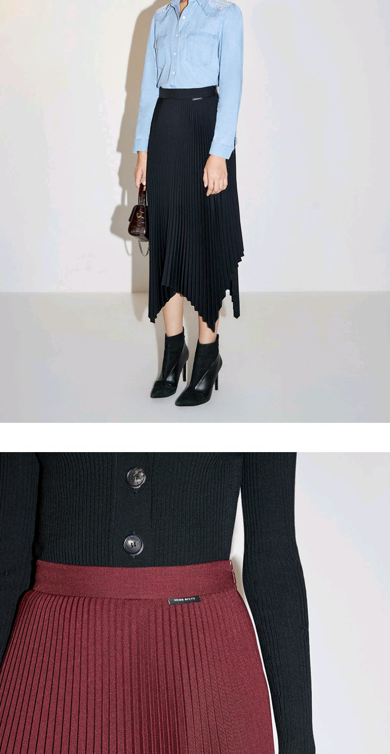 Miss Sixty2020秋季新款高腰百褶不规则中长半身裙603KJ0740000
