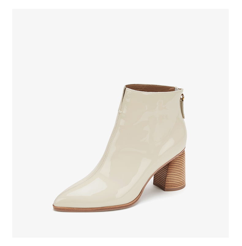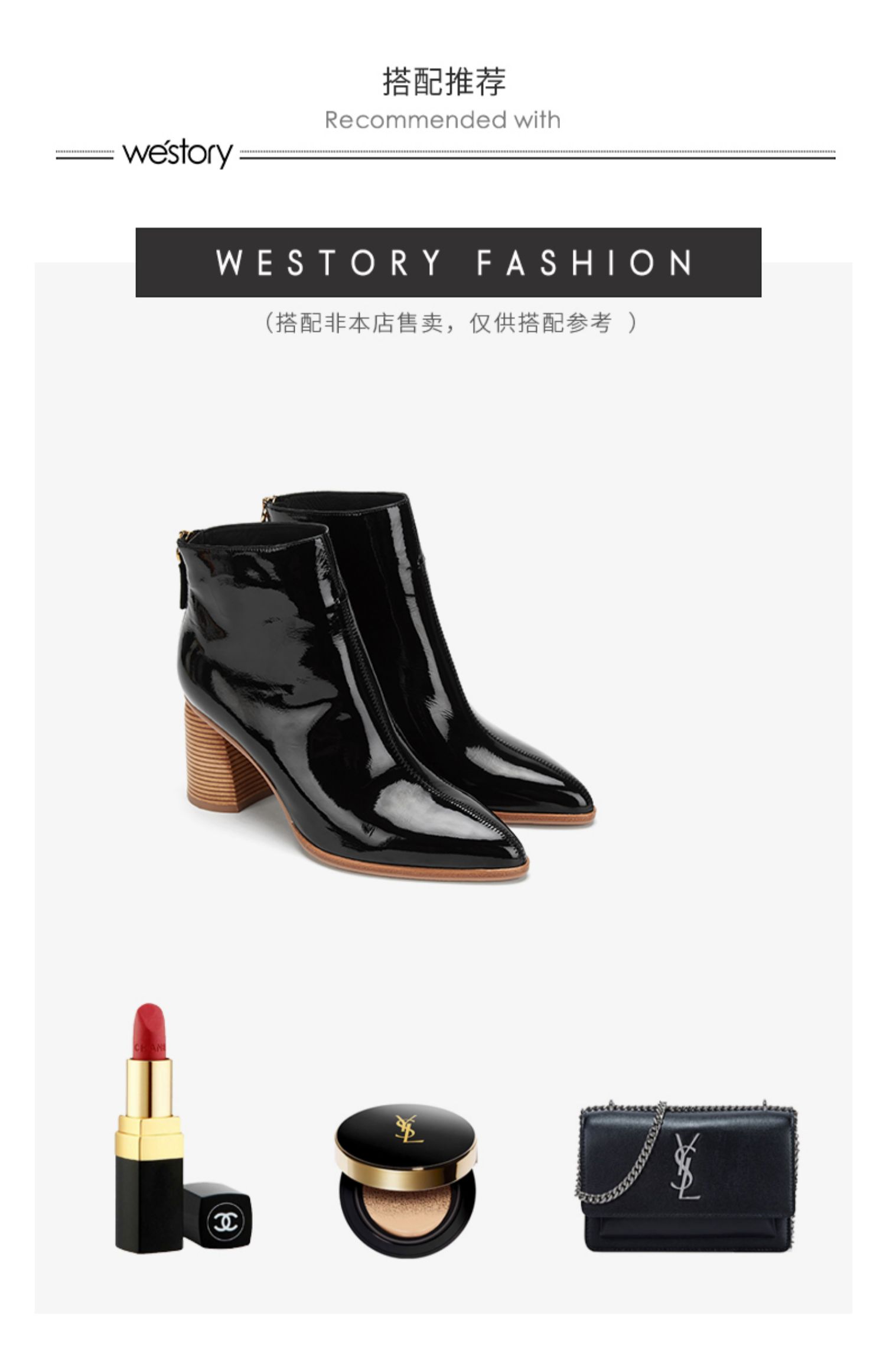westory漆皮时装真皮短靴女粗高跟尖头 2019年冬季新款W29DS80461