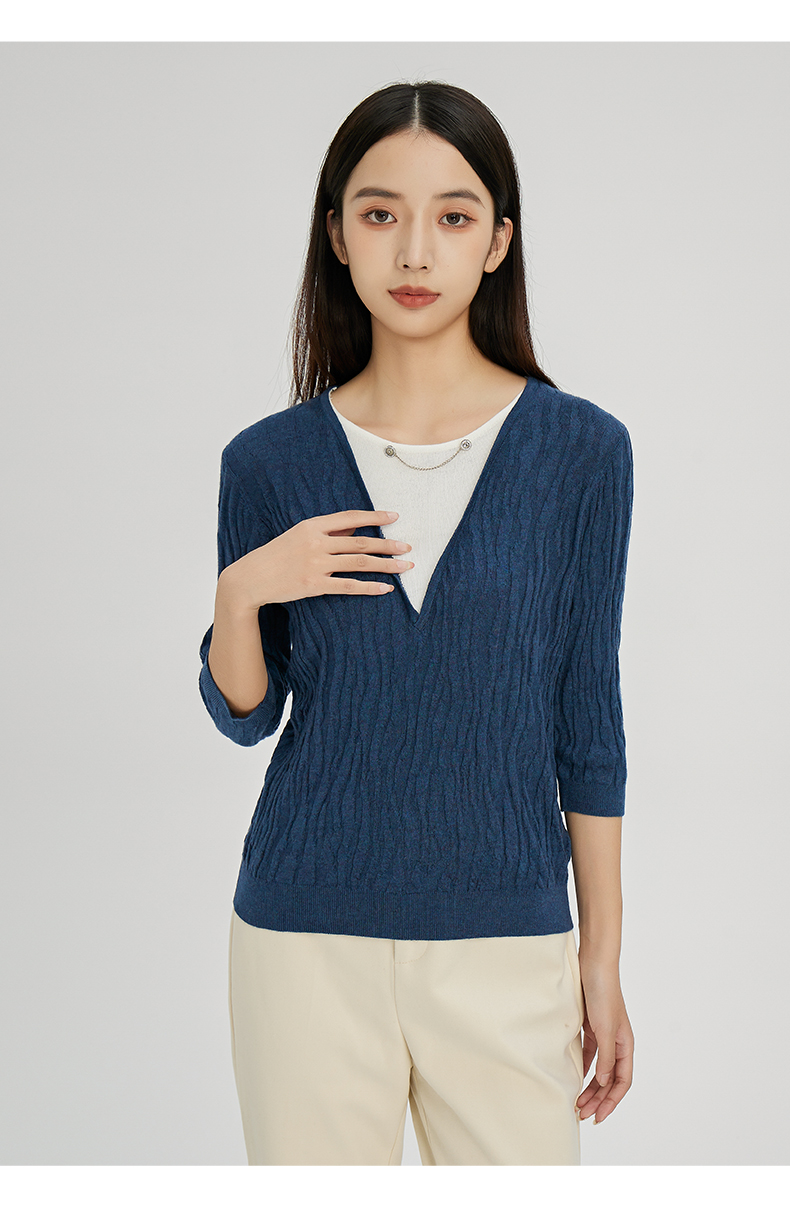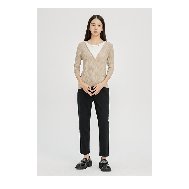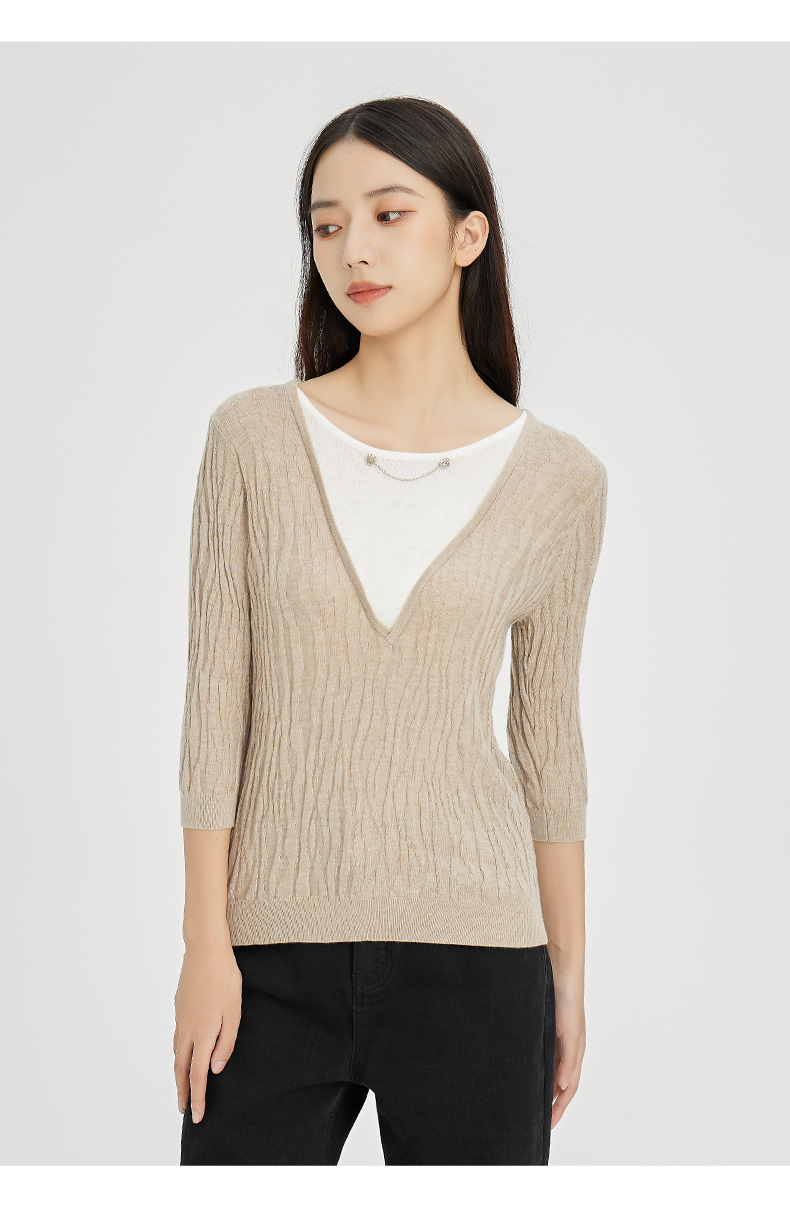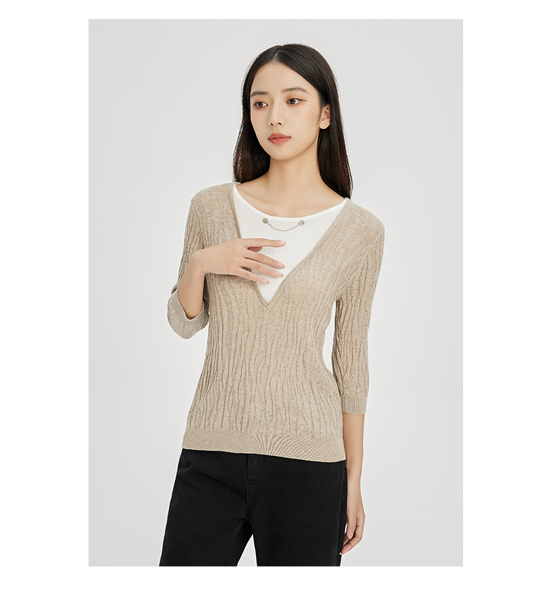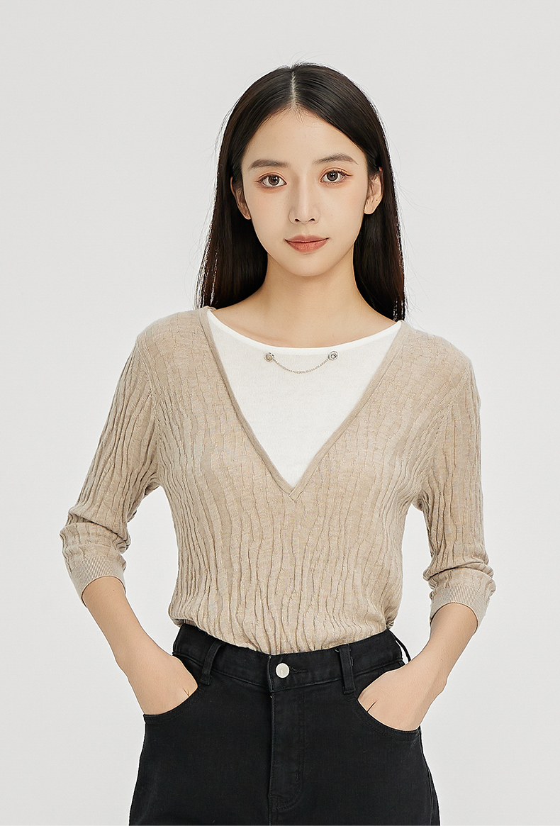 NUTS秋冬款气质百搭设计感时尚V领毛织套头衫假两件女241052225