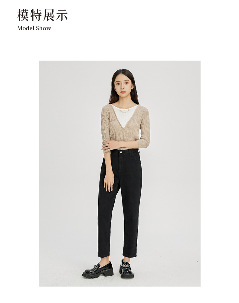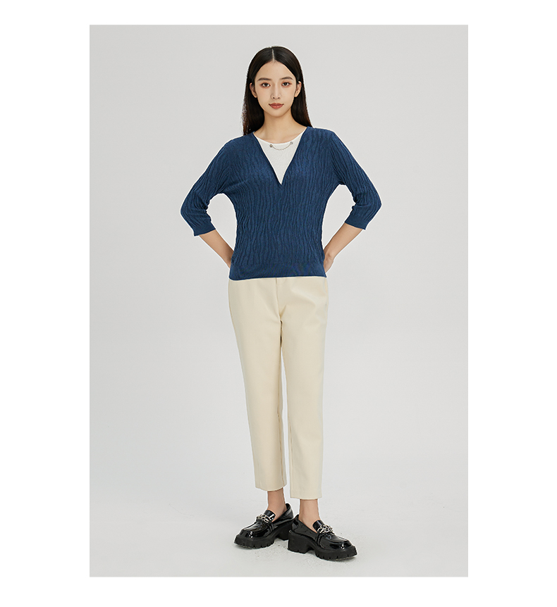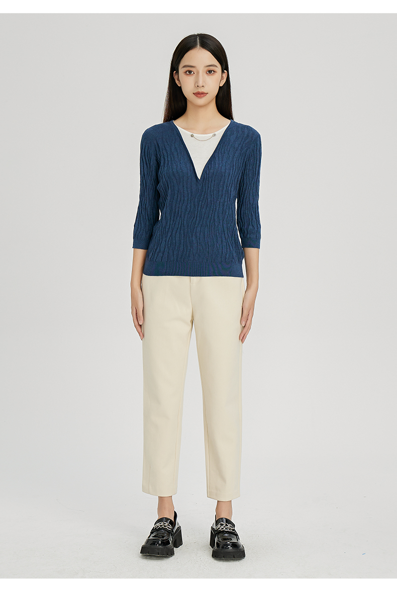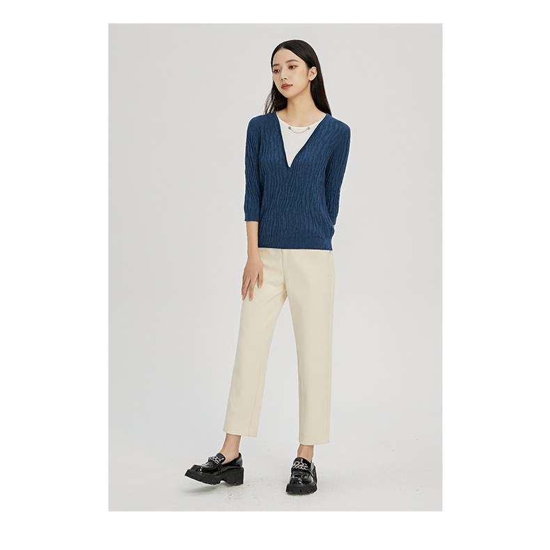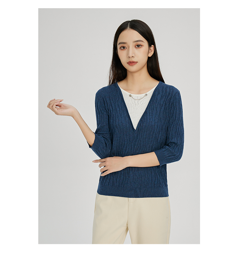 NUTS秋冬款气质百搭设计感时尚V领毛织套头衫假两件女241052225