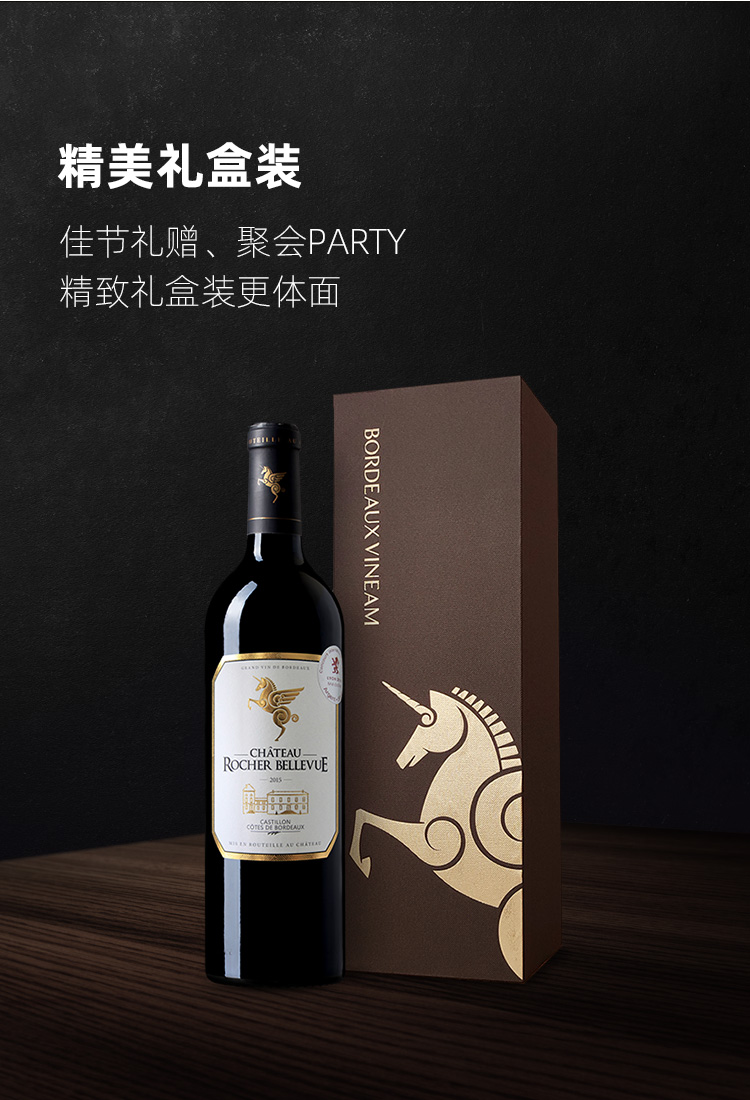 翡马 美丽石景酒庄红葡萄酒 单支礼盒装 波尔多AOC级 法国进口红酒 750ml