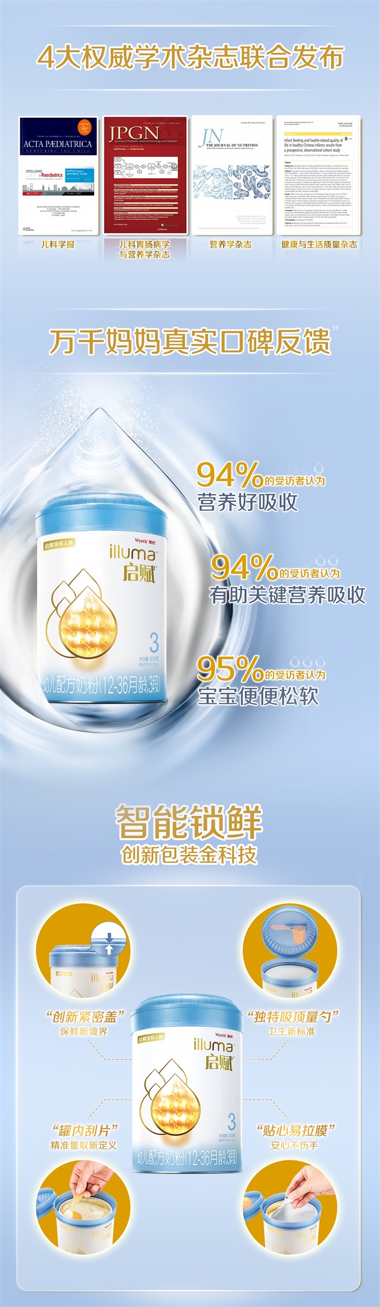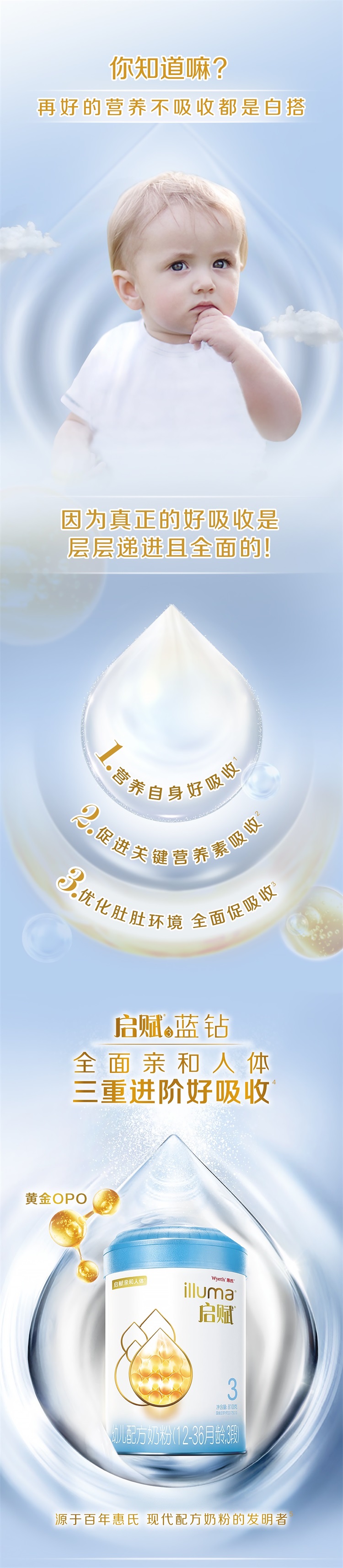 双12特惠-惠氏启赋蓝钻幼儿配方奶粉3段810g