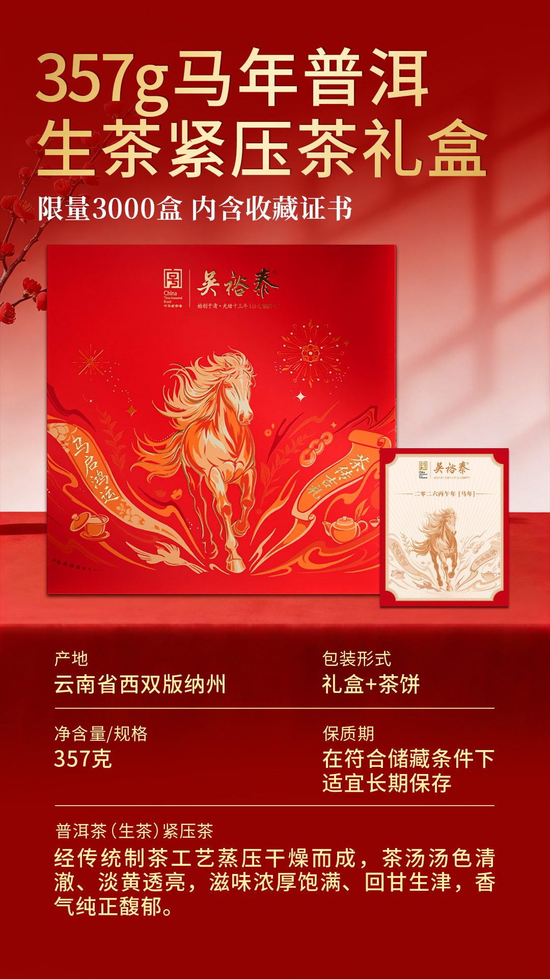 357g马年普洱生茶紧压茶礼盒