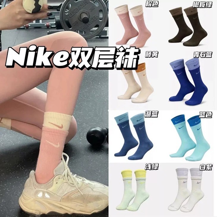 【商城单】18色-NIKE双层假两件棉袜,毛巾底纯棉情侣款,高质量有实拍。