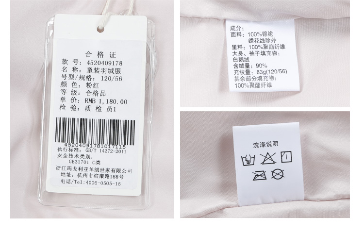 | 含绒量: 90% | 材质成分: 聚酰胺纤维(锦纶)100% |