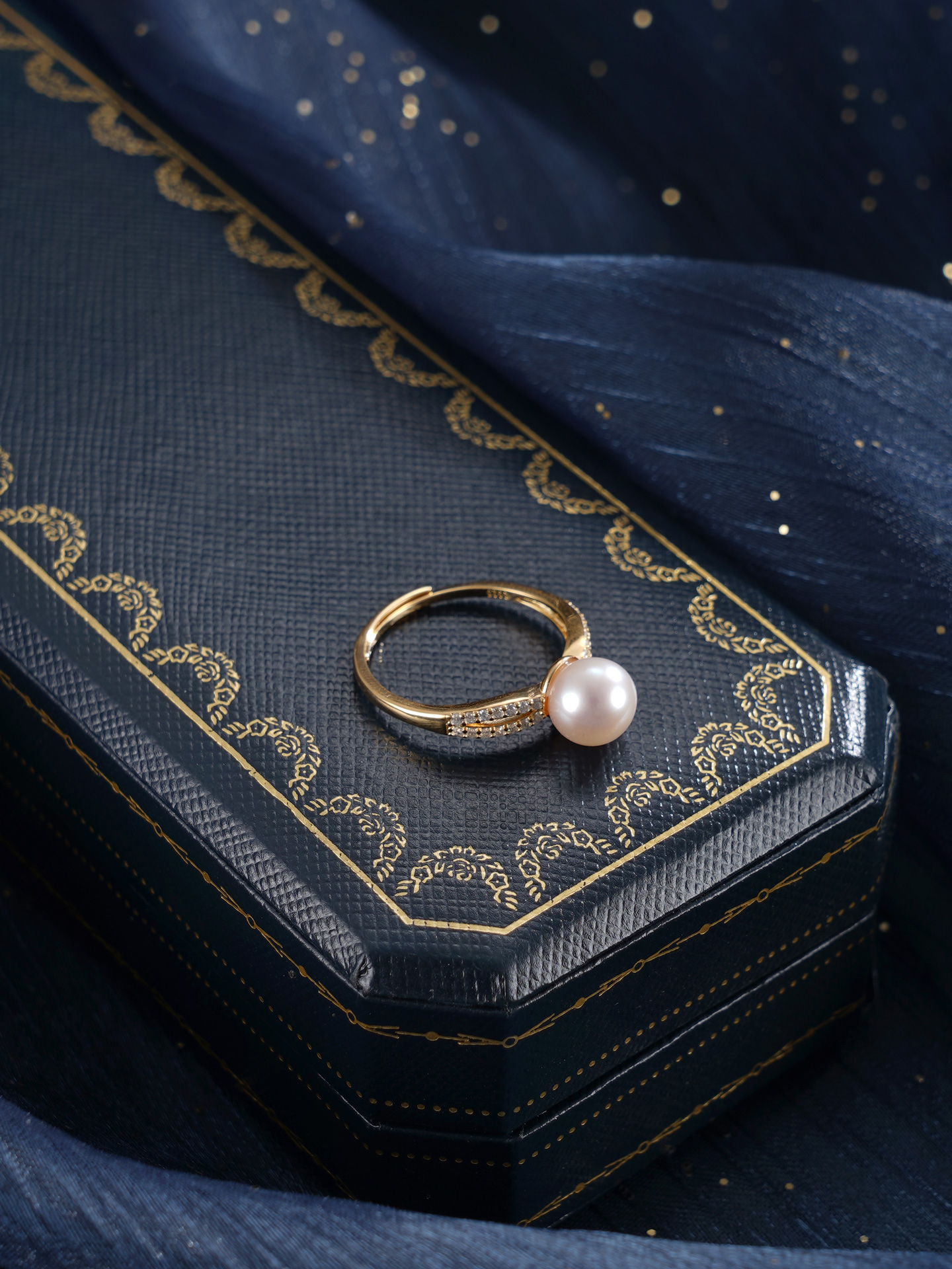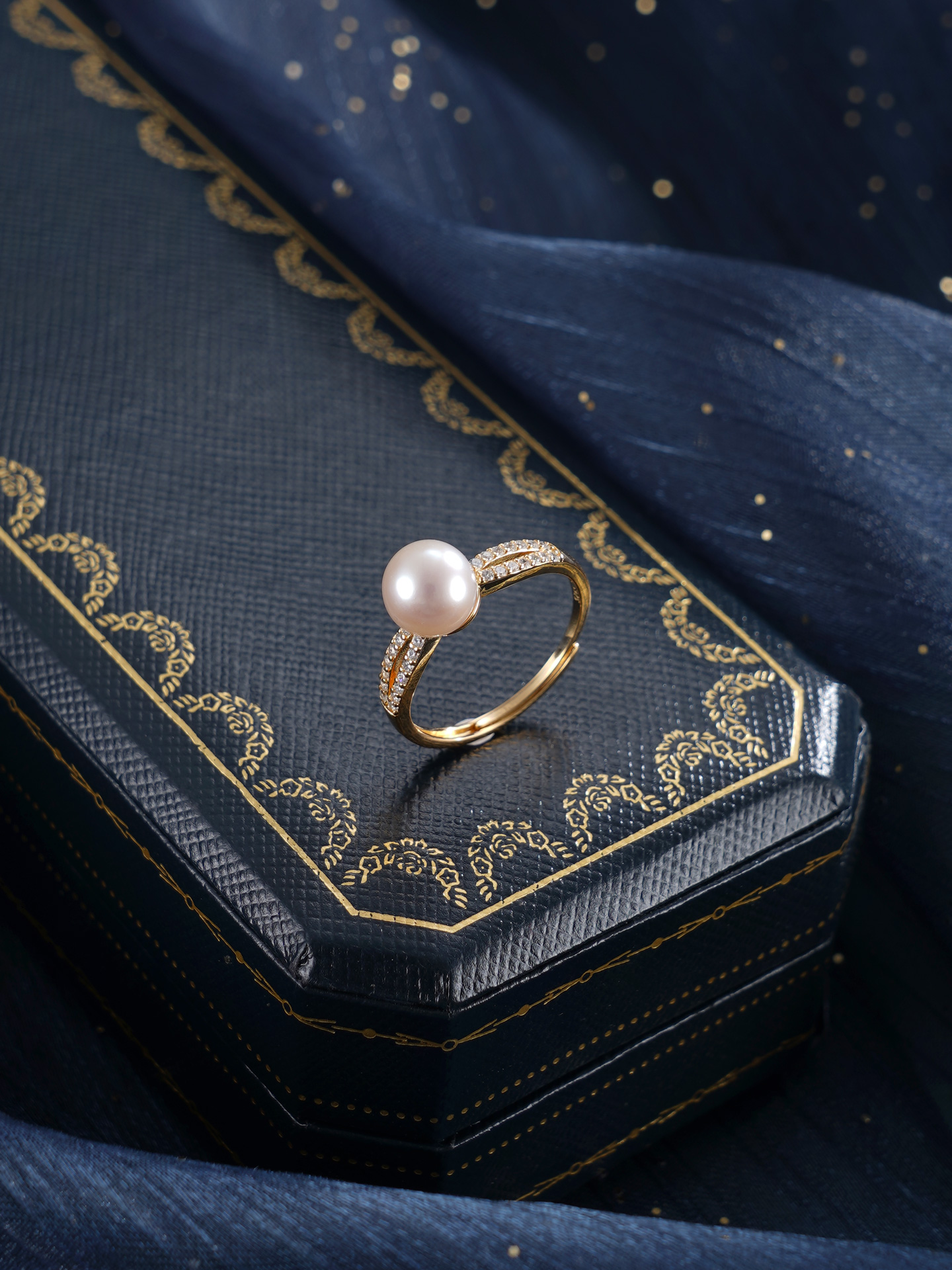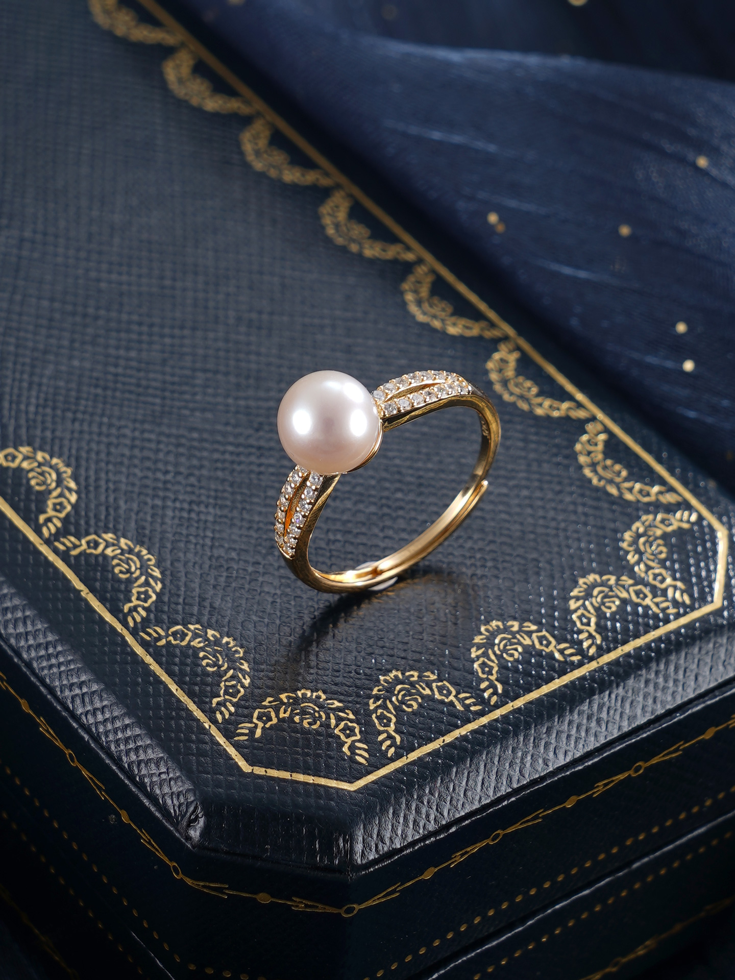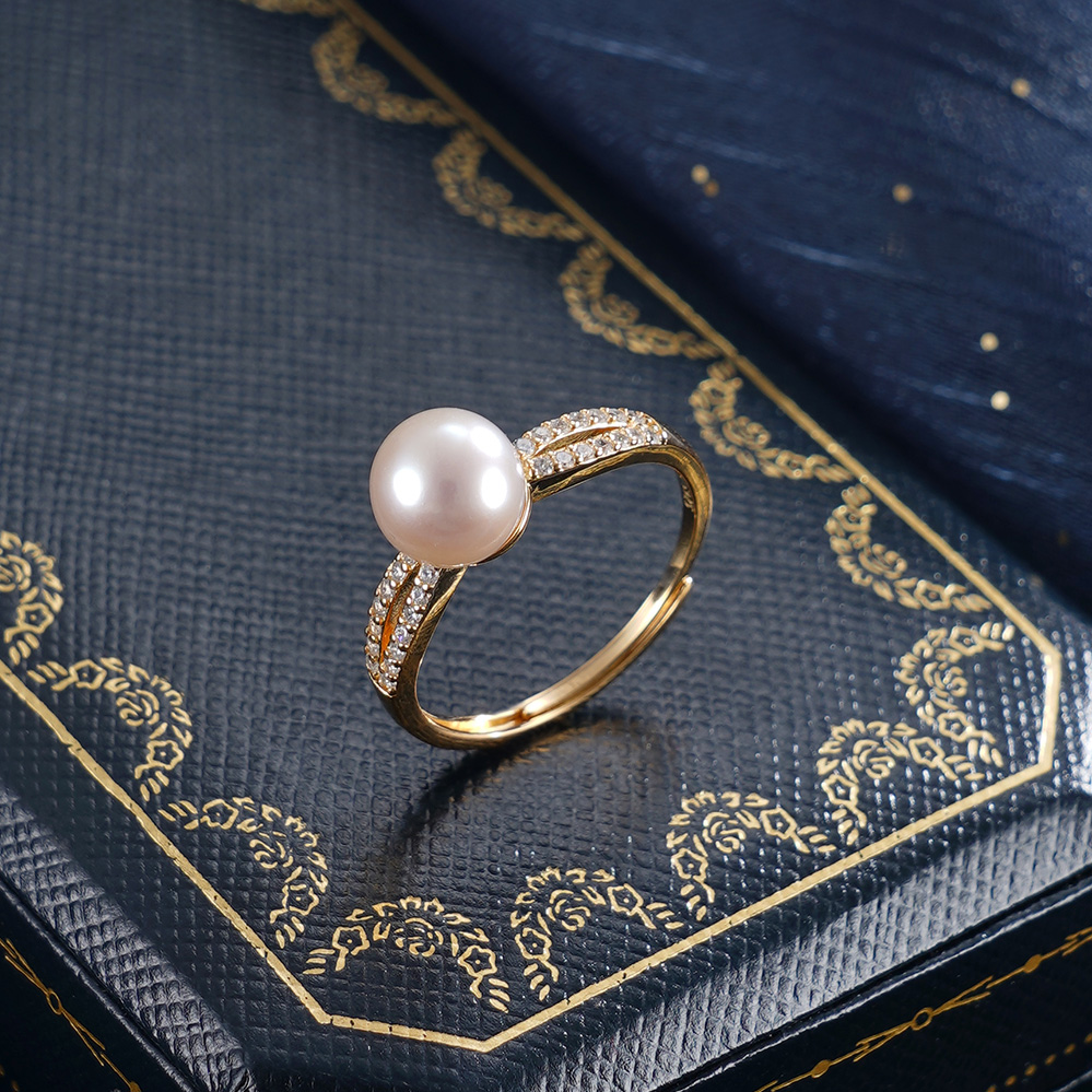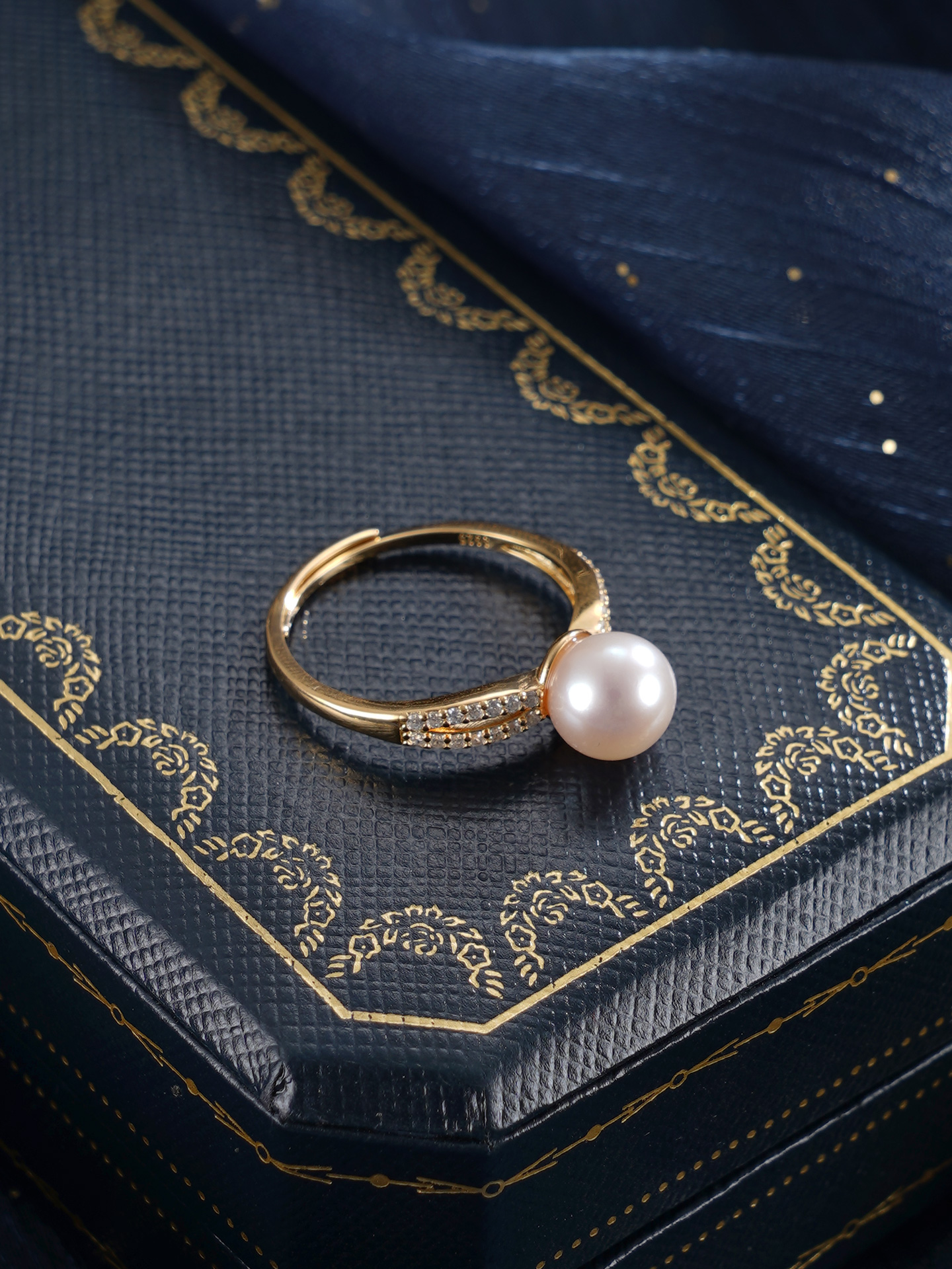 子佩集【暮光之谜】银S925珍珠惜王妃戒指【R1905】7mm珠镀金交织缠绕2601