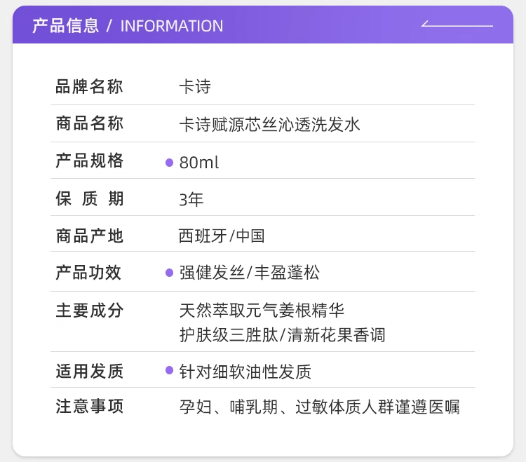KERASTASE卡诗 赋源芯丝沁透洗发水80ml