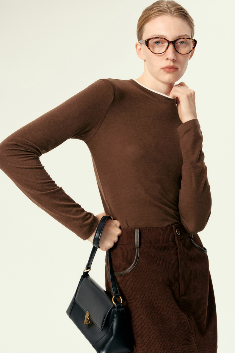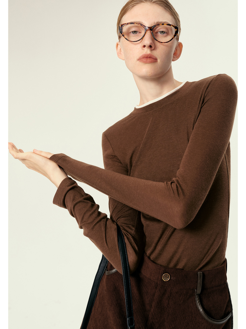 【特惠不退货】伊芙丽假两件舒适长袖打底T恤1FA601282
