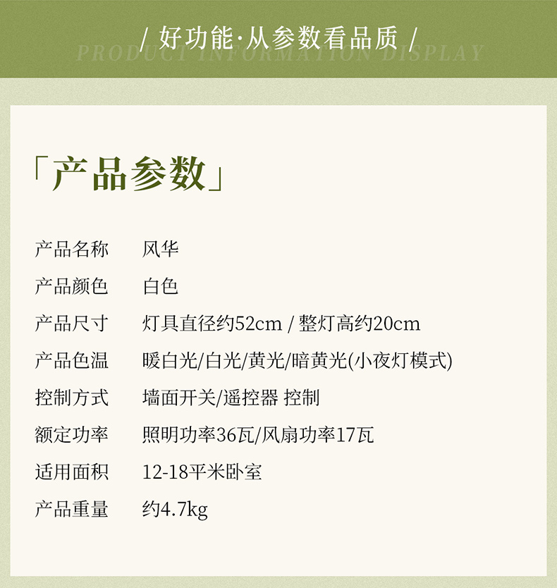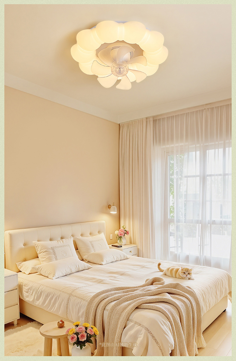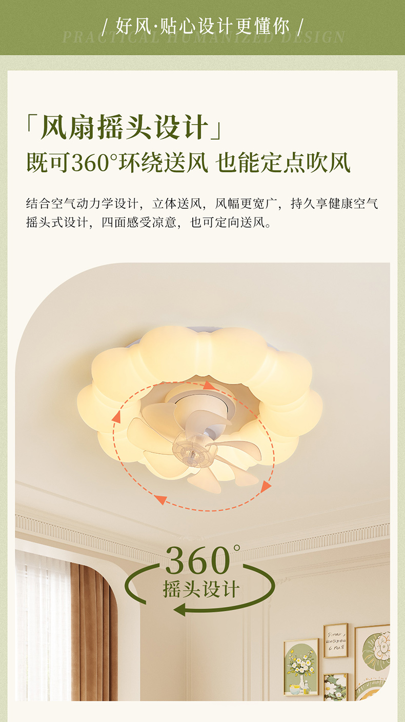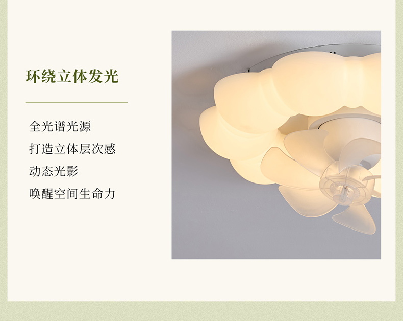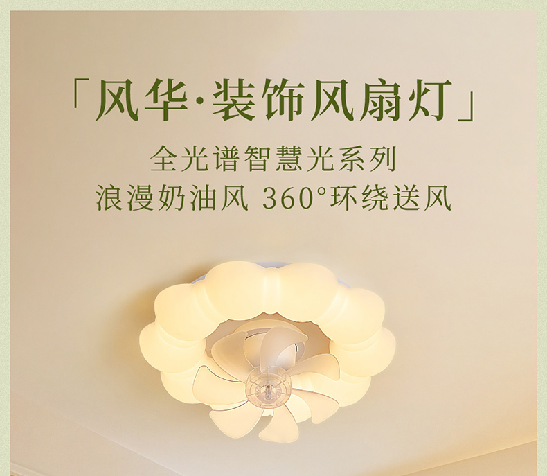 欧普(OPPLE)25新吸顶风扇灯全光谱奶油风静音变频电扇一体遥控餐厅灯卧室灯风华