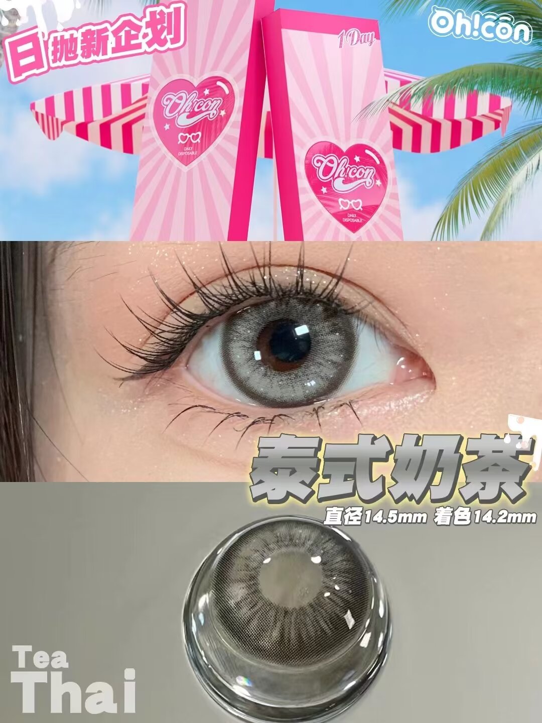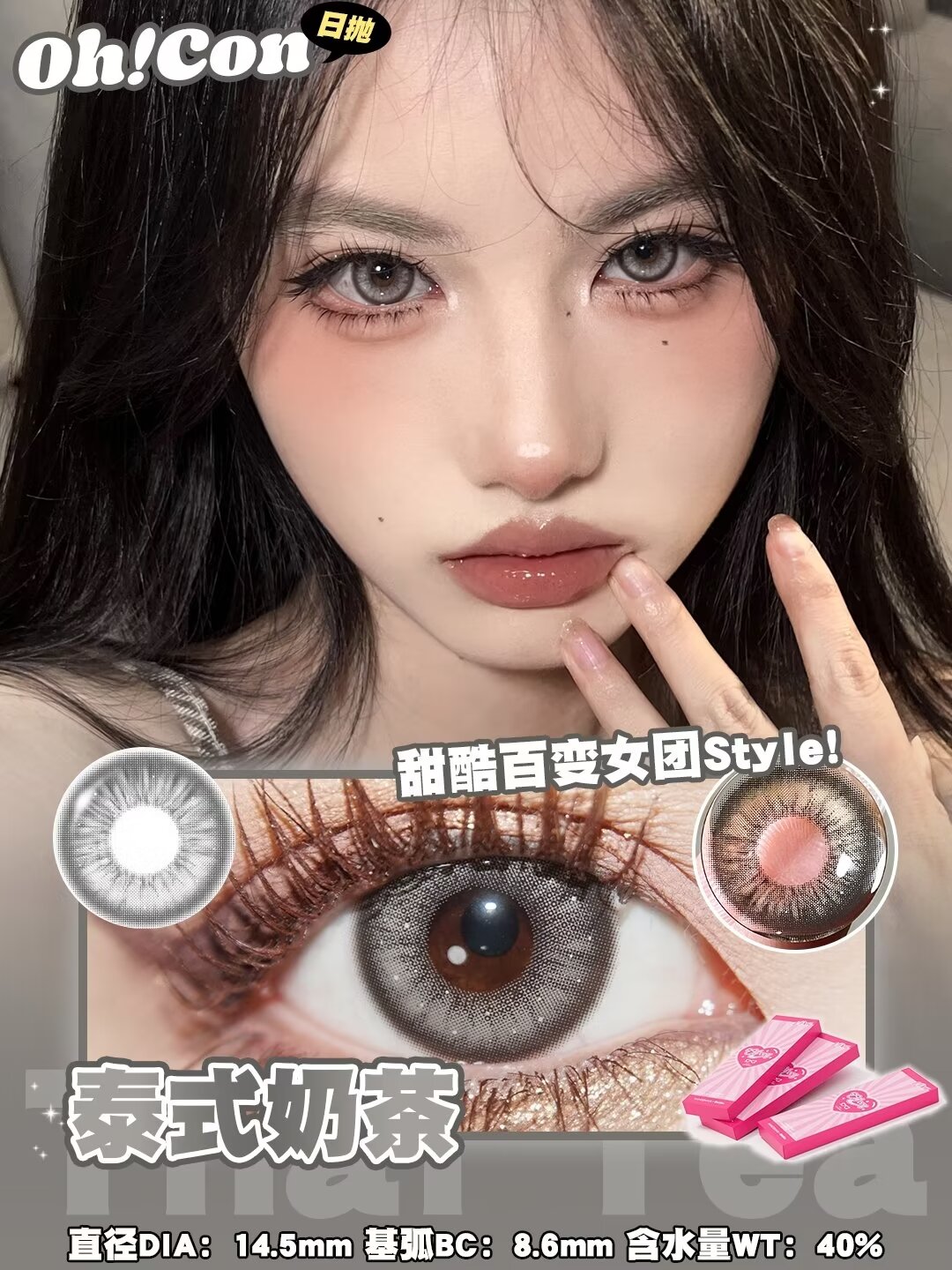 Oh!con 日抛 雾面雪山&泰式奶茶直径14.5 着色13.9 基弧8.6 含水量40%