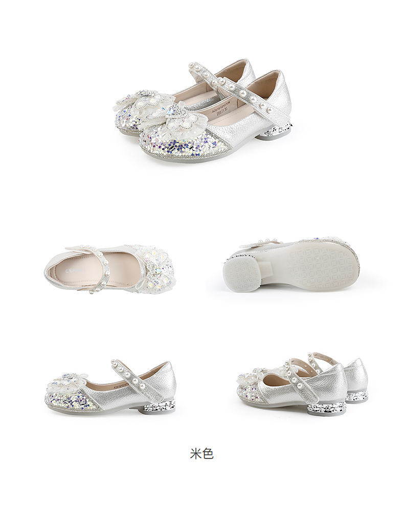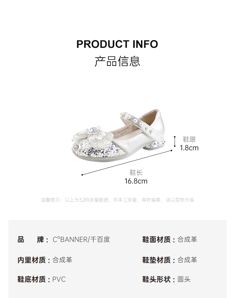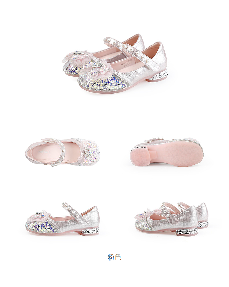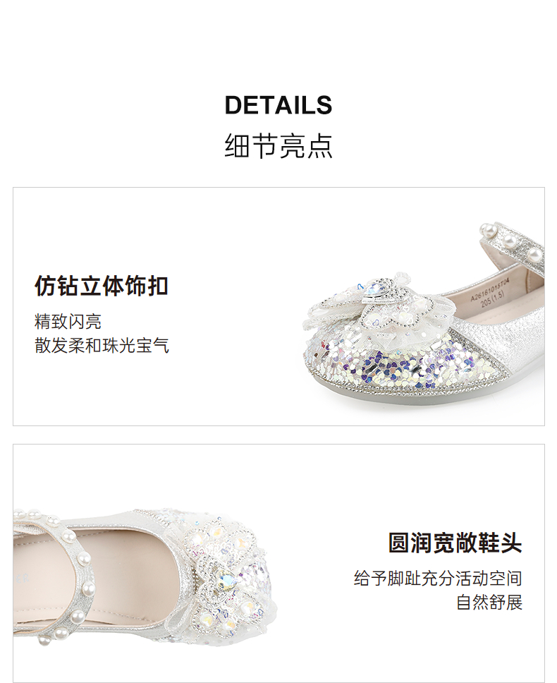 千百度2026春季童鞋仿钻立体饰扣精致闪亮公主鞋A26161015