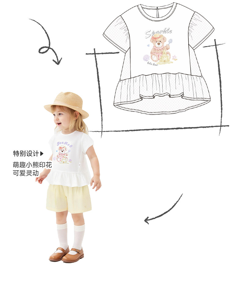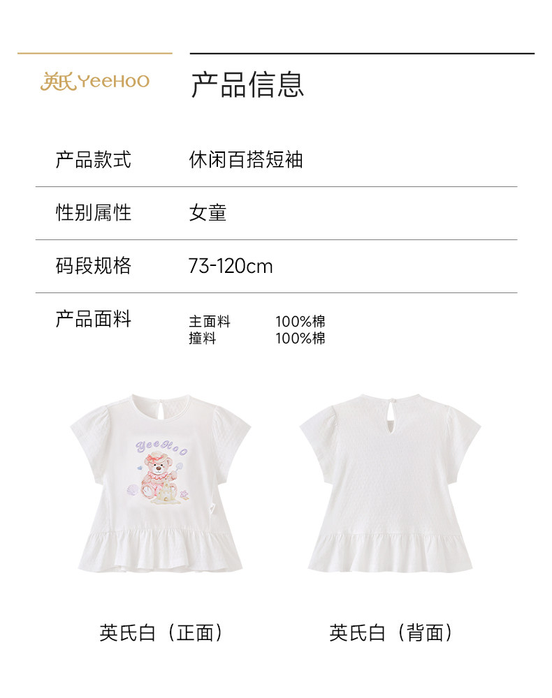 【联名款】英氏&Happy Horse儿童T恤夏季透气短袖上衣女童套衫YRTCJ2S067A