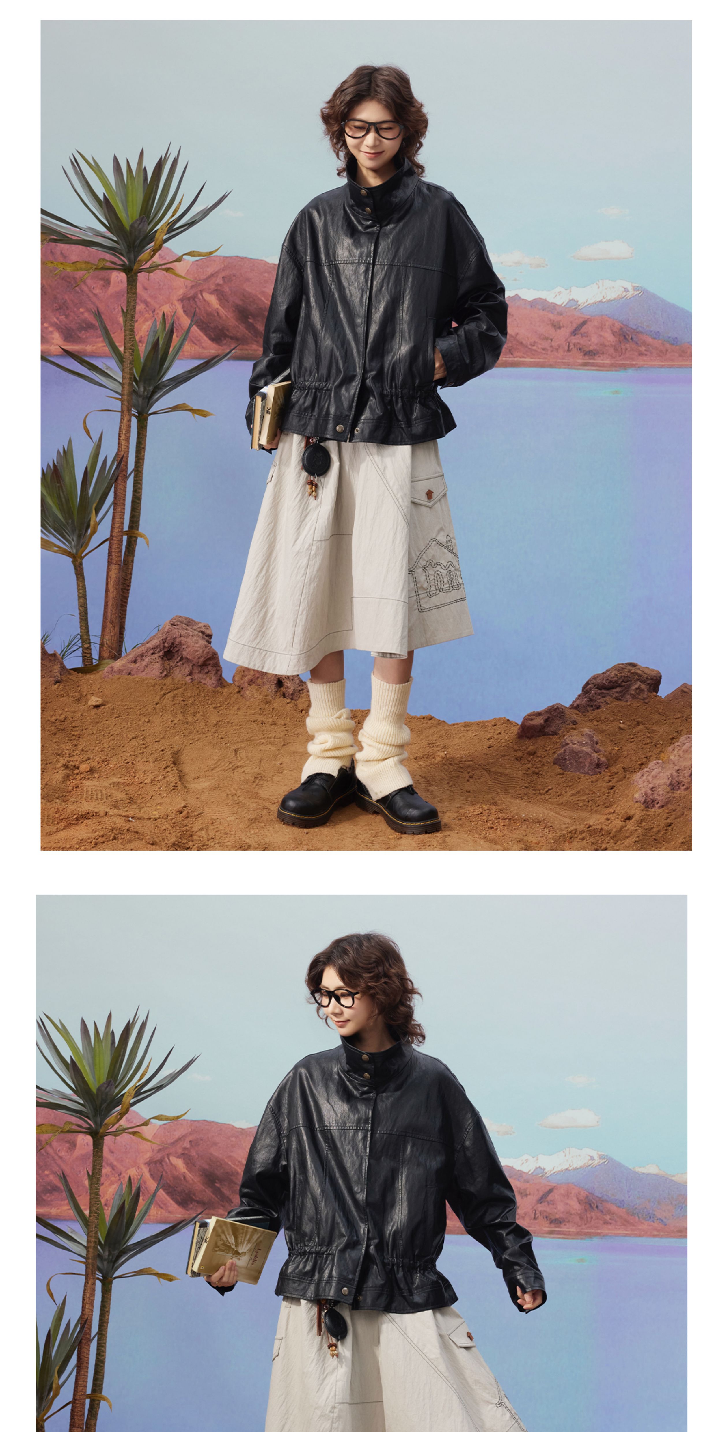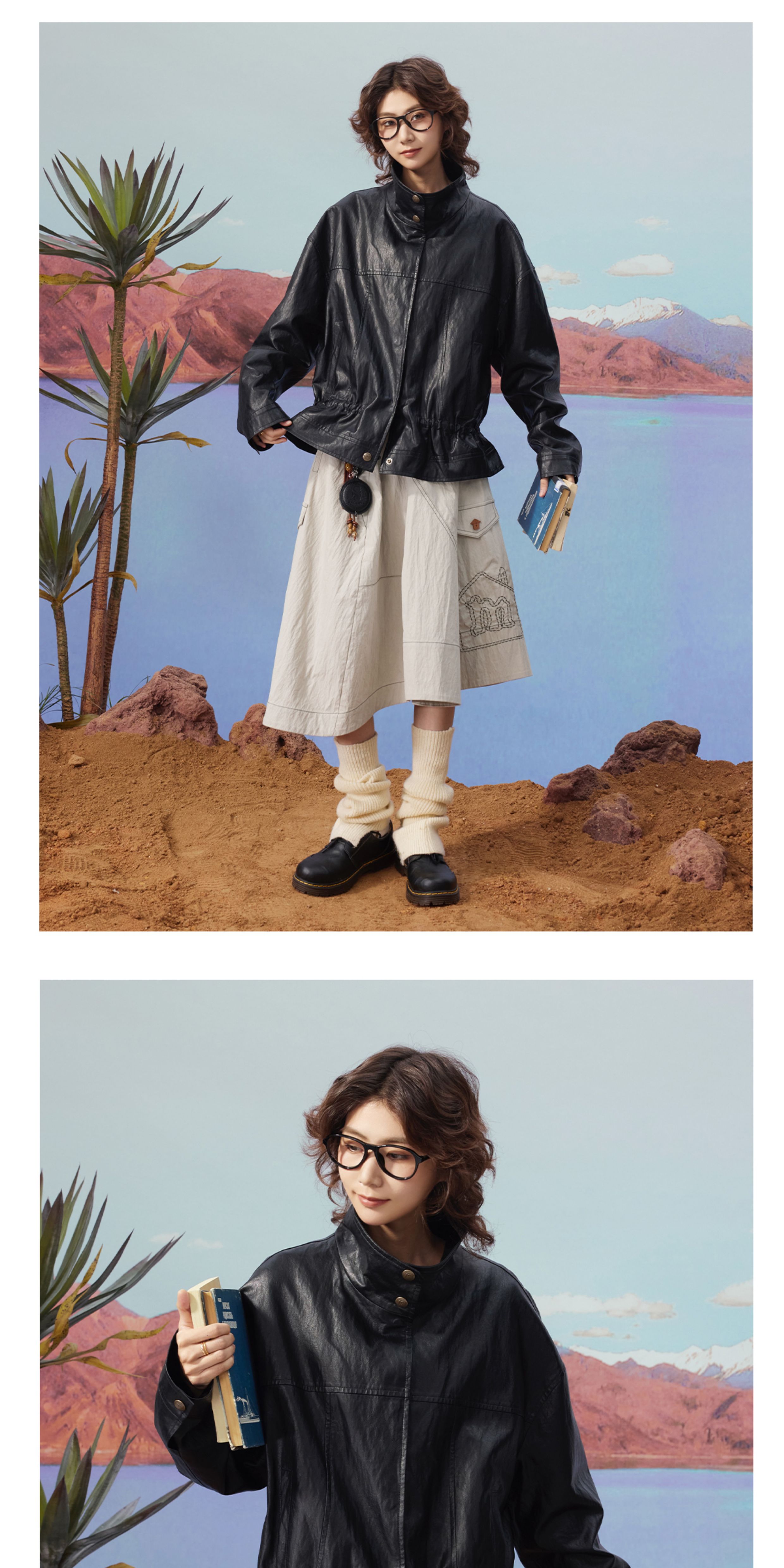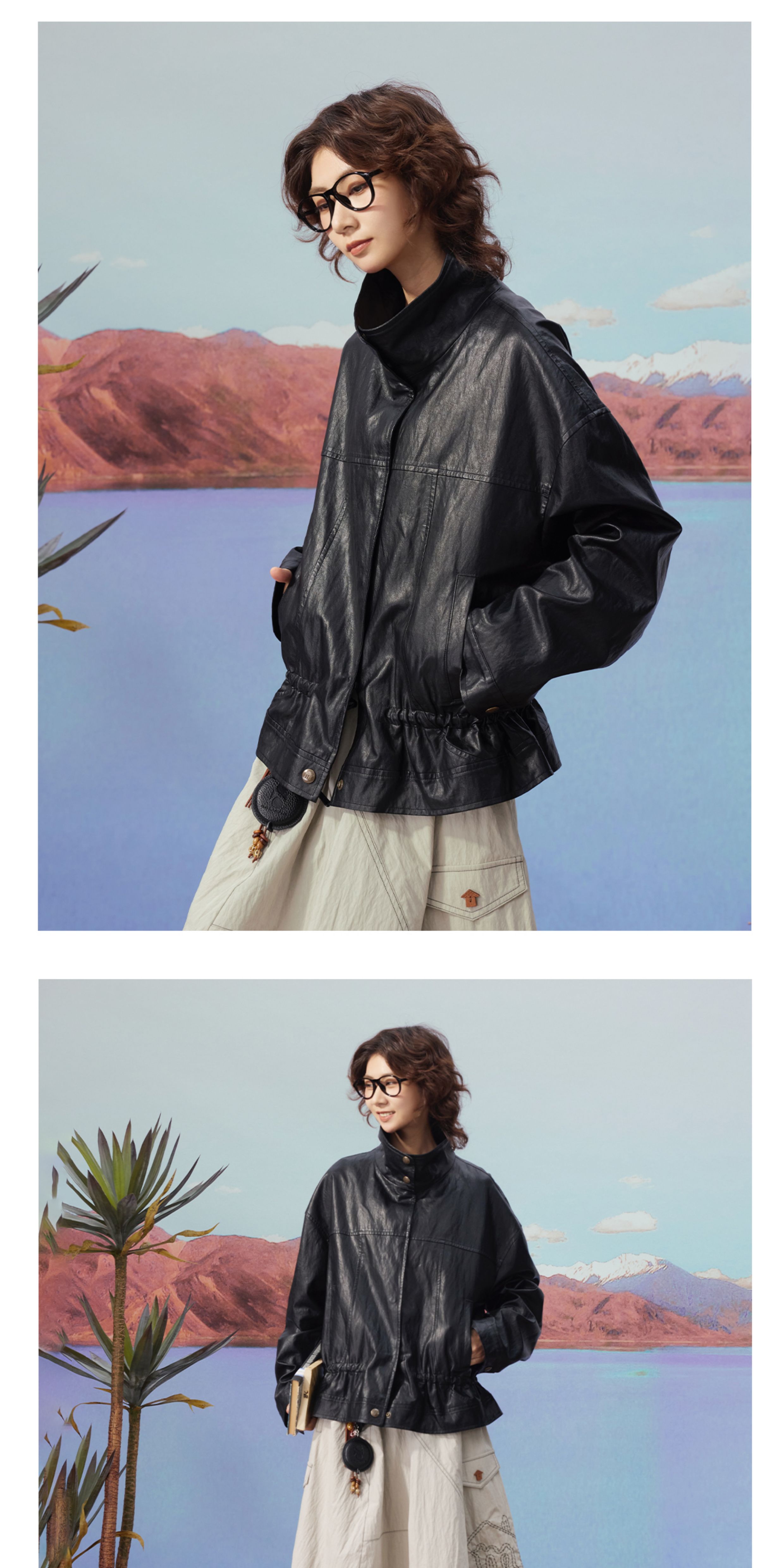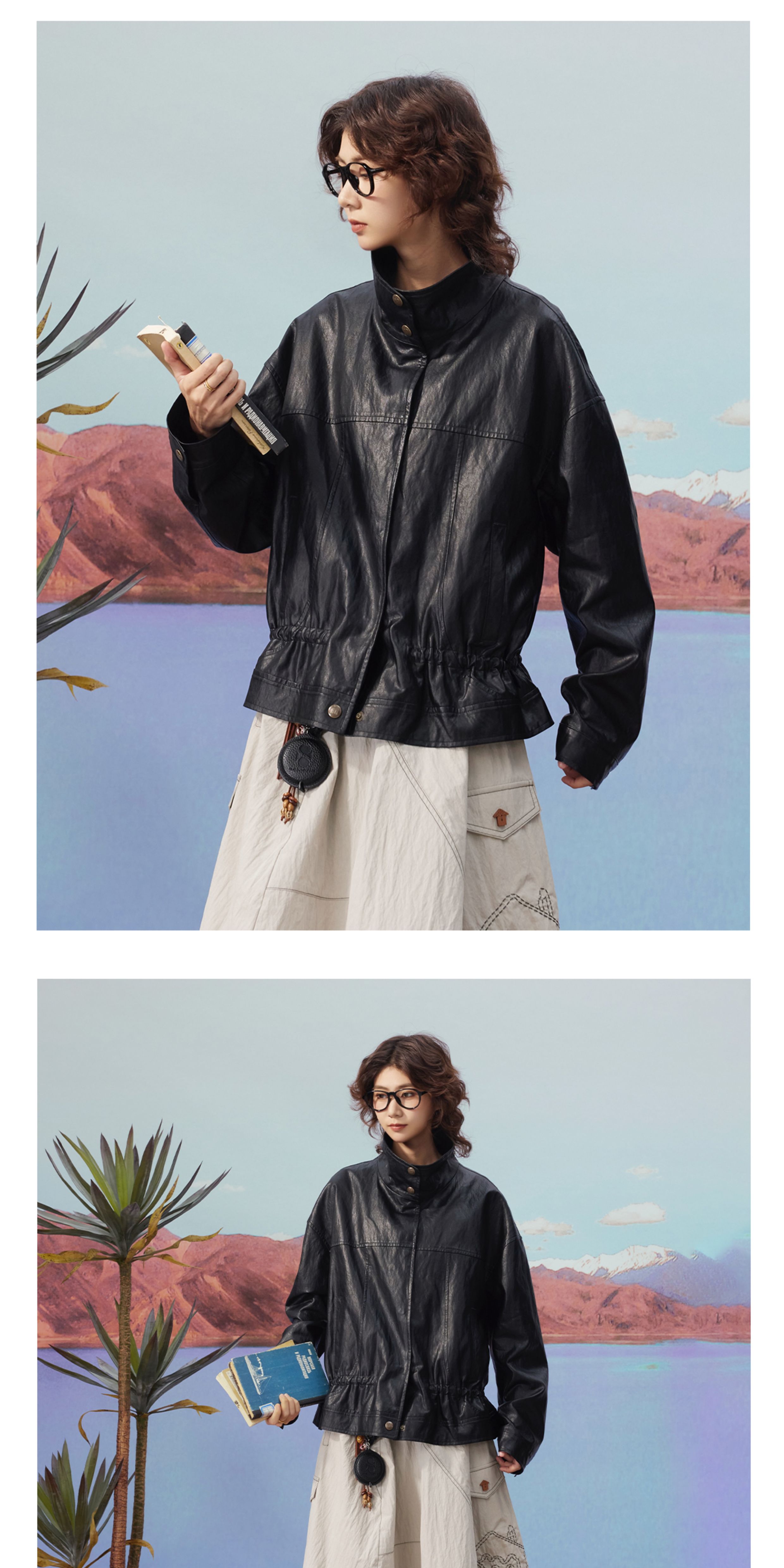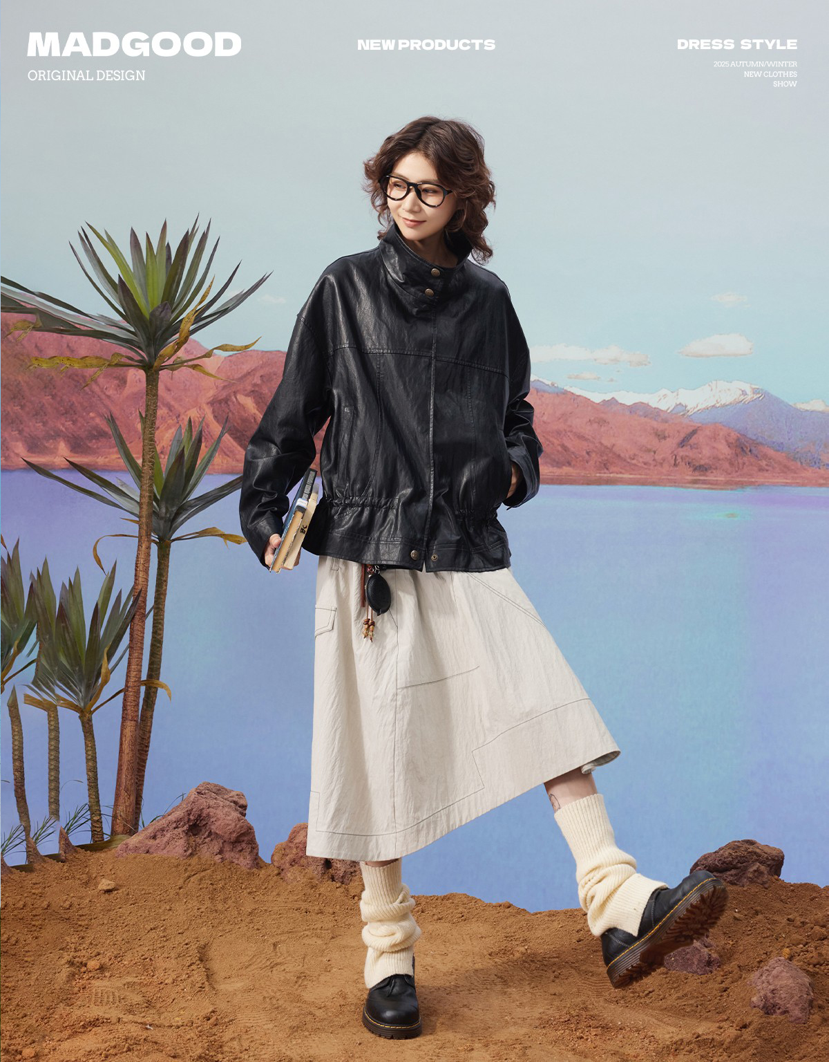 马得工地/MDGDWT13050/弧形分割皮衣夹克