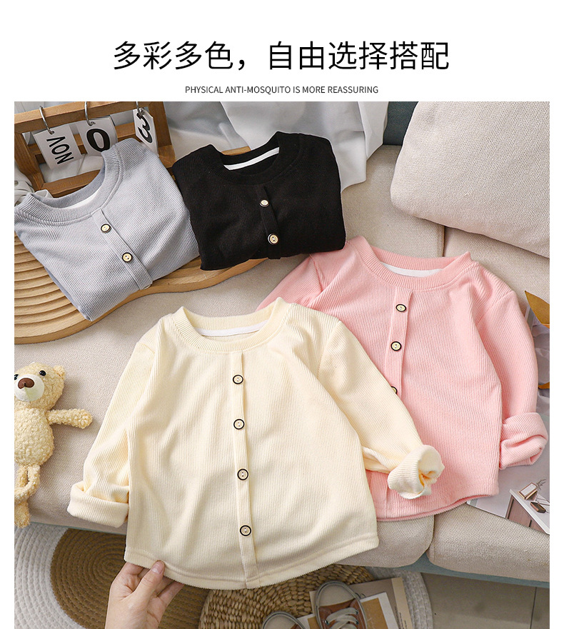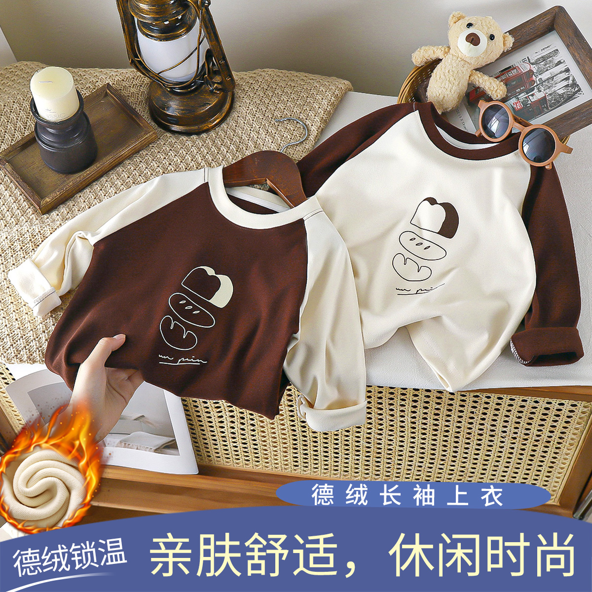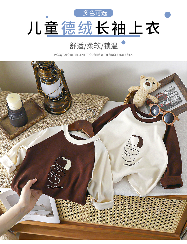 【39.9/任选2件】80-160码男童插肩德绒长袖T恤女童四色甜美长袖T恤聚