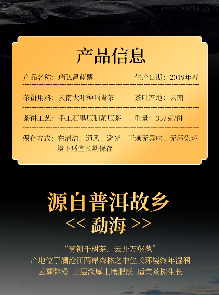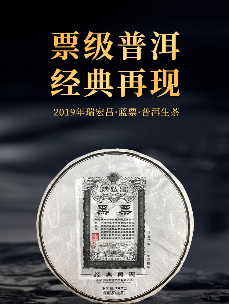 尚礼村2019 瑞弘昌【黑票】生普洱茶 357g