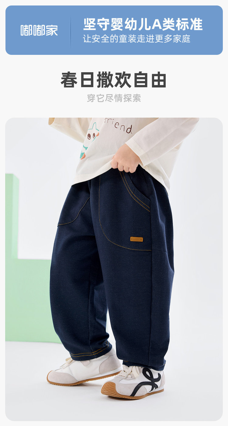 嘟嘟家儿童裤子男童牛仔裤春秋女童春季休闲长裤春装宝宝新款衣服T6AKZ202