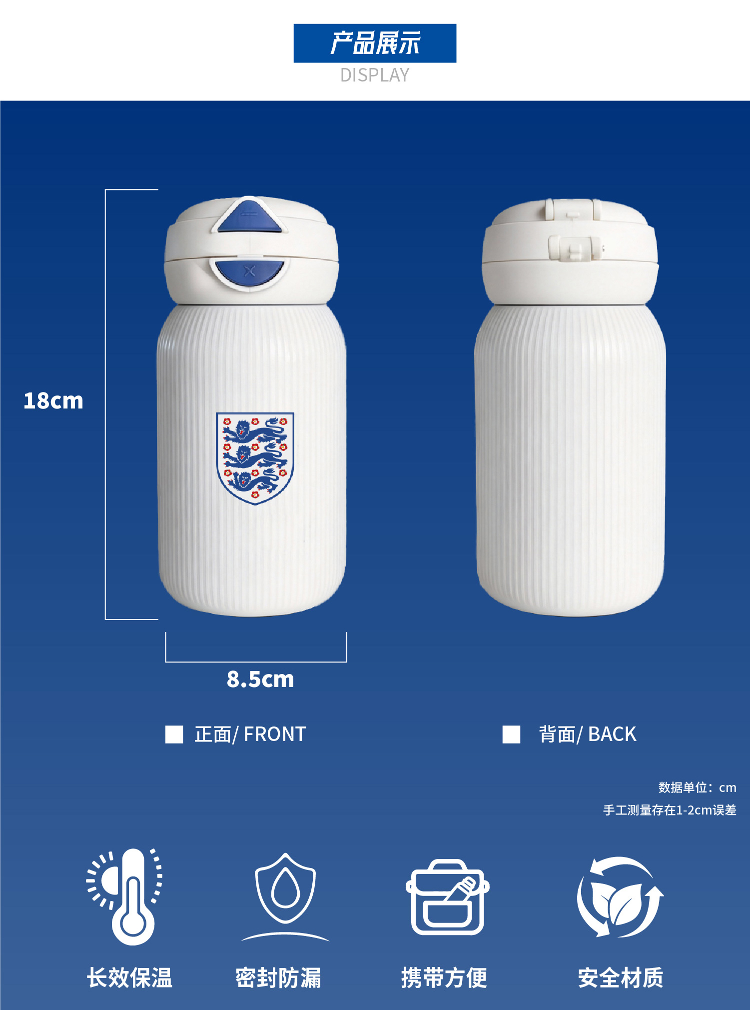 【官方正版】英格兰国家队 | 白色队徽迷你保温杯便携小水杯