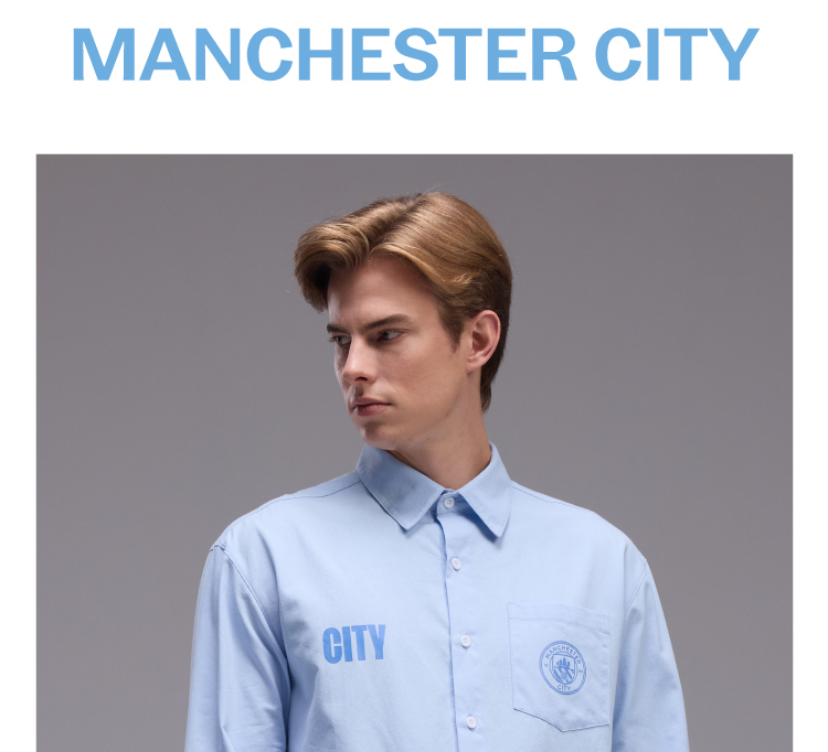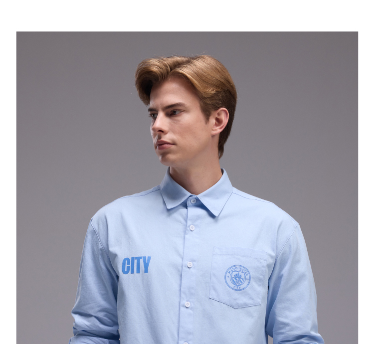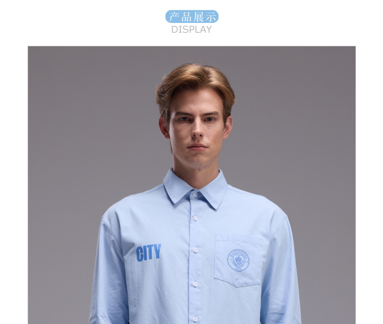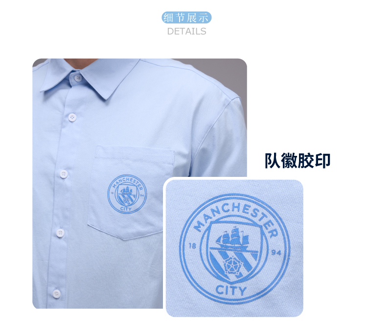 【官方正版】曼城俱乐部 | 春夏新款长袖衬衫蓝色休闲简约百搭