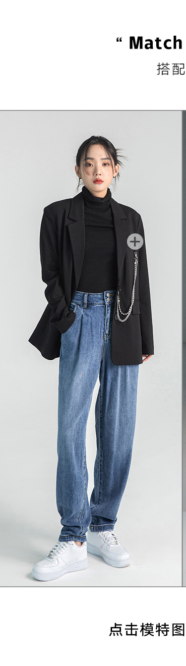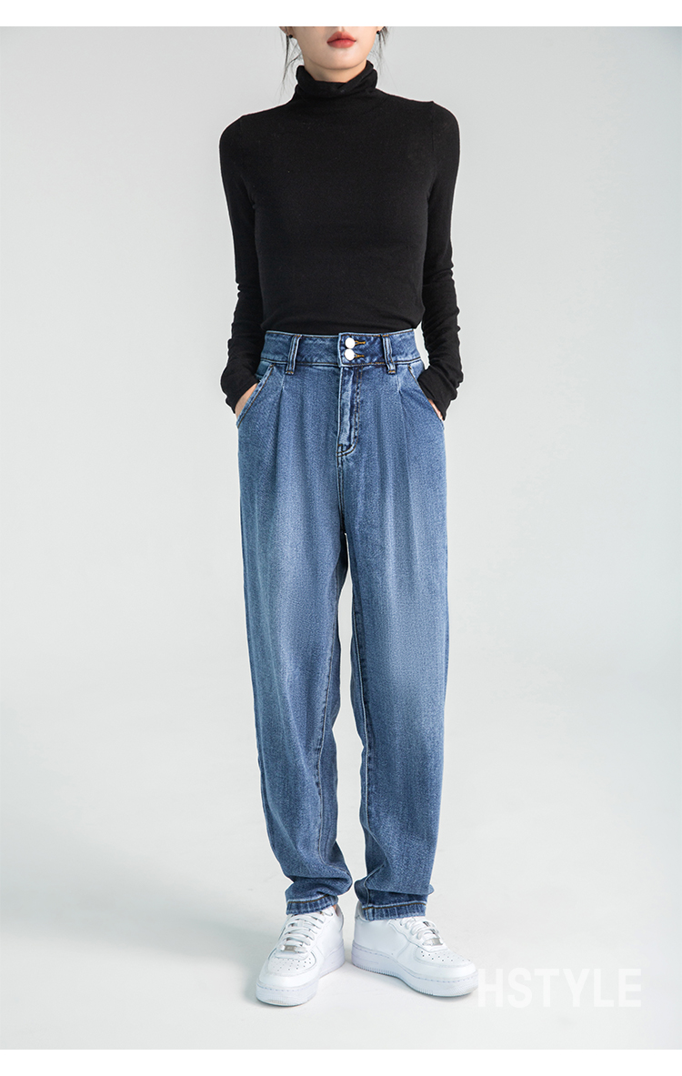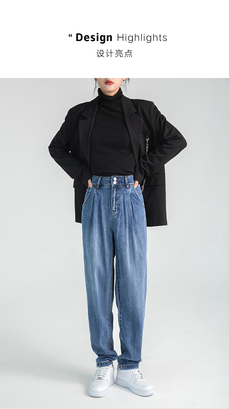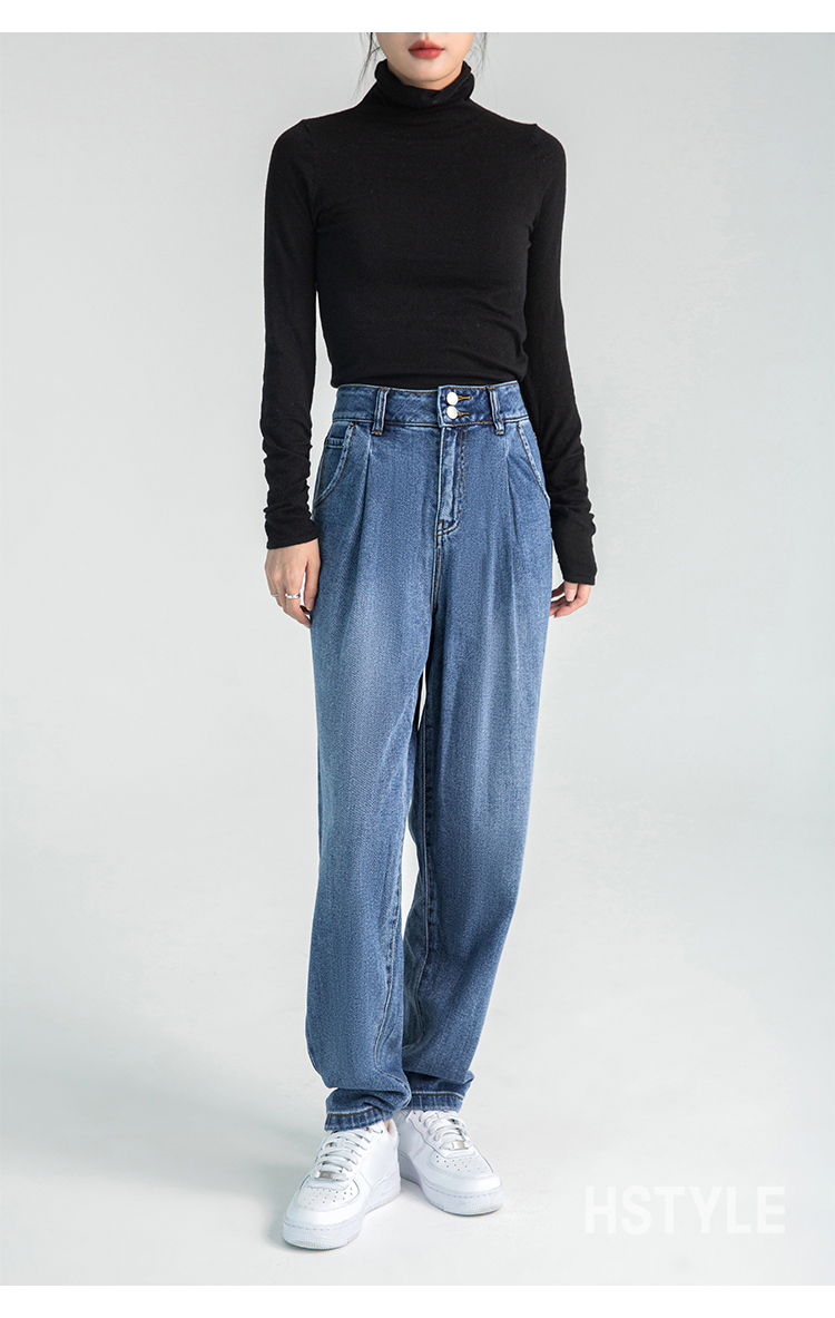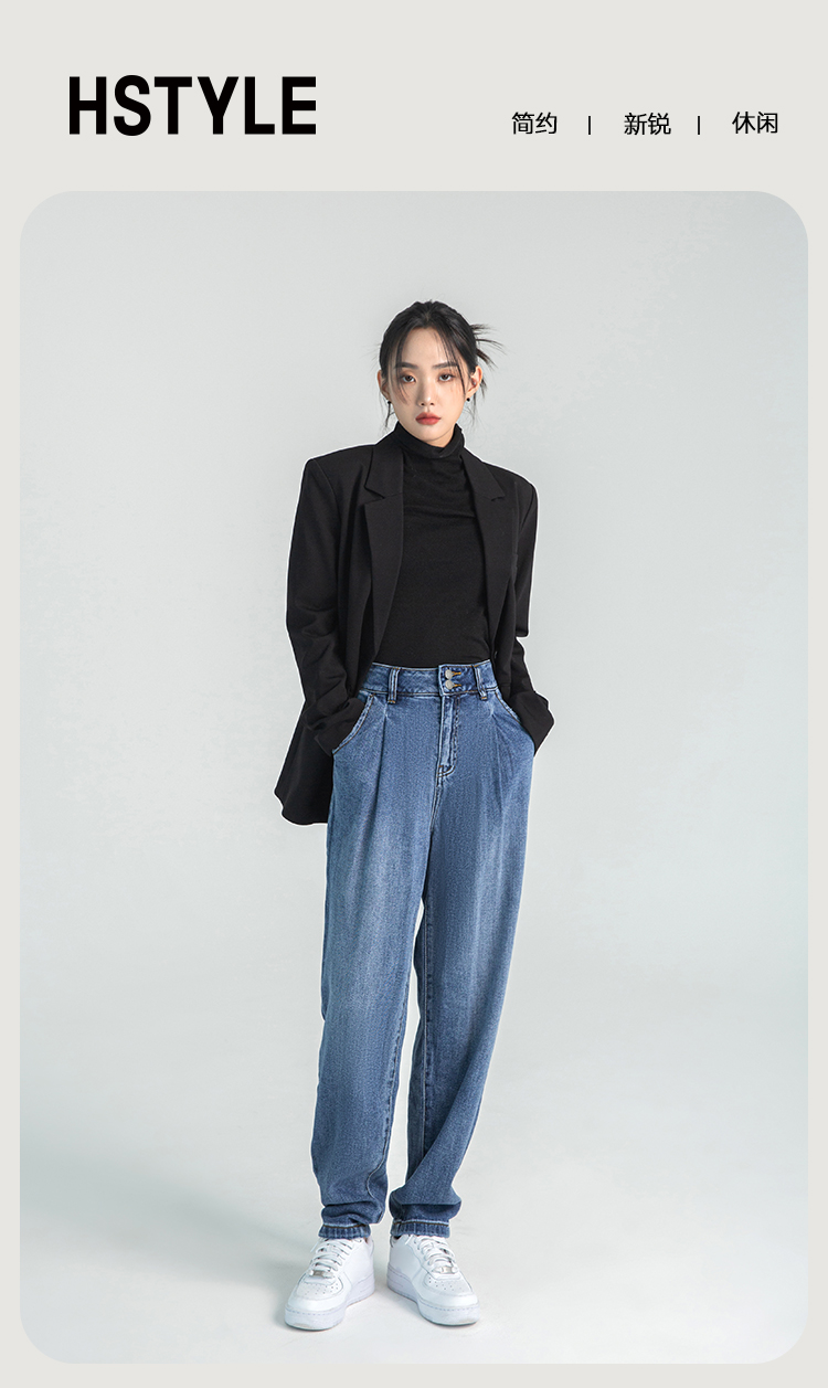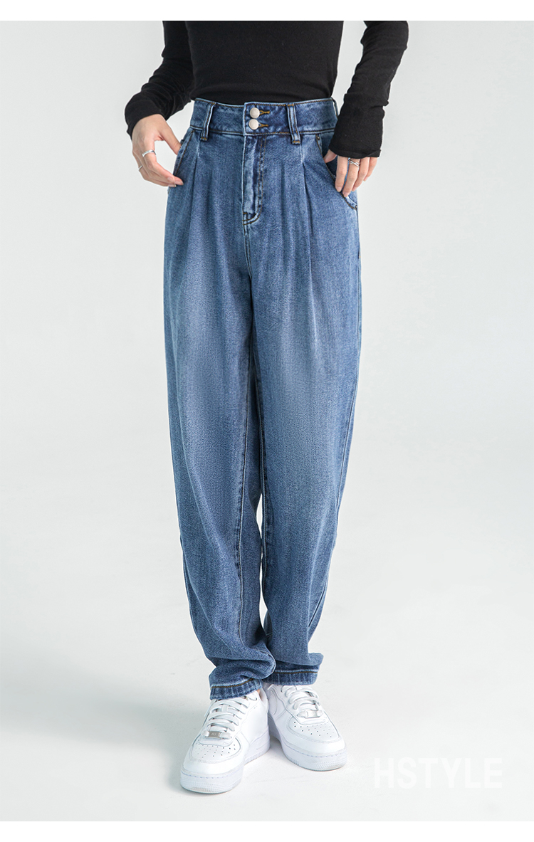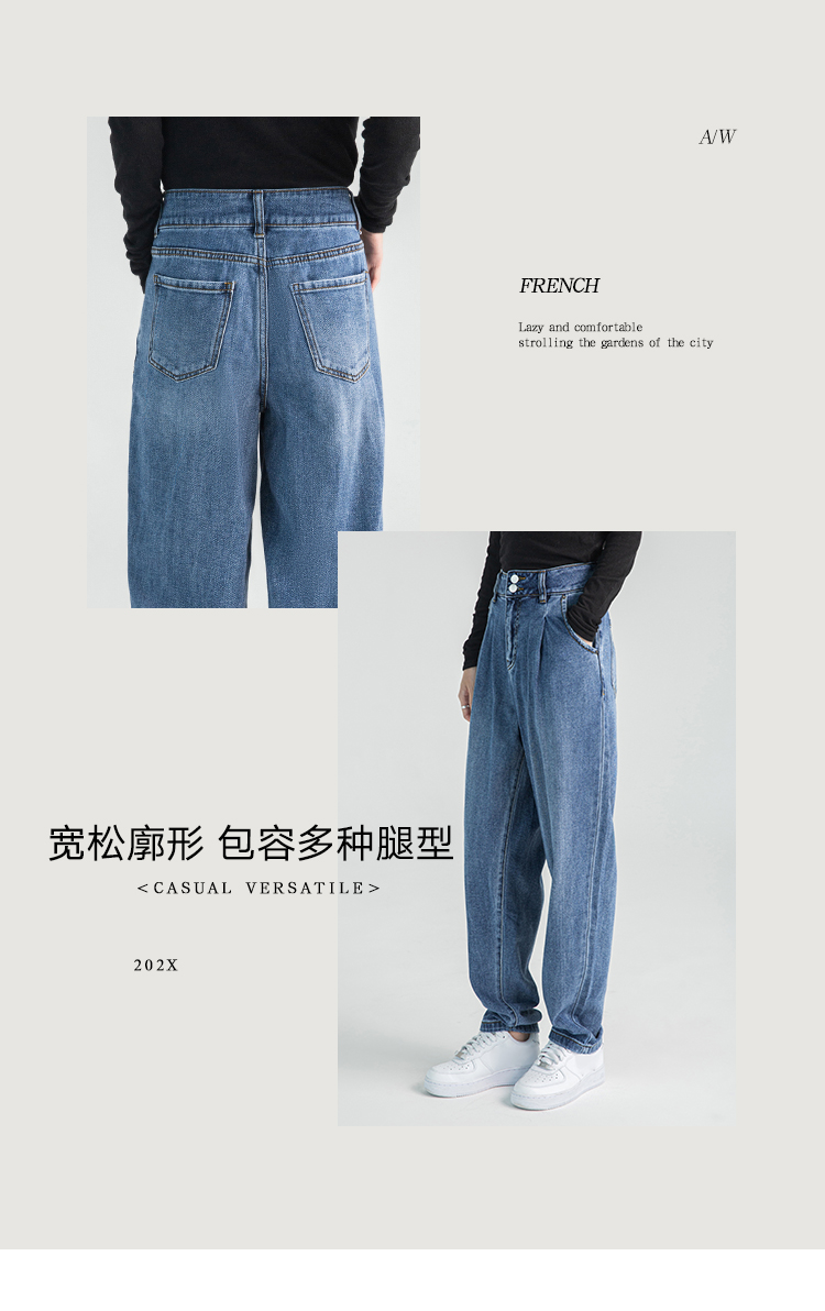 韩都衣舍牛仔裤女秋冬chic2023新款森氧吧港风宽松高腰老爹哈伦裤DX2007