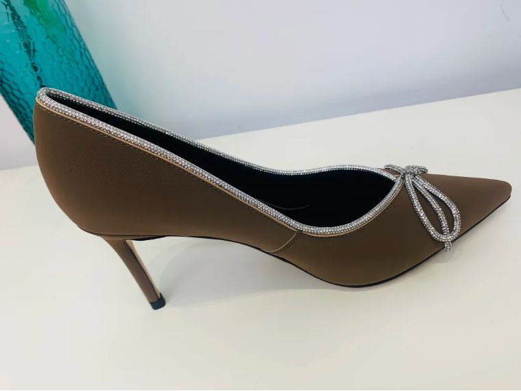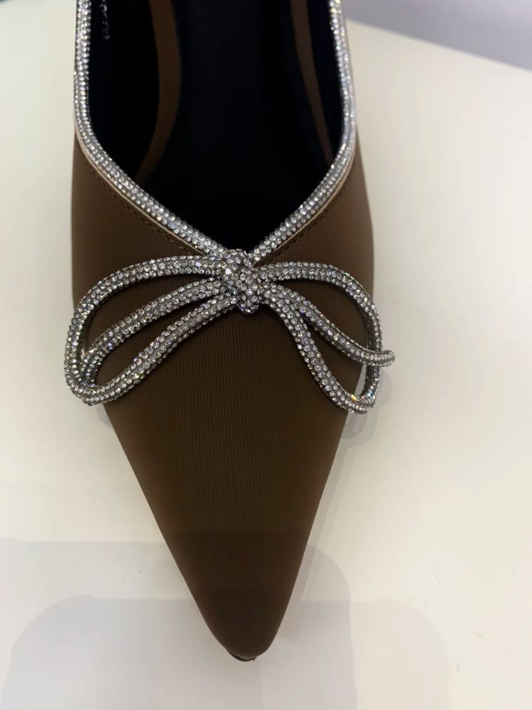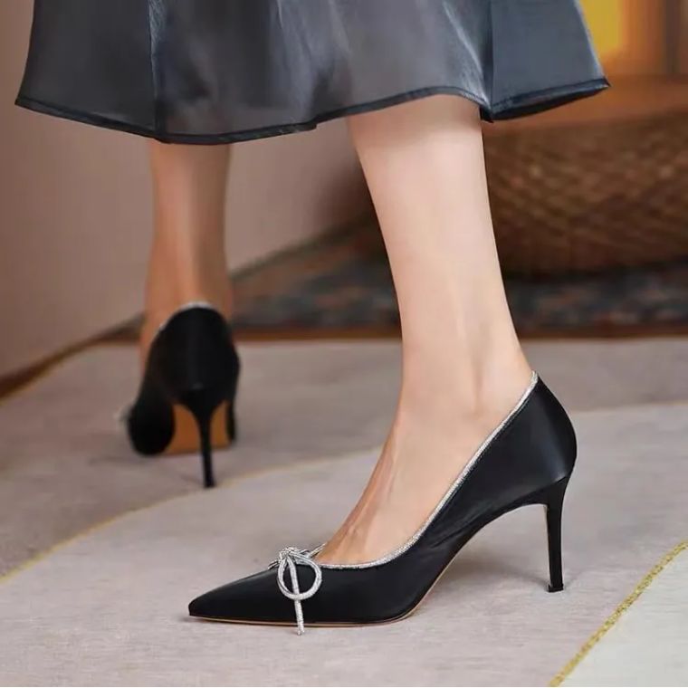 漂亮的浅口尖头鞋,纤巧细致,它能使女人的脚变得修长,脚背漂亮地弓起来,微露的一点脚趾,🌟感迷人。
