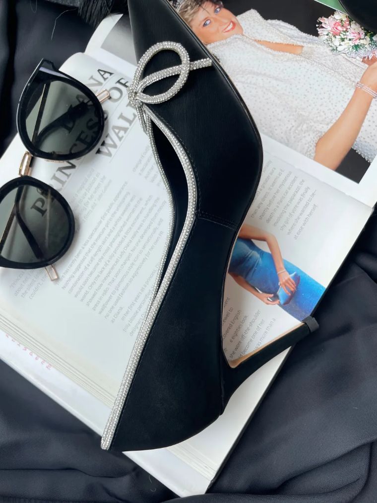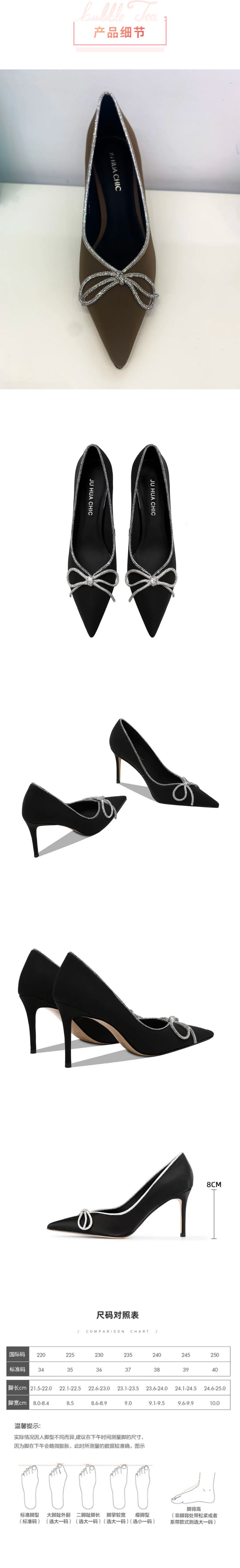 【断码特惠不退换】法式浅口水钻蝴蝶鞋高跟鞋丨鞋头鞋跟头层丝绒牛皮一气呵成 典雅镐级 鞋面精致水钻蝴蝶结设计 减龄时尚 经典不过时 鞋身水钻点缀 优雅气质羊皮垫脚 8cm鞋跟 脚感4公分