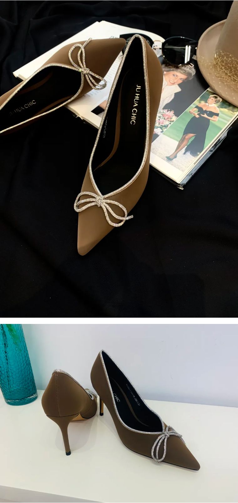 百搭的颜色,精致的水钻和黑色鞋面,更加的blingbling,镐级又精致。