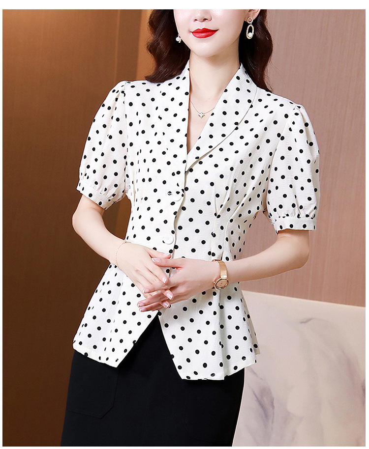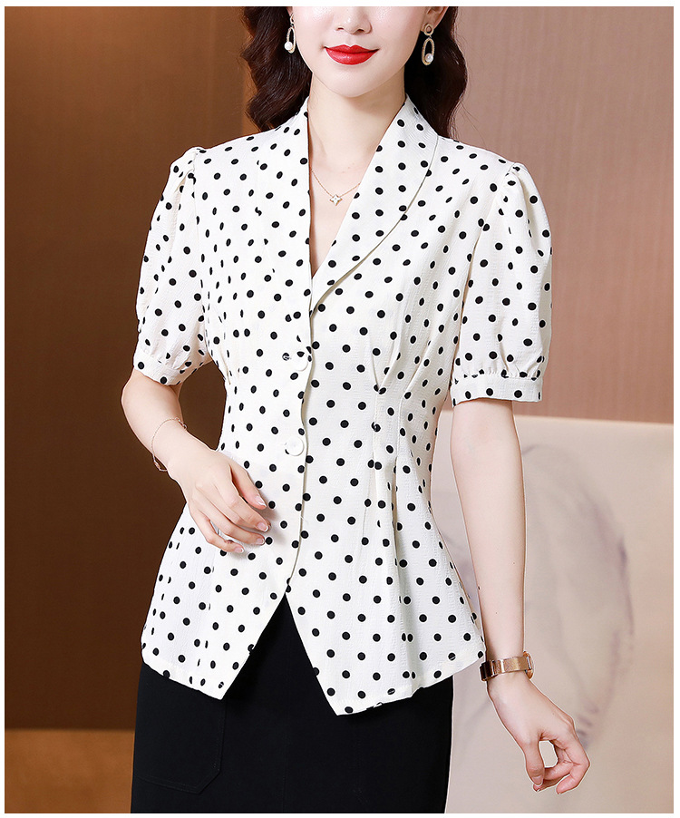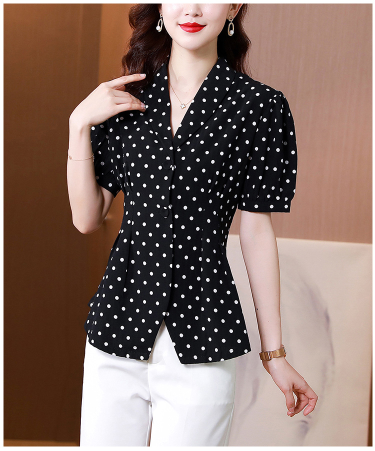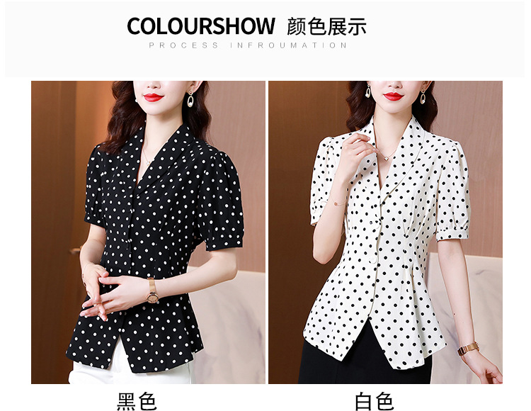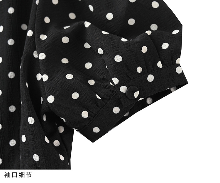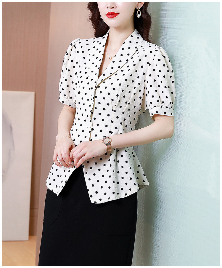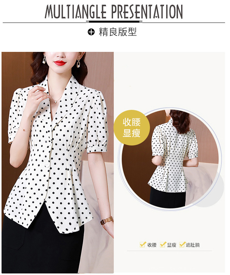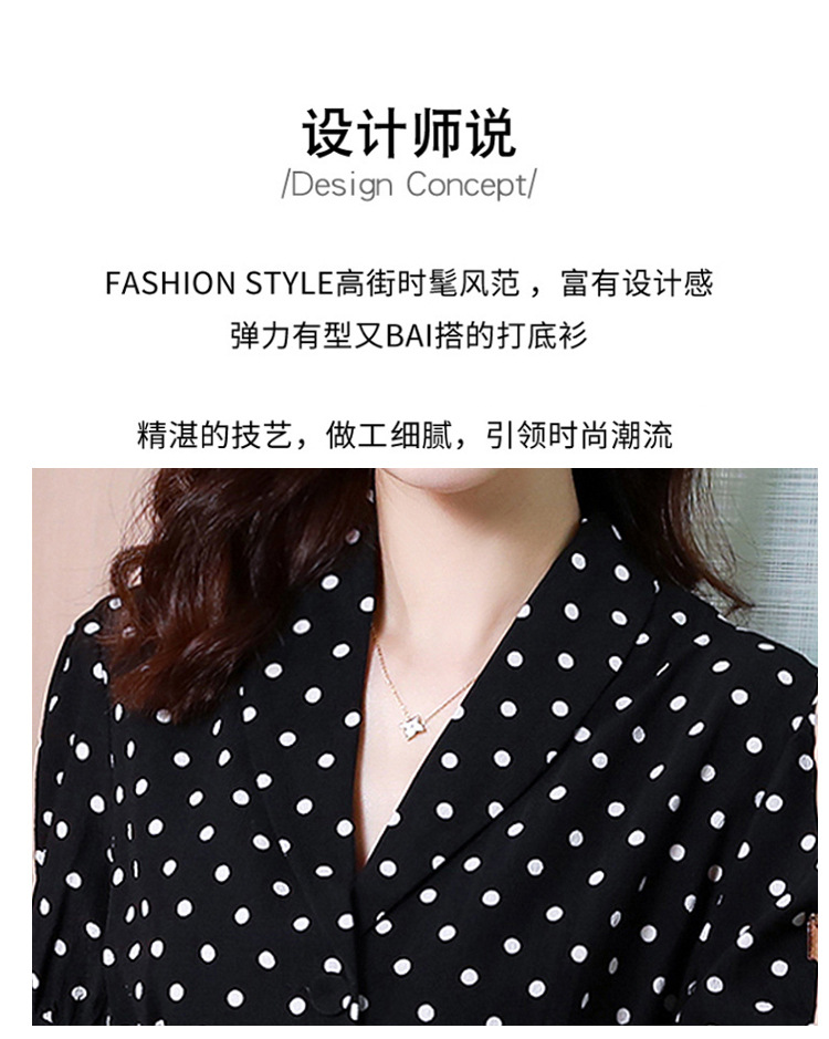 修身显瘦,轻熟风气质翻领波点衬衫女泡泡袖洋气衬衣下摆波浪型上衣KQL-A83N2905