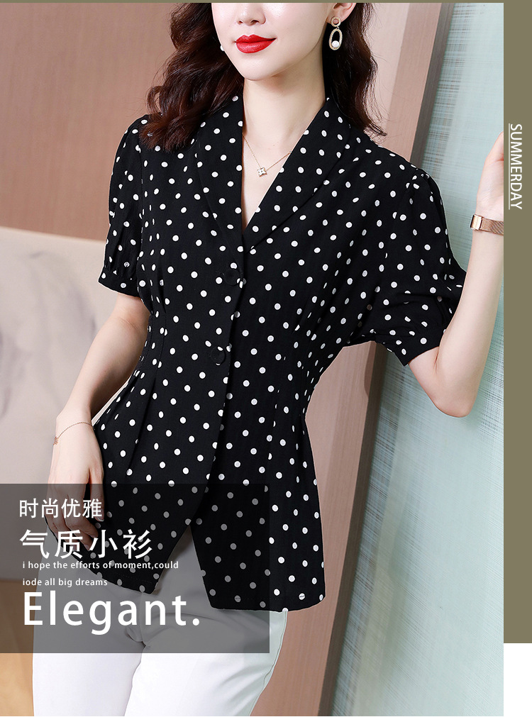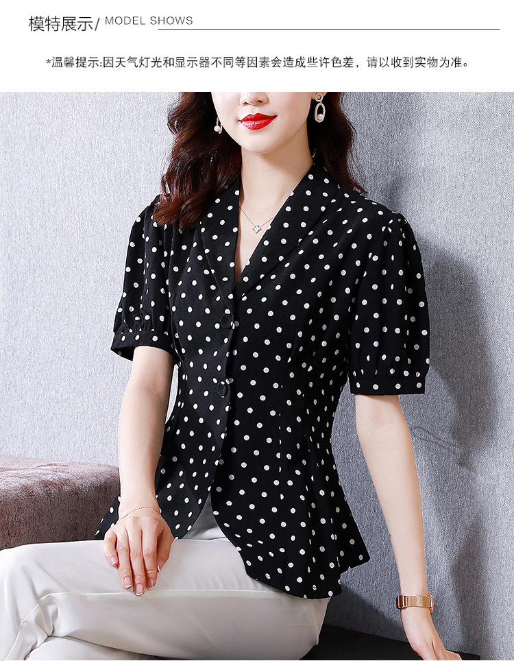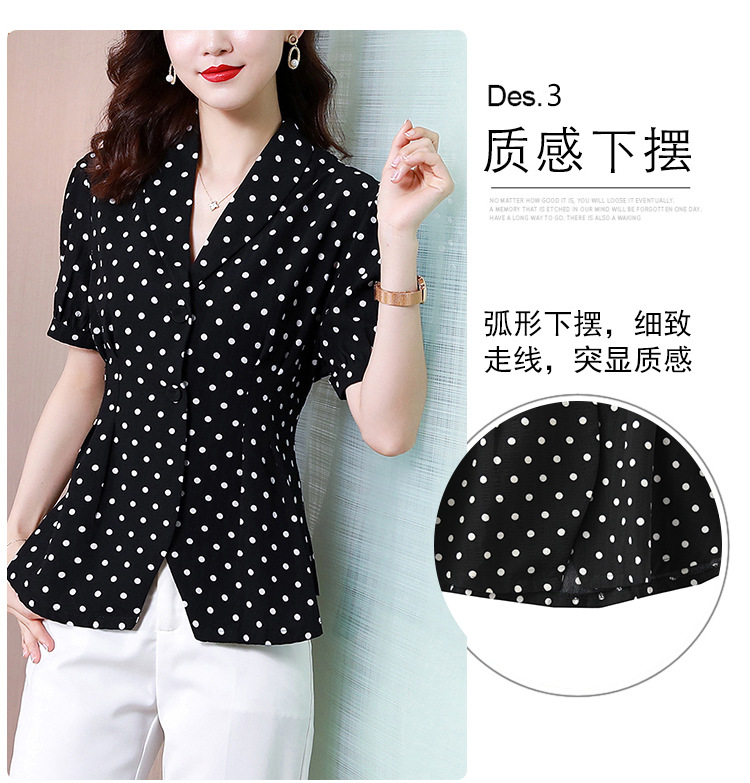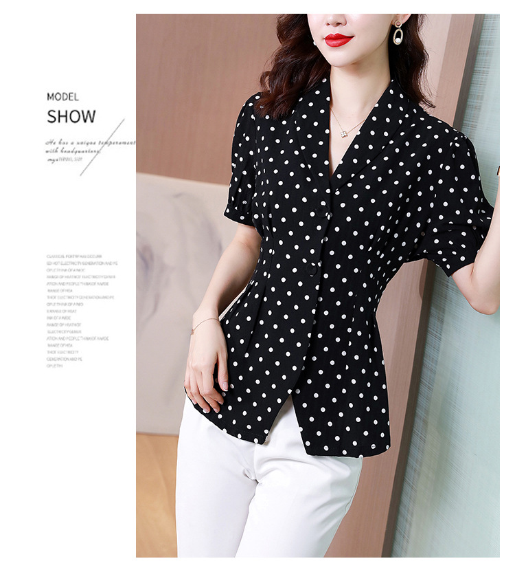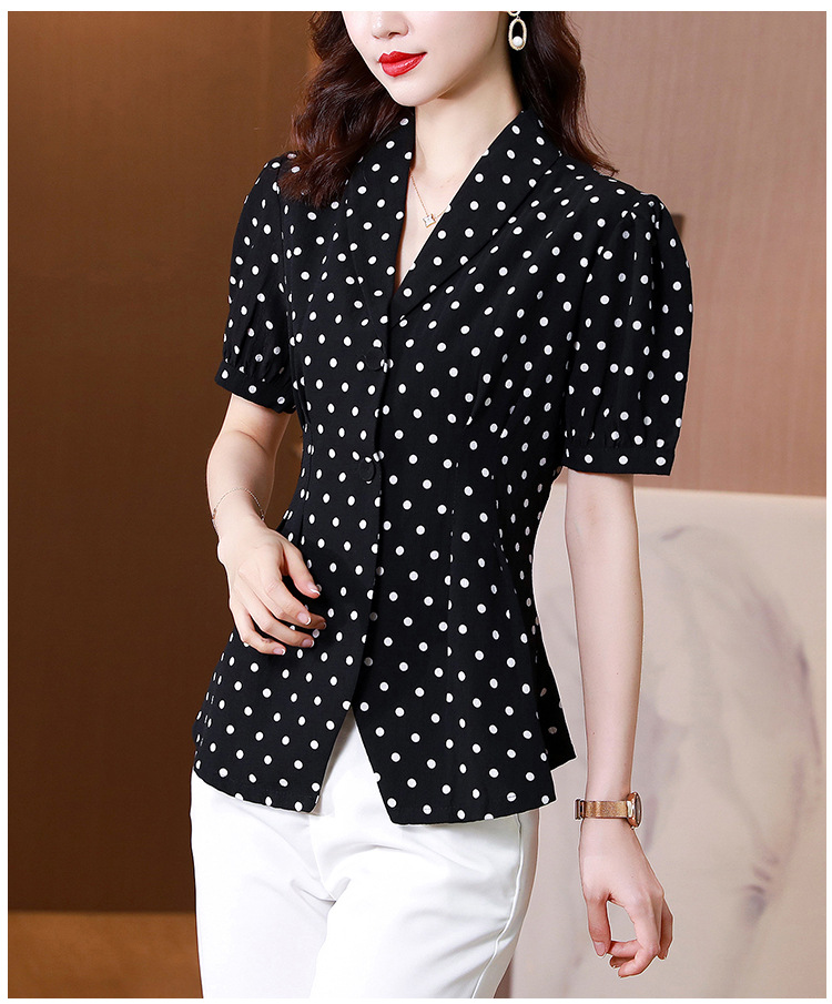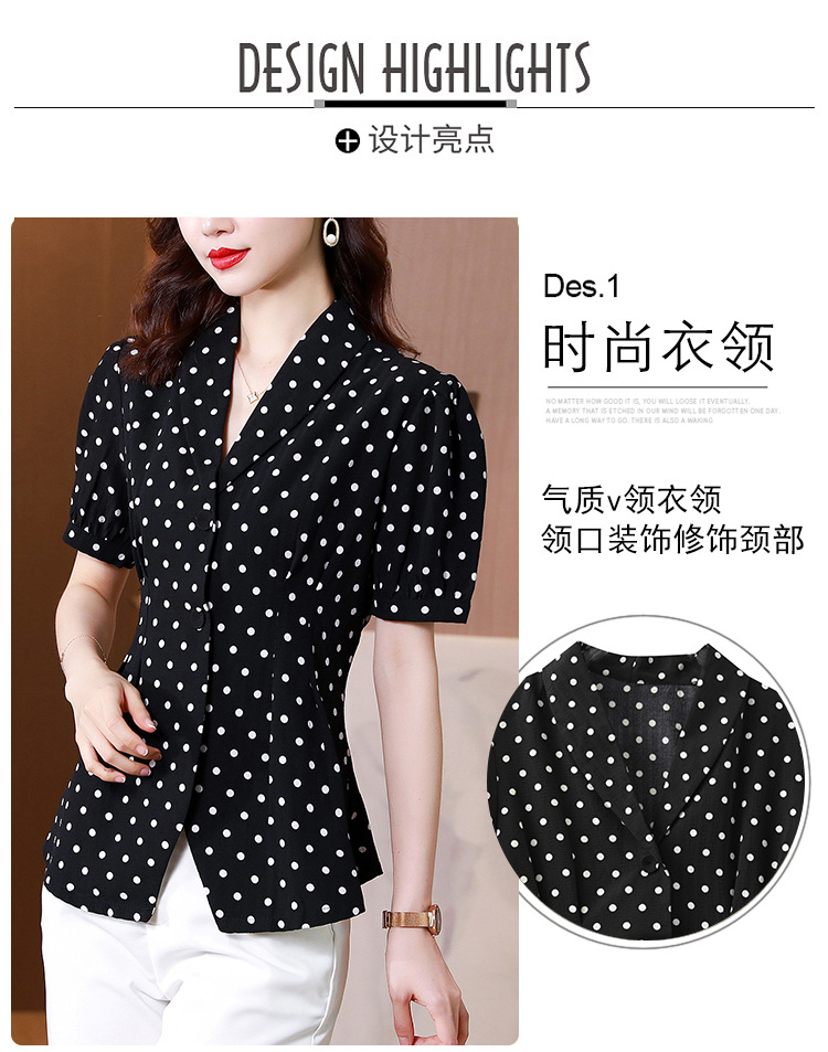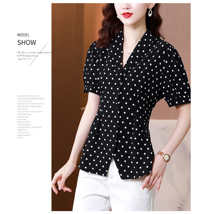 修身显瘦,轻熟风气质翻领波点衬衫女泡泡袖洋气衬衣下摆波浪型上衣KQL-A83N2905