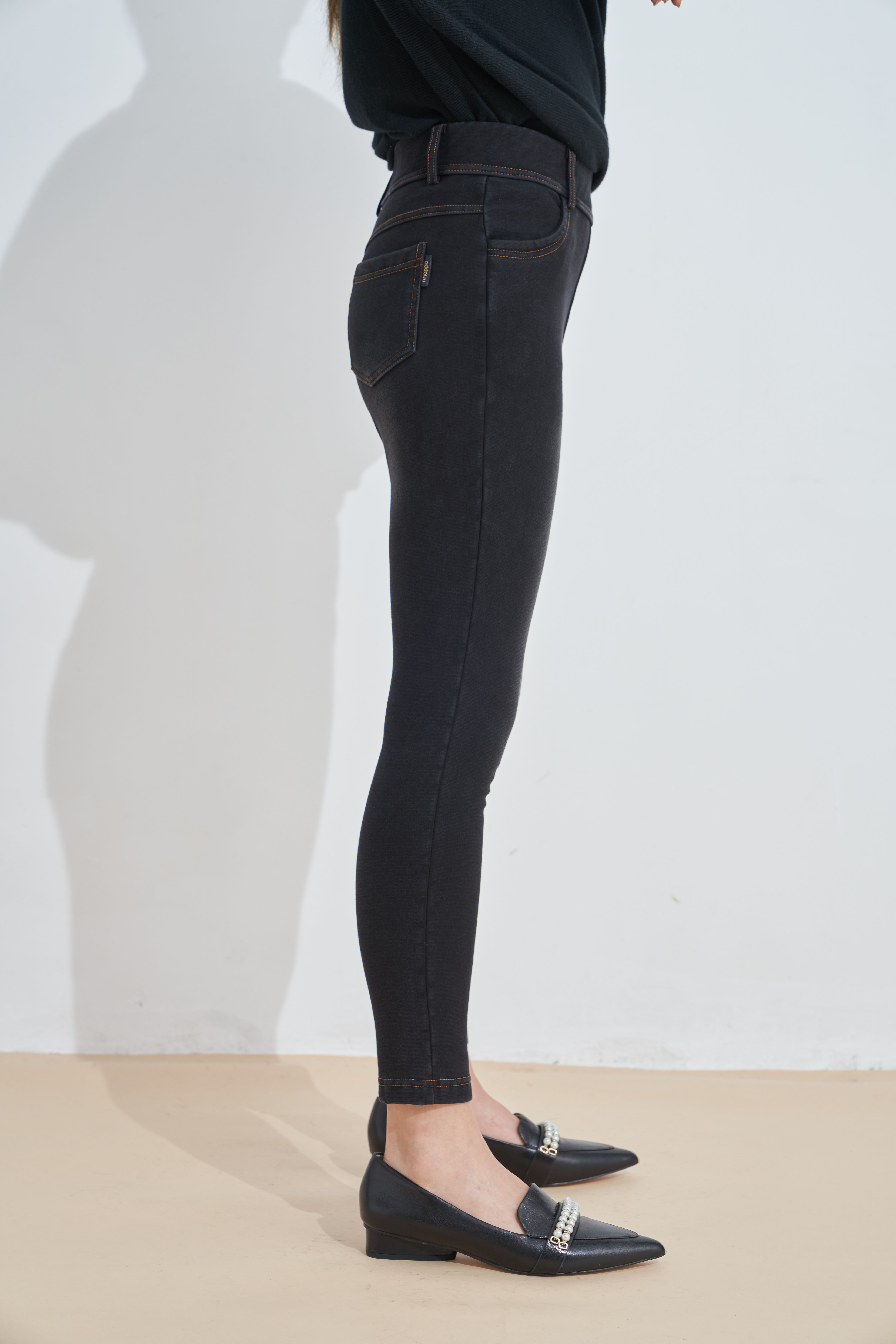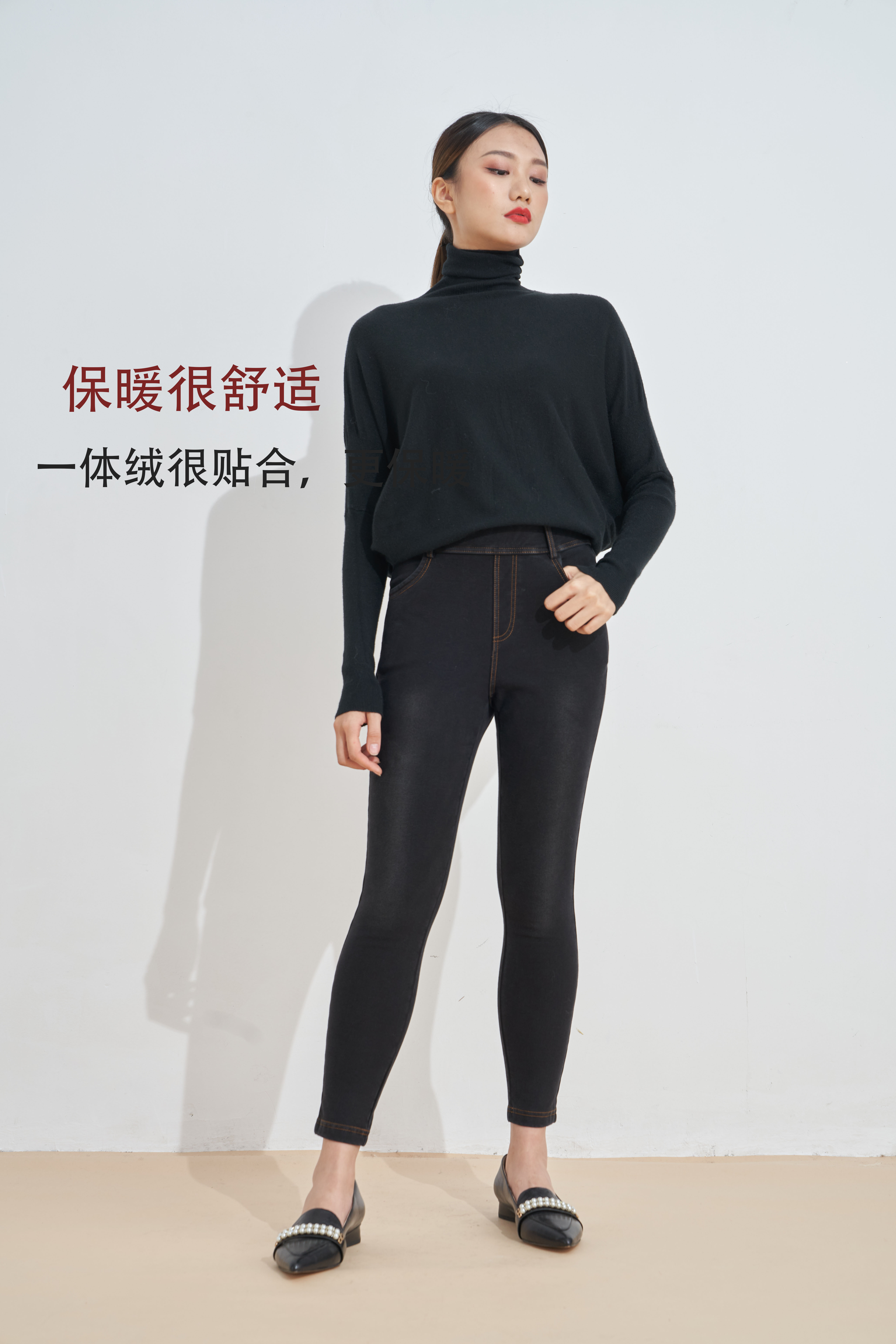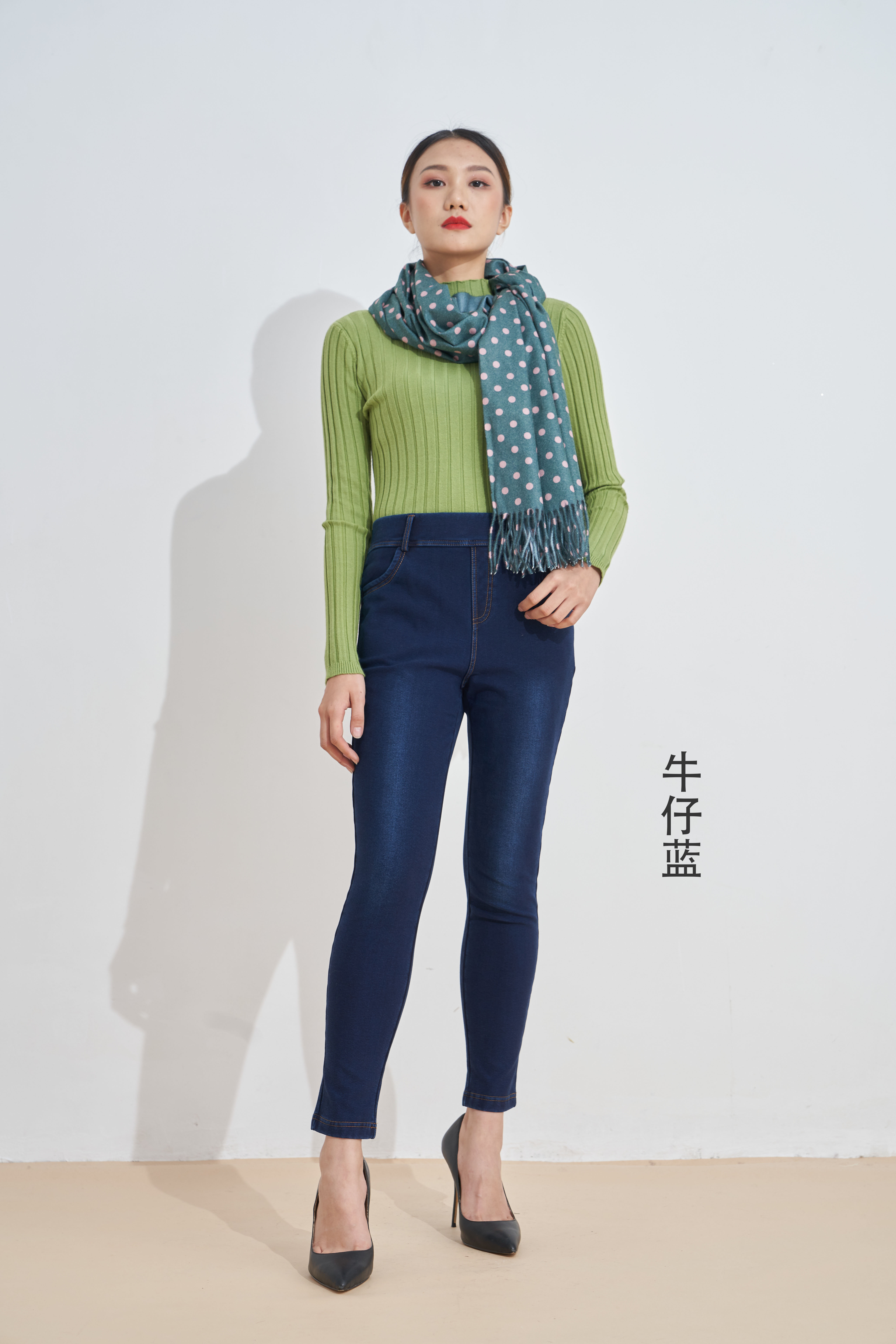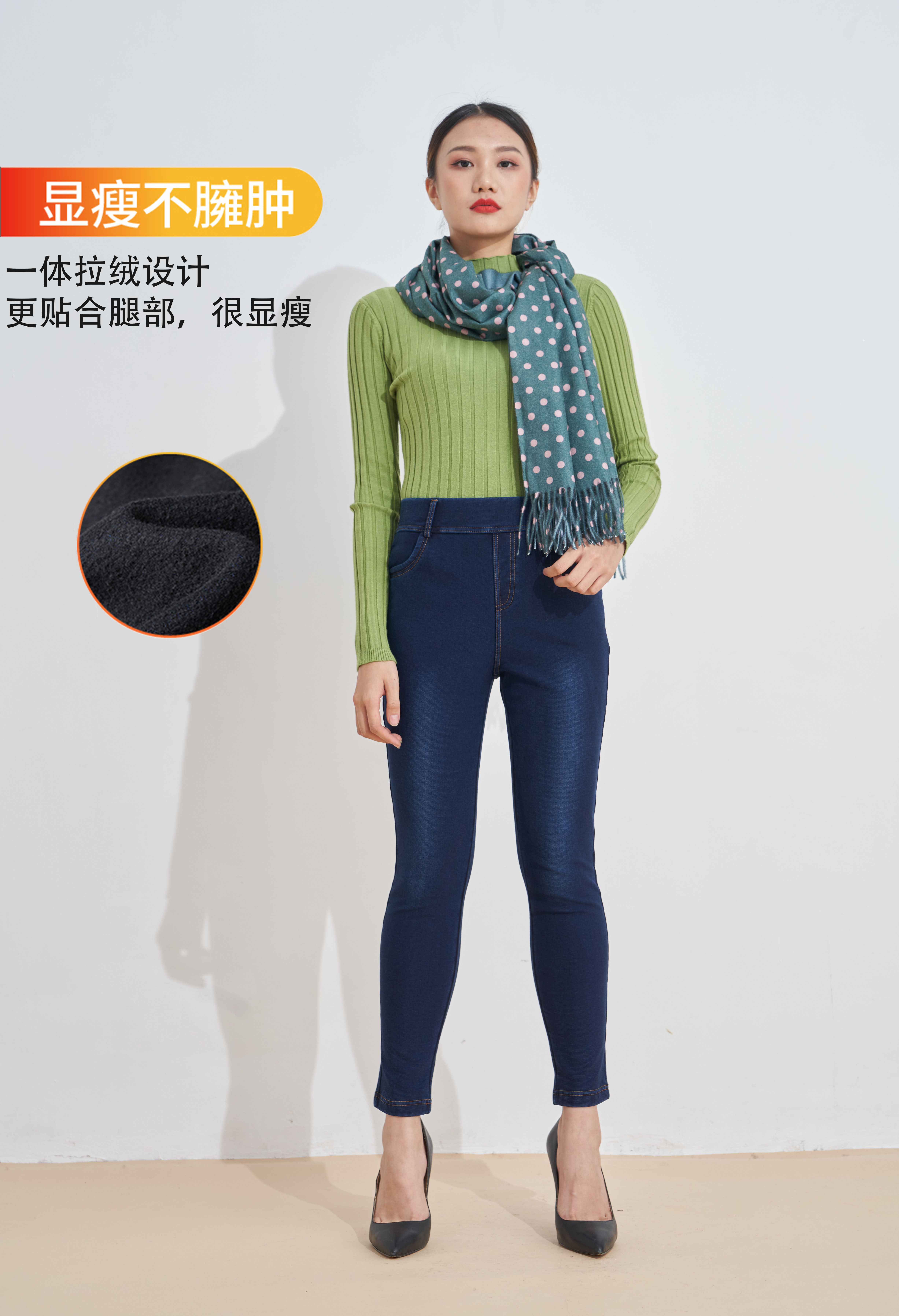 皮带袢牛仔薄绒撞色线显瘦铅笔裤29193