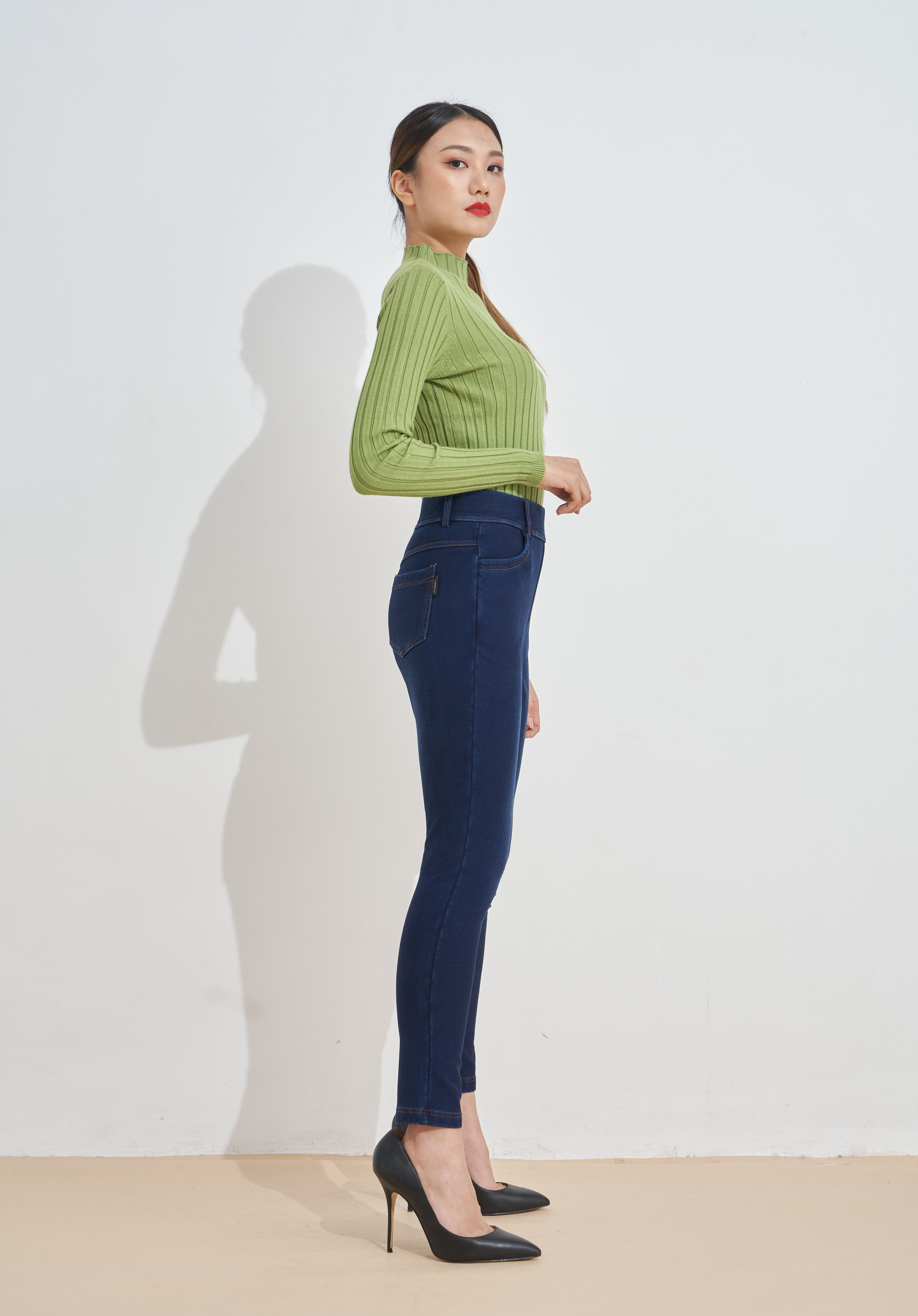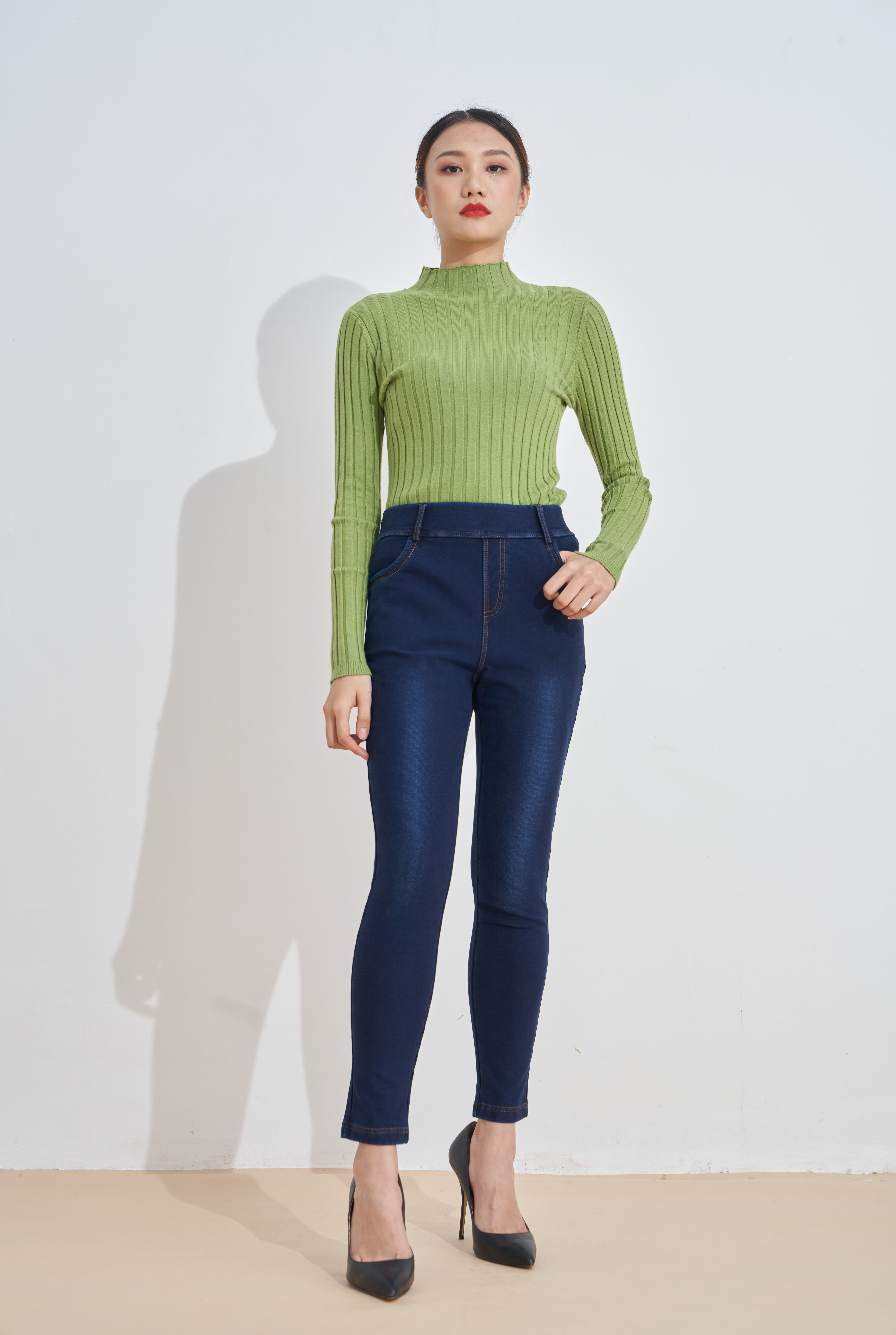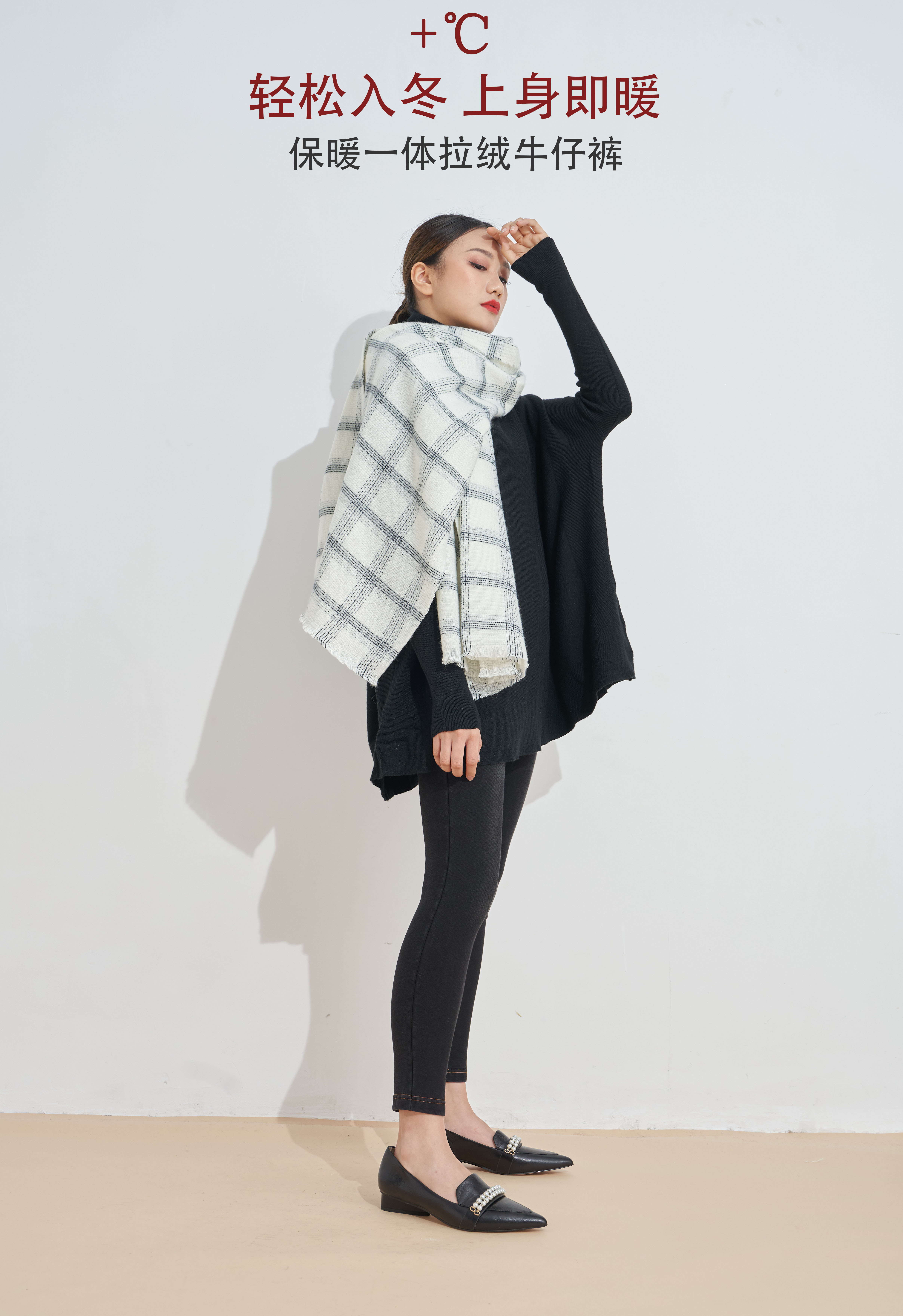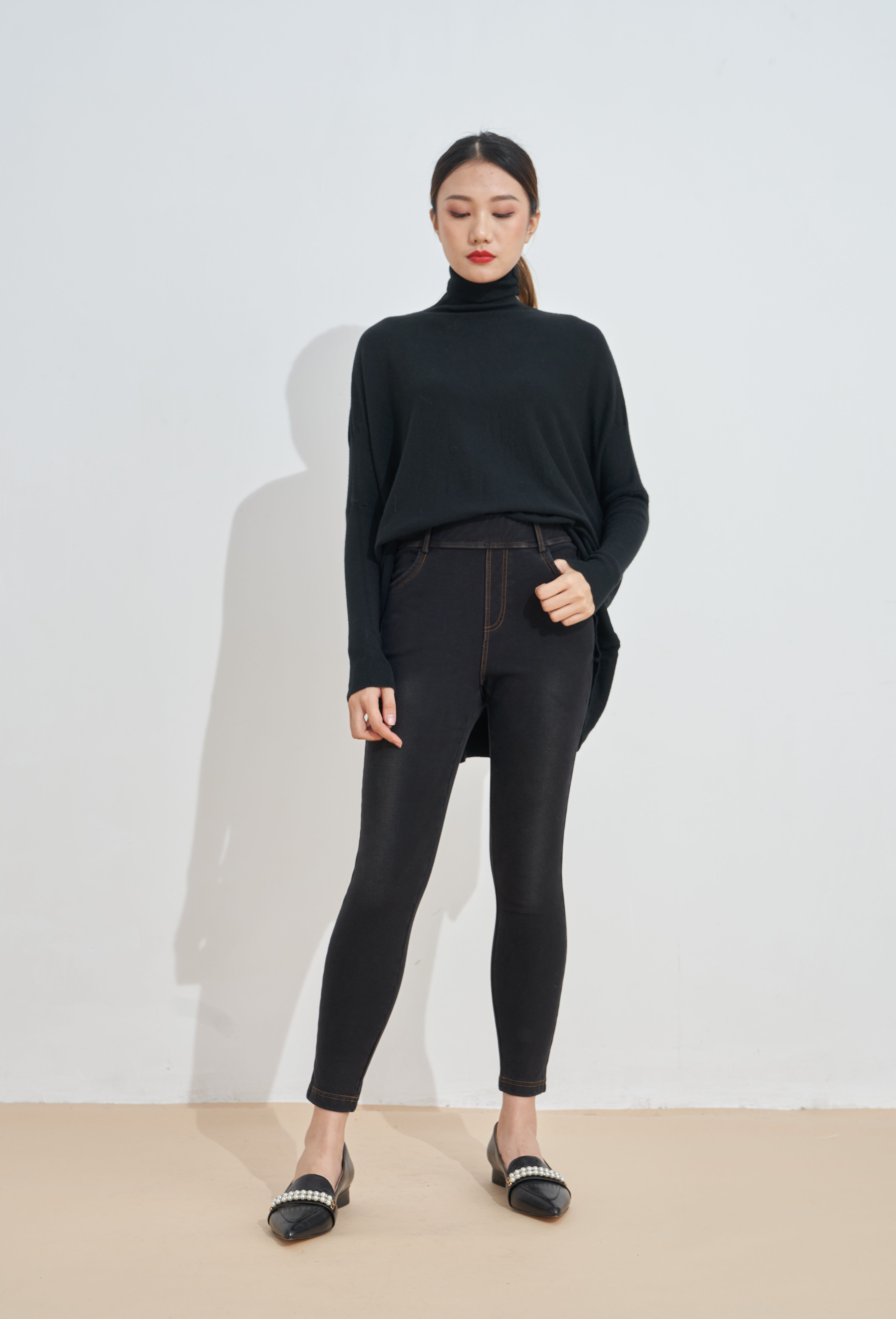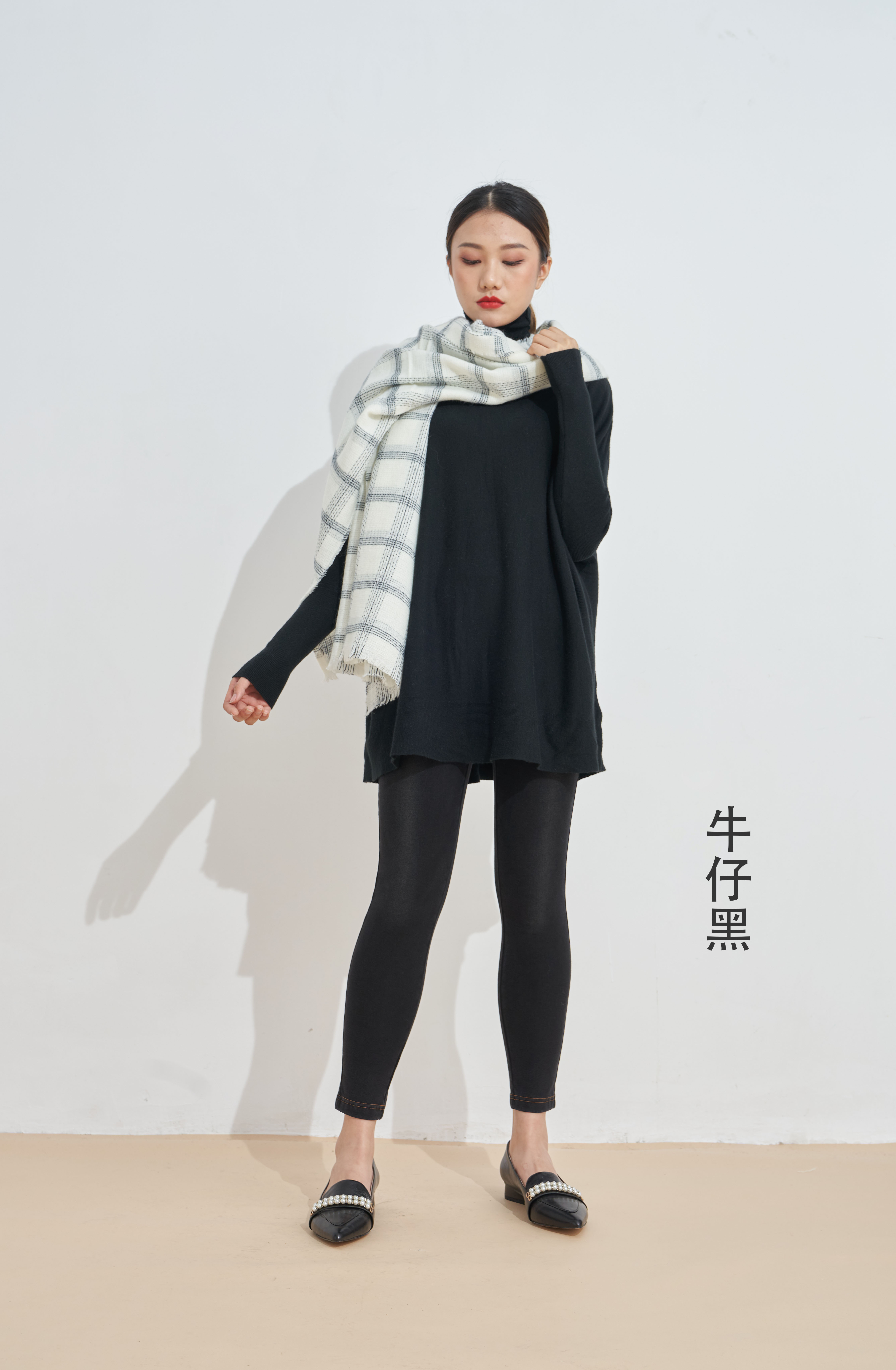 皮带袢牛仔薄绒撞色线显瘦铅笔裤29193