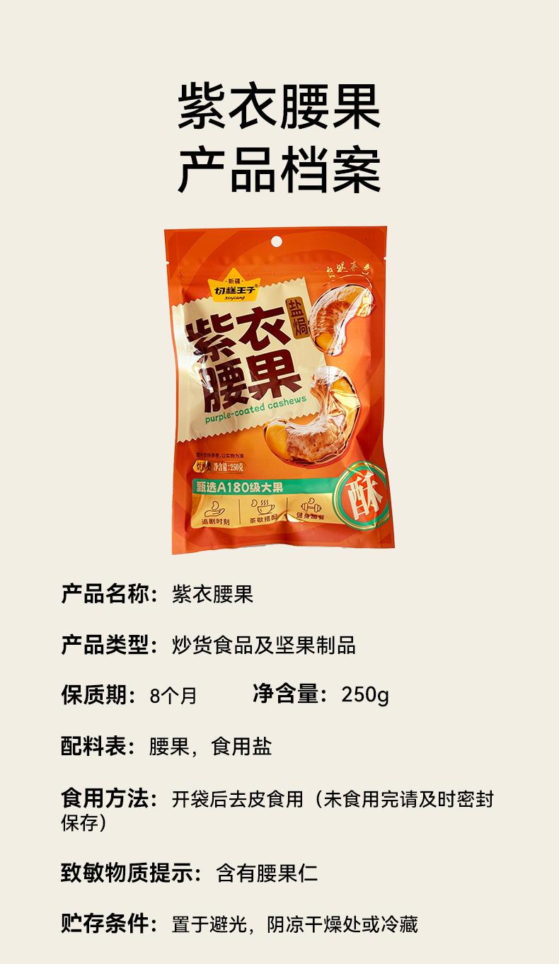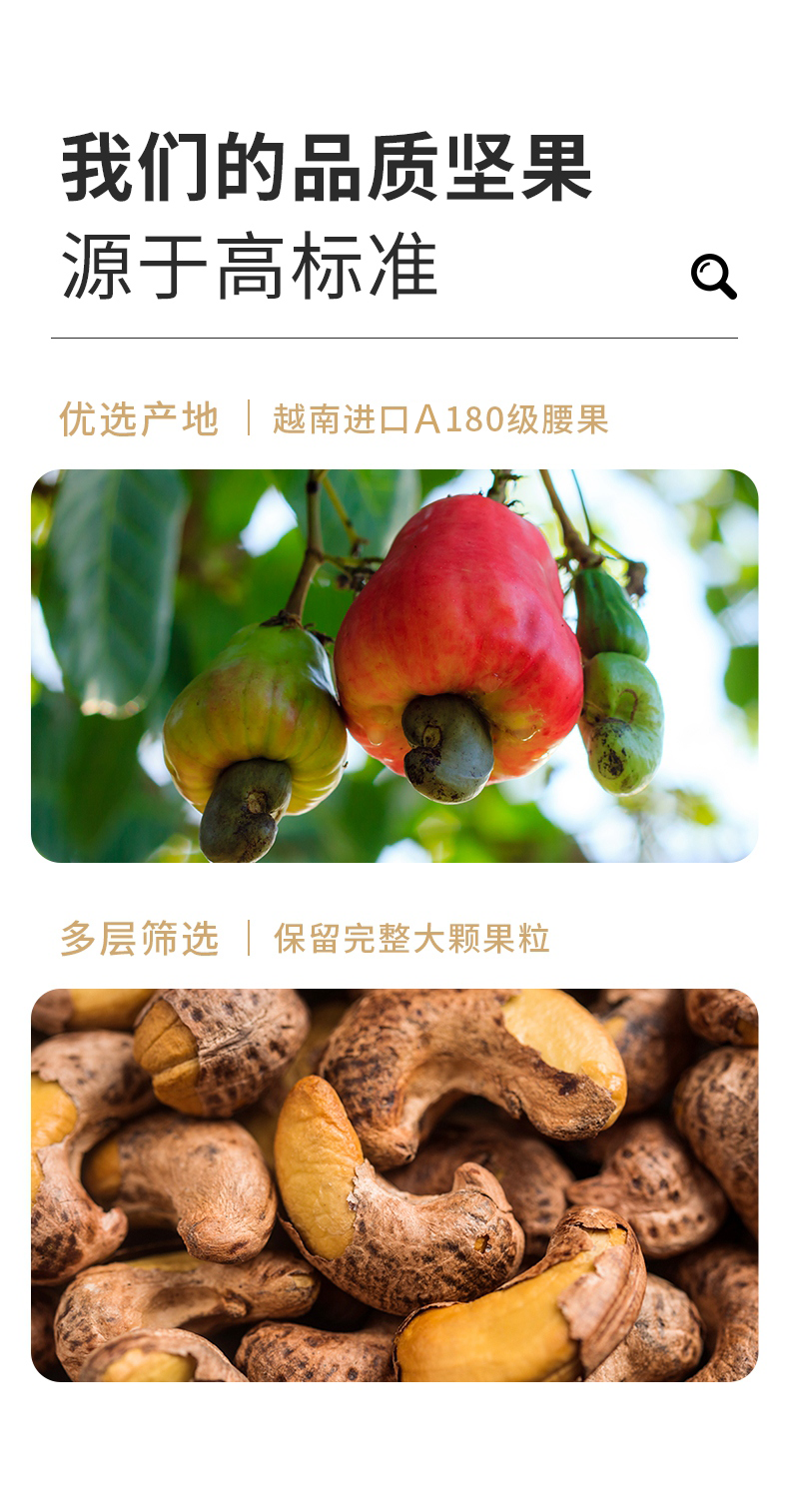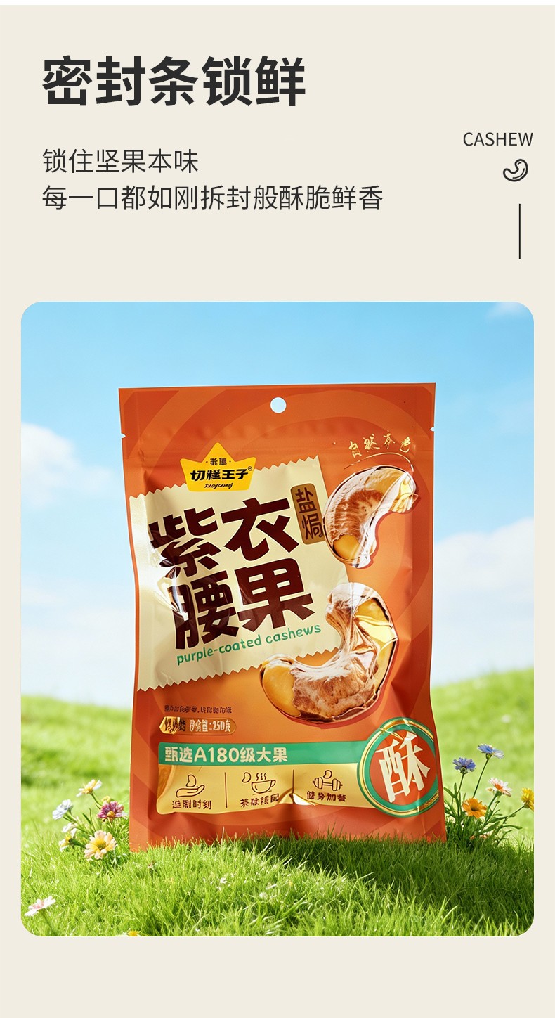 【切糕王子紫衣腰果】 越南黄金产区 A180特大果仁 低温慢烤的非油炸工艺 轻盐调味香脆不腻