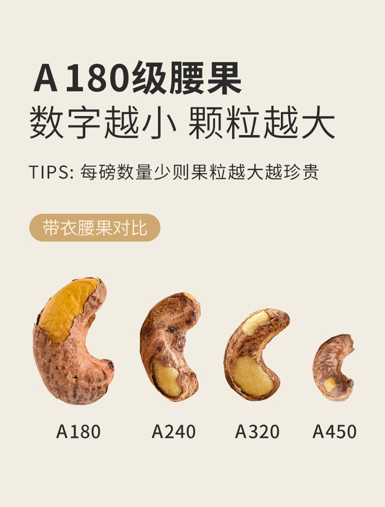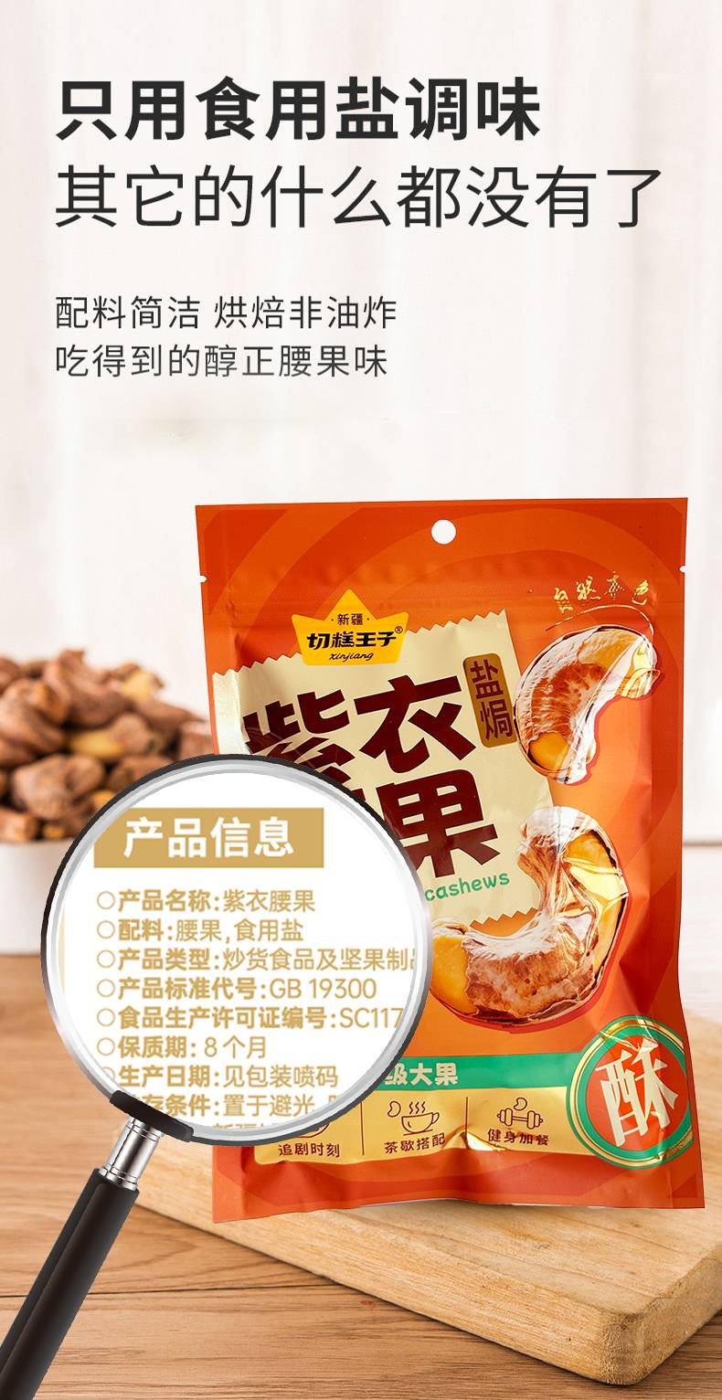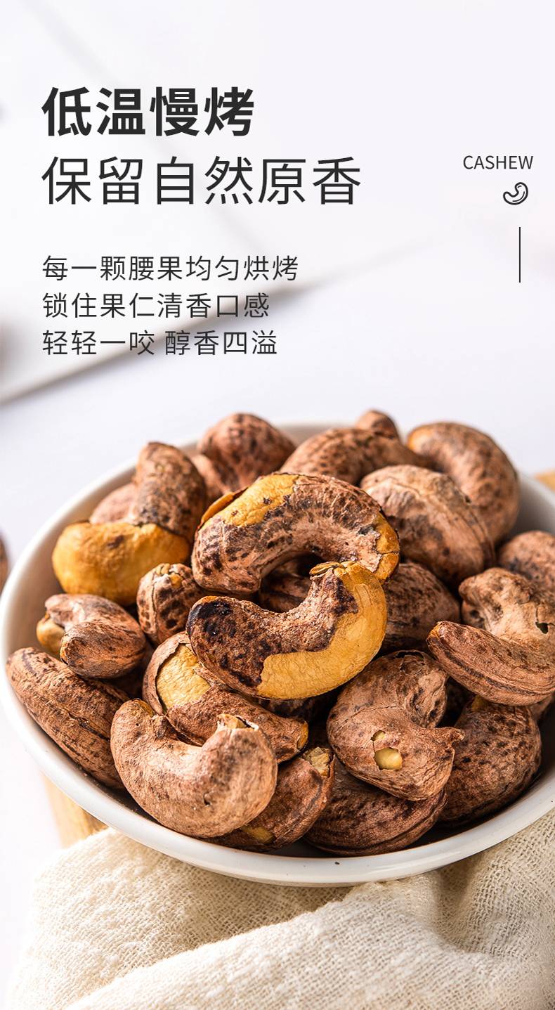 【切糕王子紫衣腰果】 越南黄金产区 A180特大果仁 低温慢烤的非油炸工艺 轻盐调味香脆不腻
