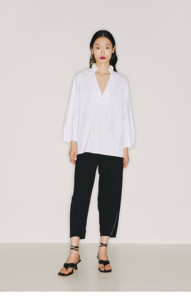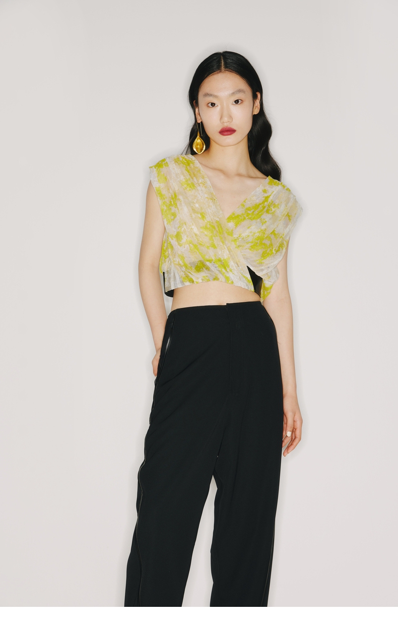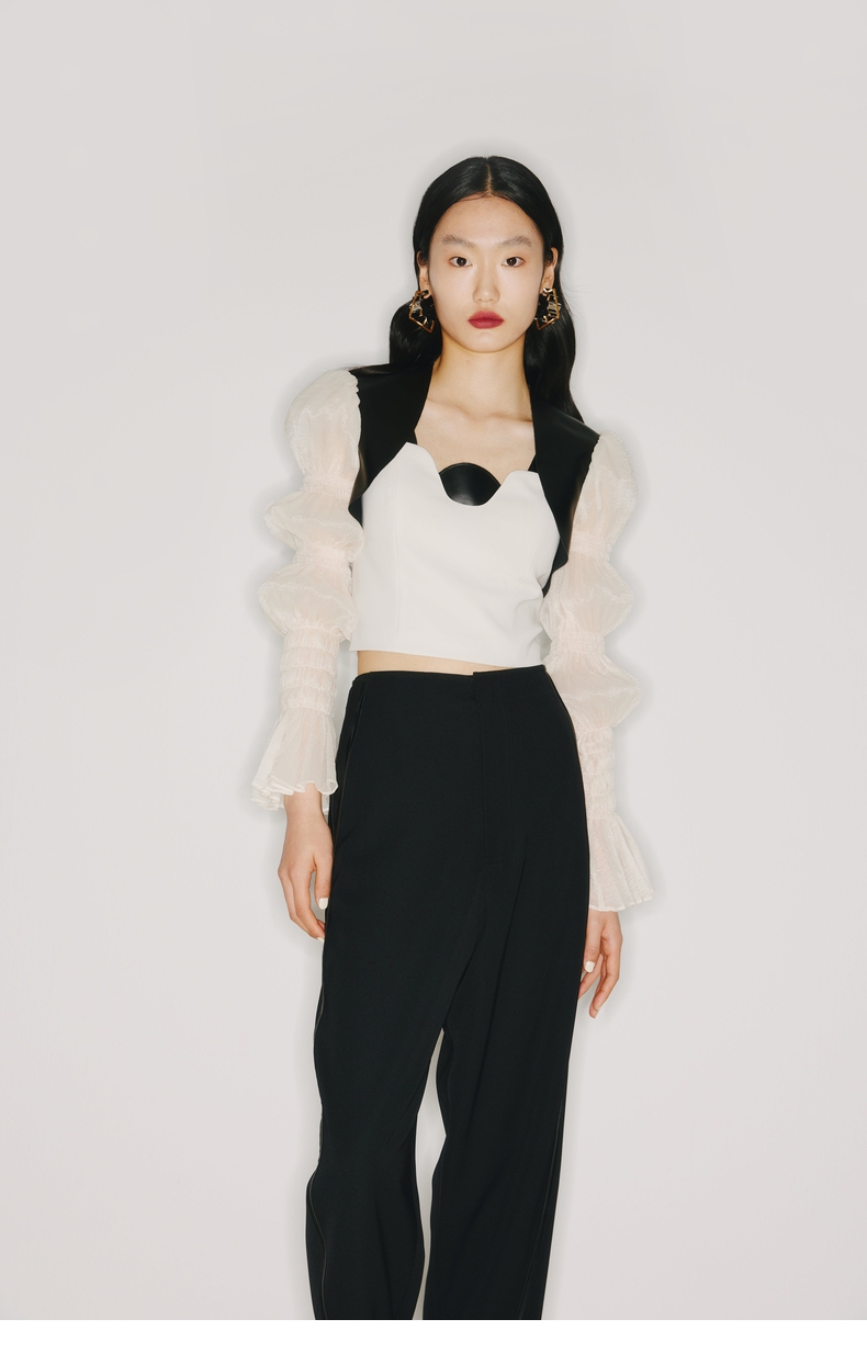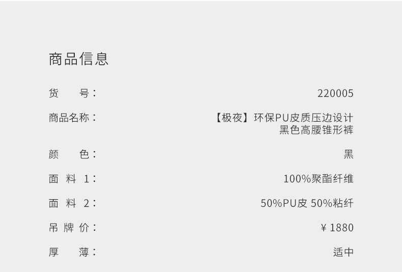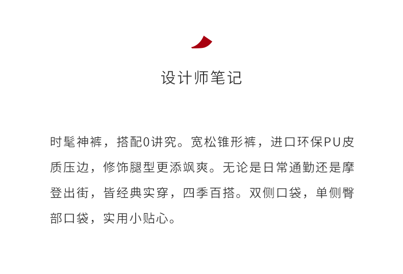【极夜】环保PU皮质压边设计黑色高腰锥形裤/220005