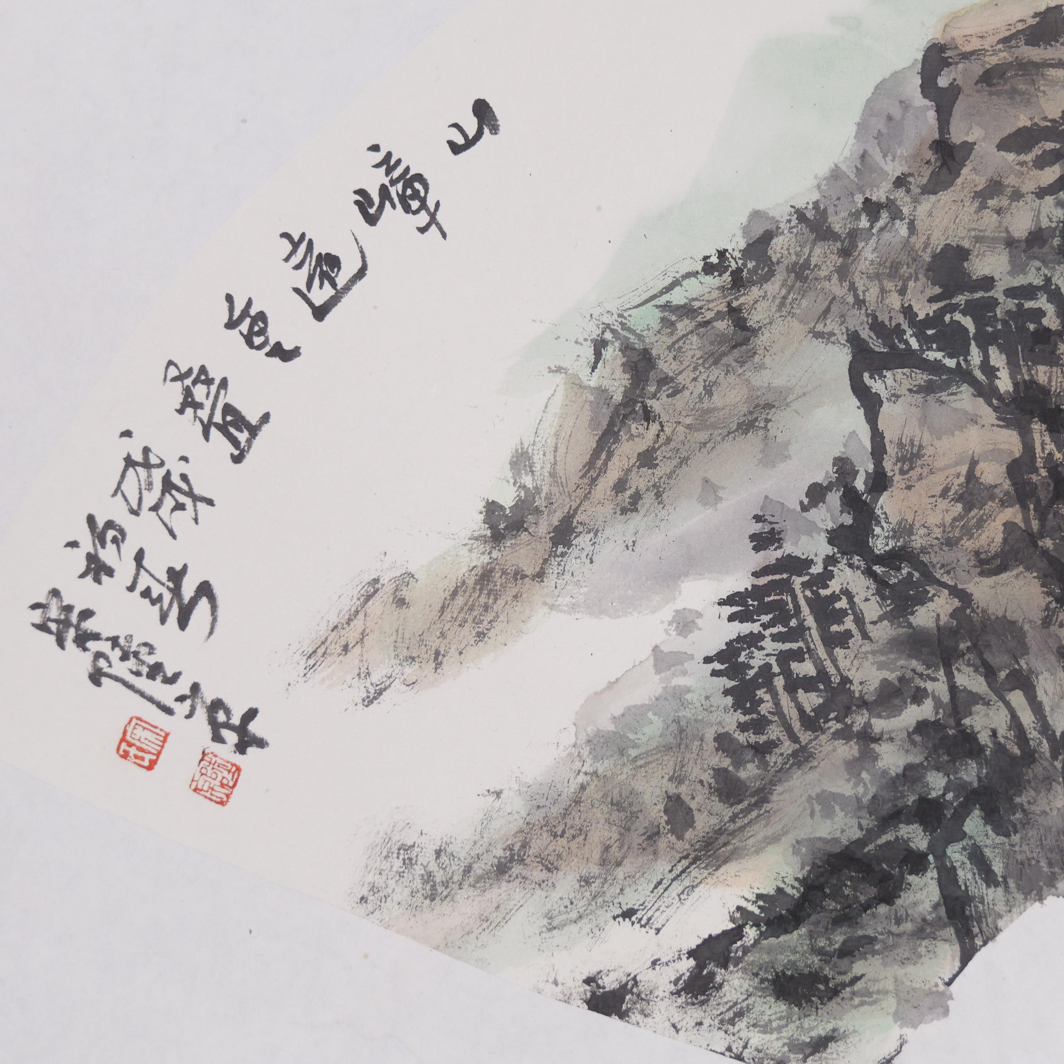 宋陆京《山嶂远重叠》国画原作31CM*67CM 手绘宣纸扇面山水作品
