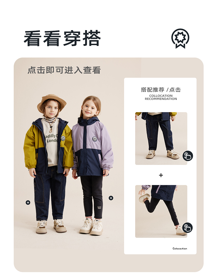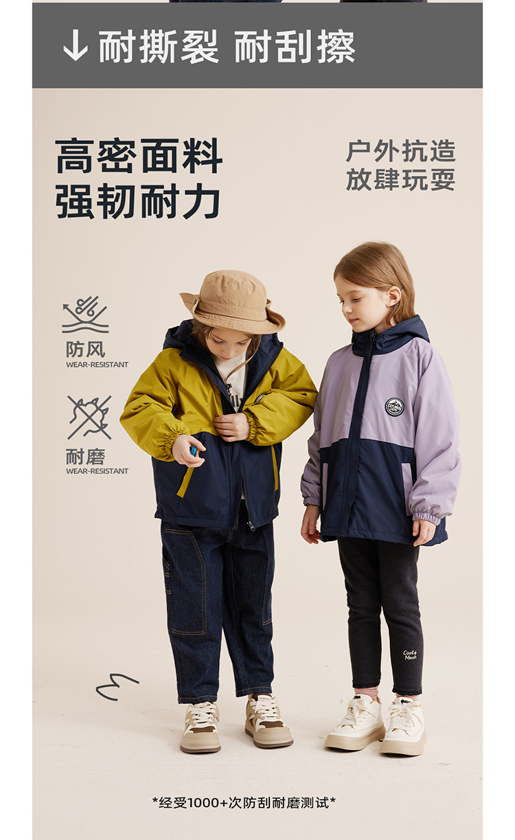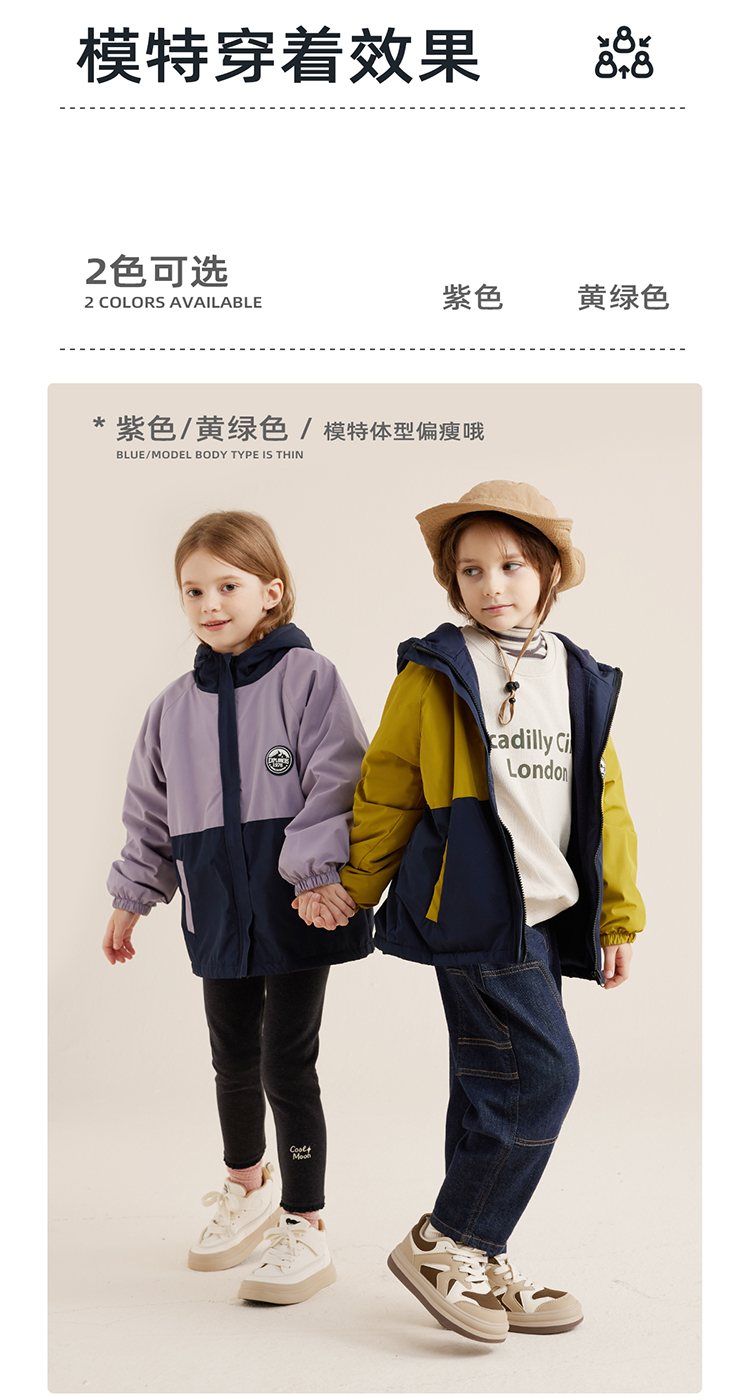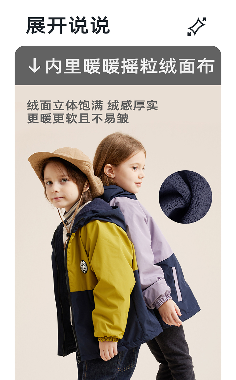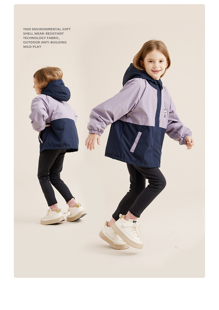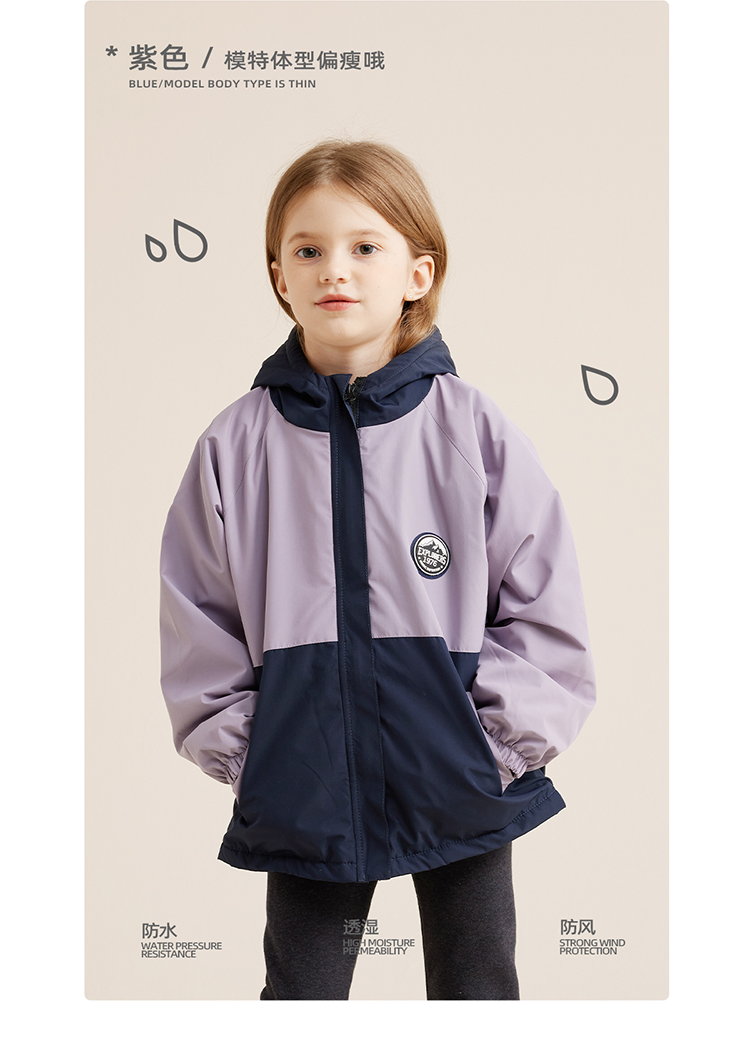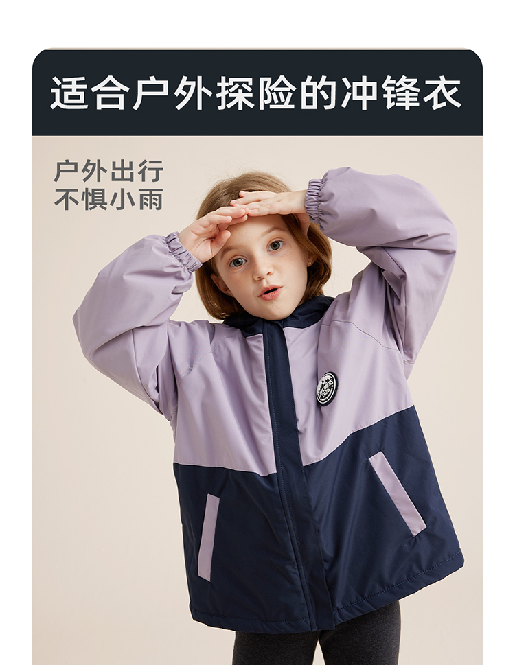 【微拒水 山系加绒冲锋衣】儿童拼色保暖加绒冲锋衣外套PQWT2322
